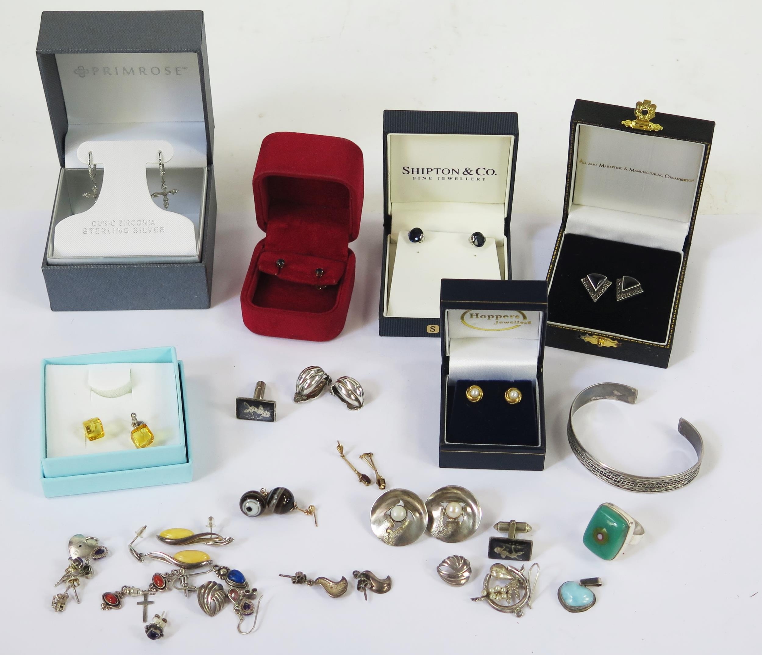 A Selection of 9ct Gold and Silver Earrings, etc.
