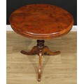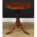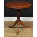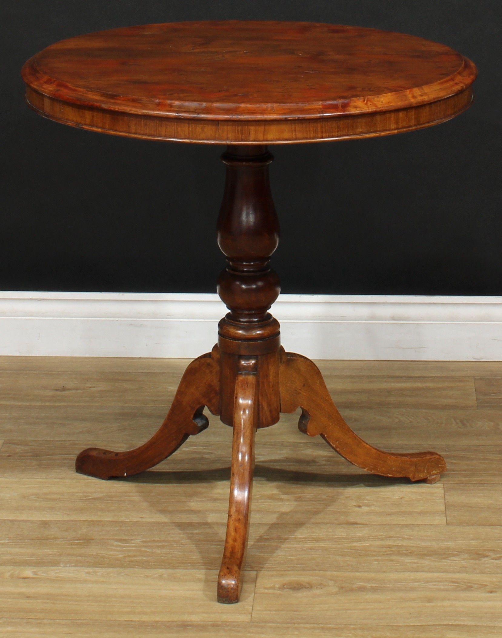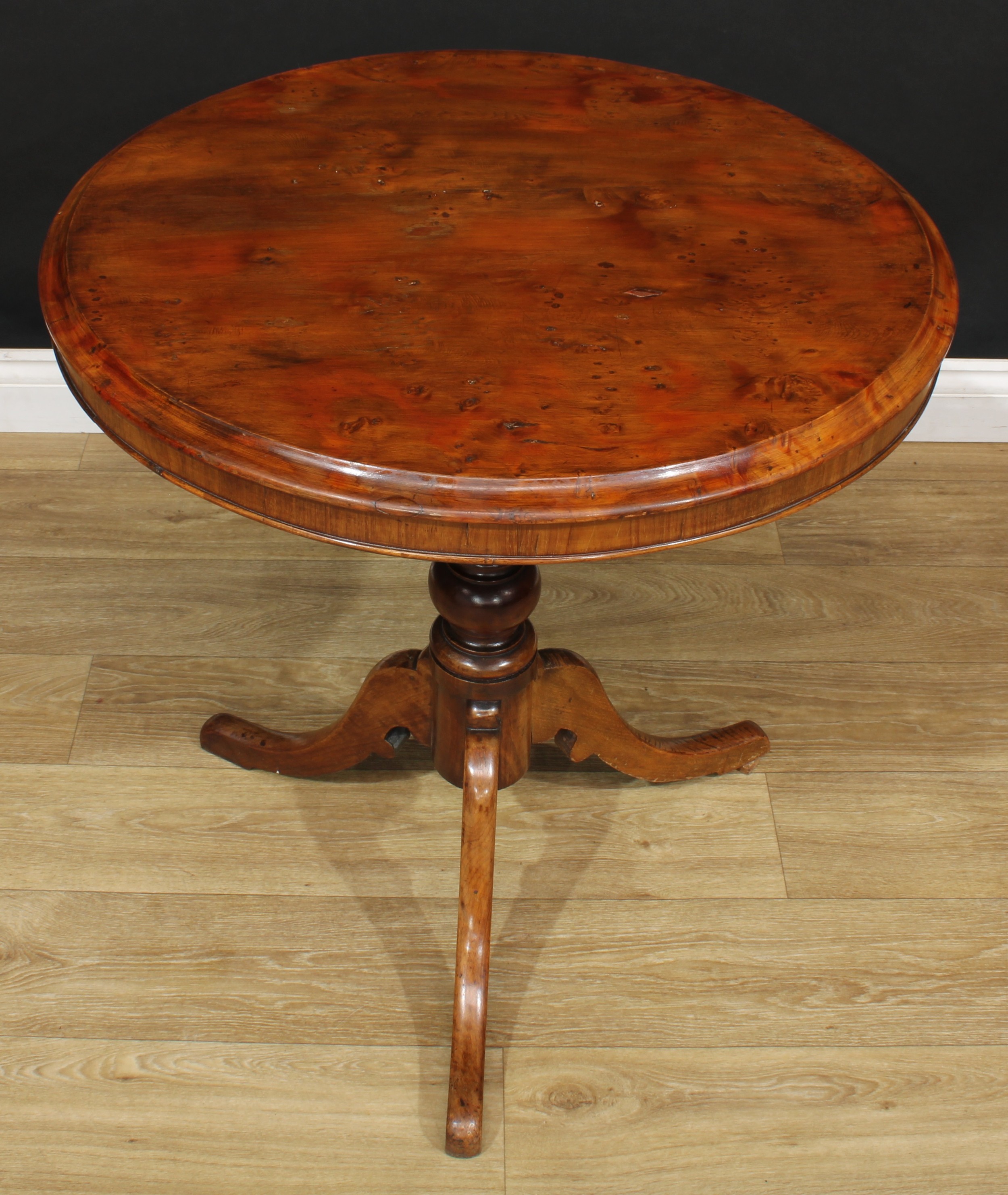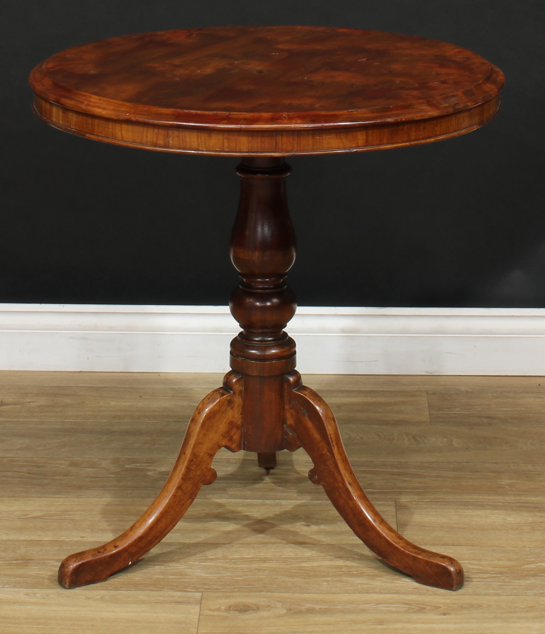 A 19th century vernacular tripod centre table, possibly Welsh, circular yew top, turned column, cabriole legs, 71cm high, the top 66cm diameter
