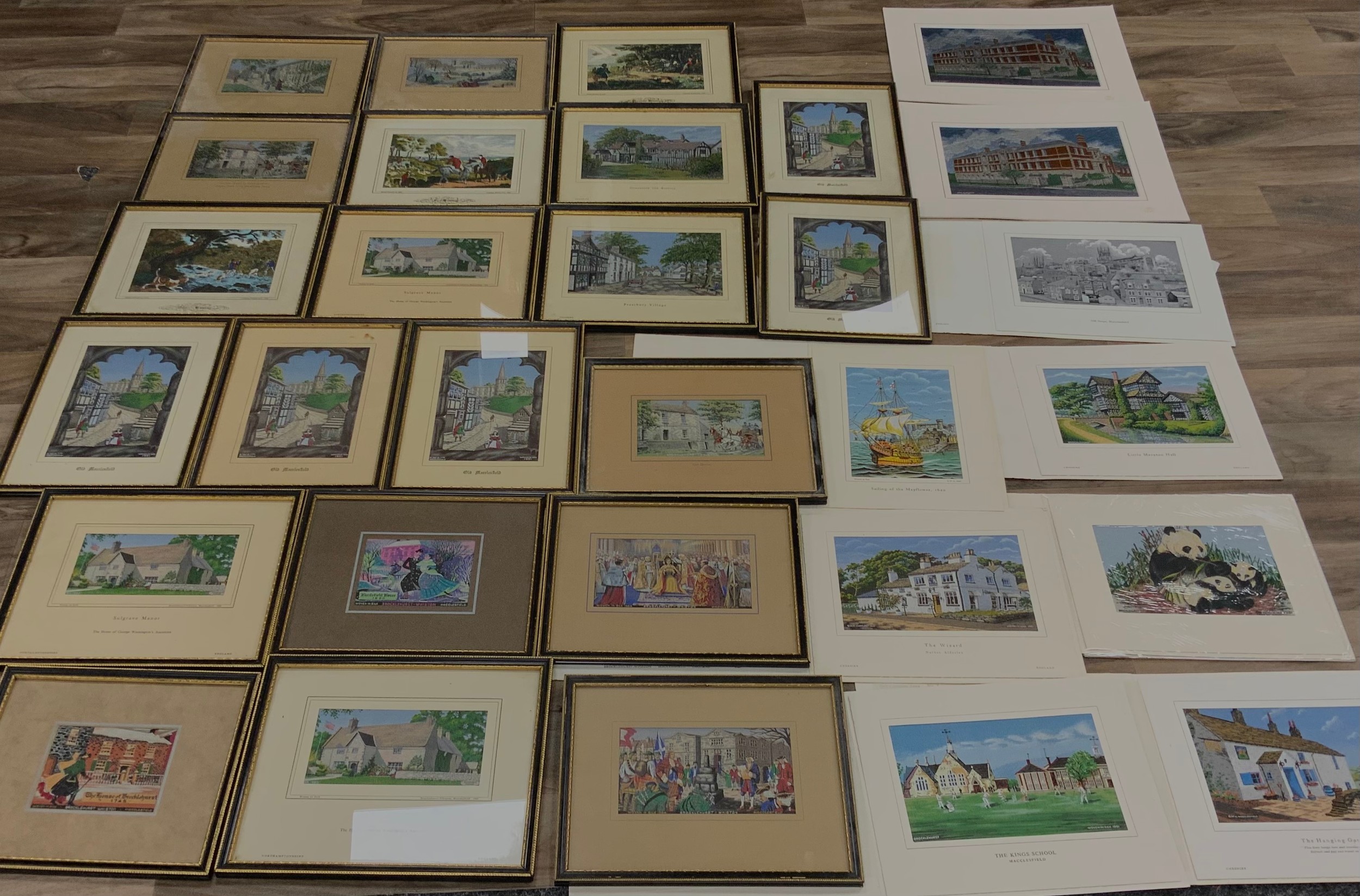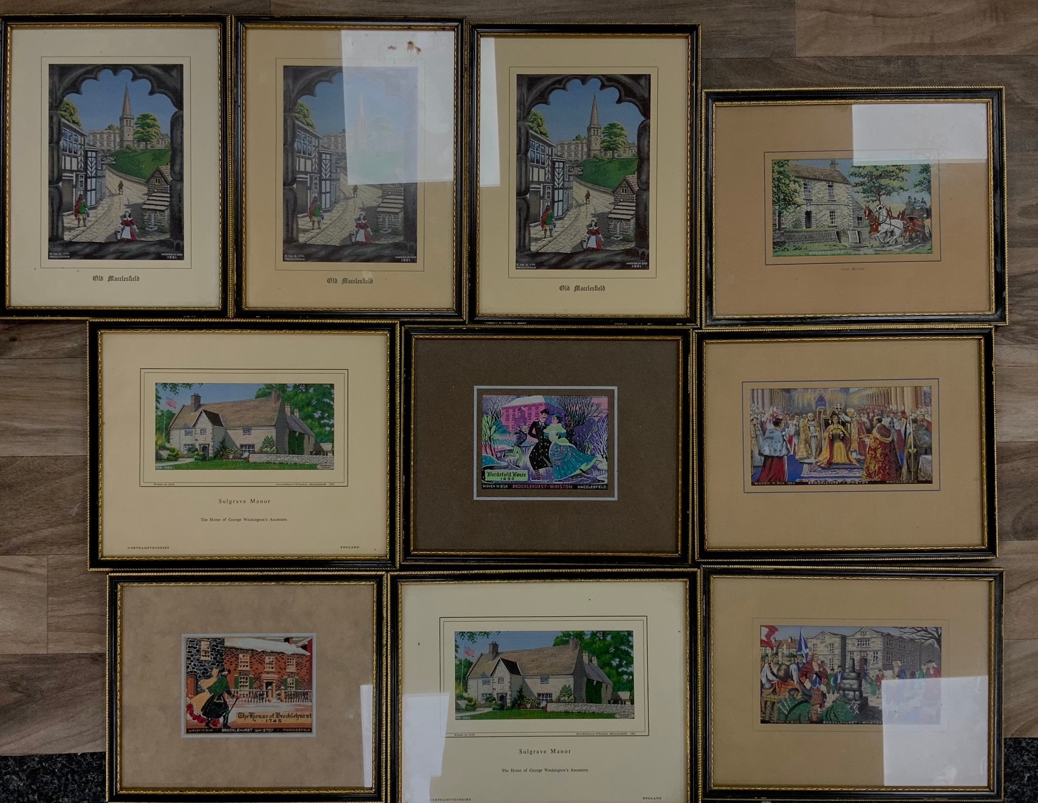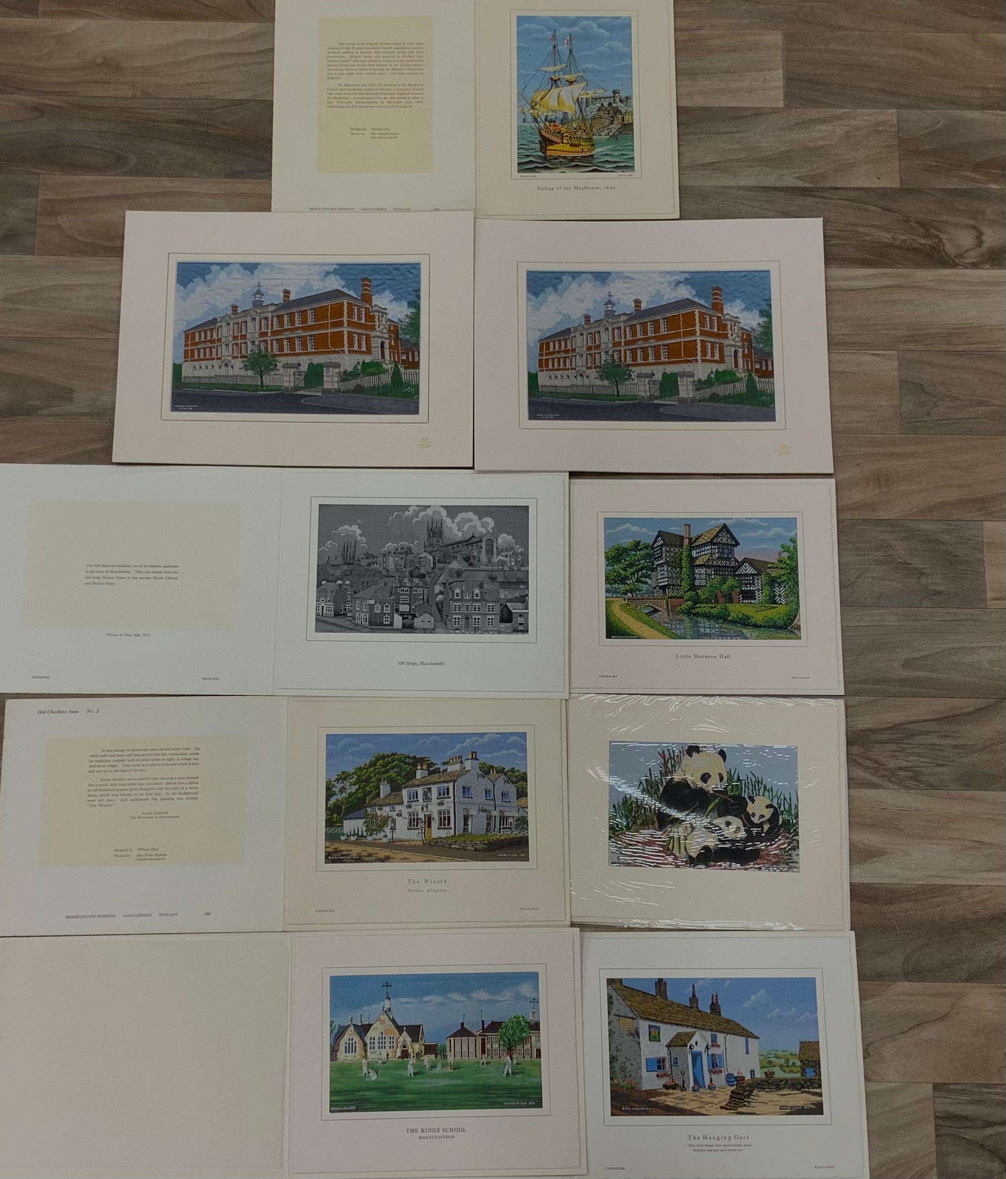A collection of Brocklehurst Whiston Macclesfield silks, inc Prestbury Village with Mini, Town Hall, Gap House, Paddlers Pool, Old Macclesfield etc some duplicates, mostly framed qty