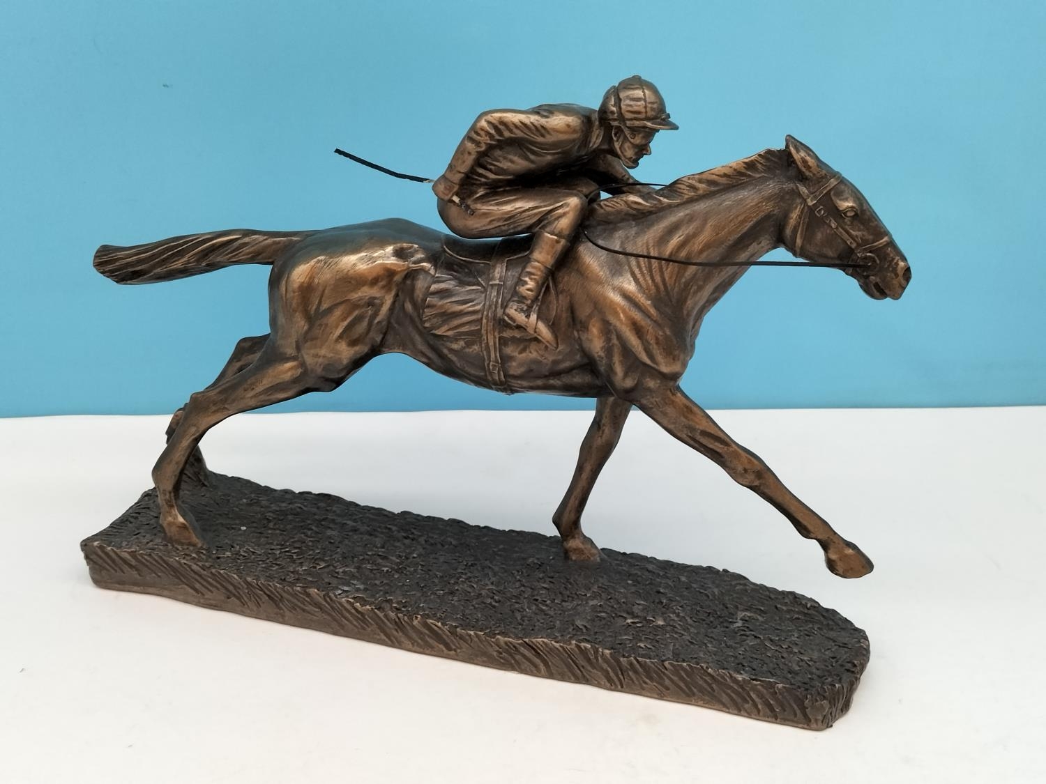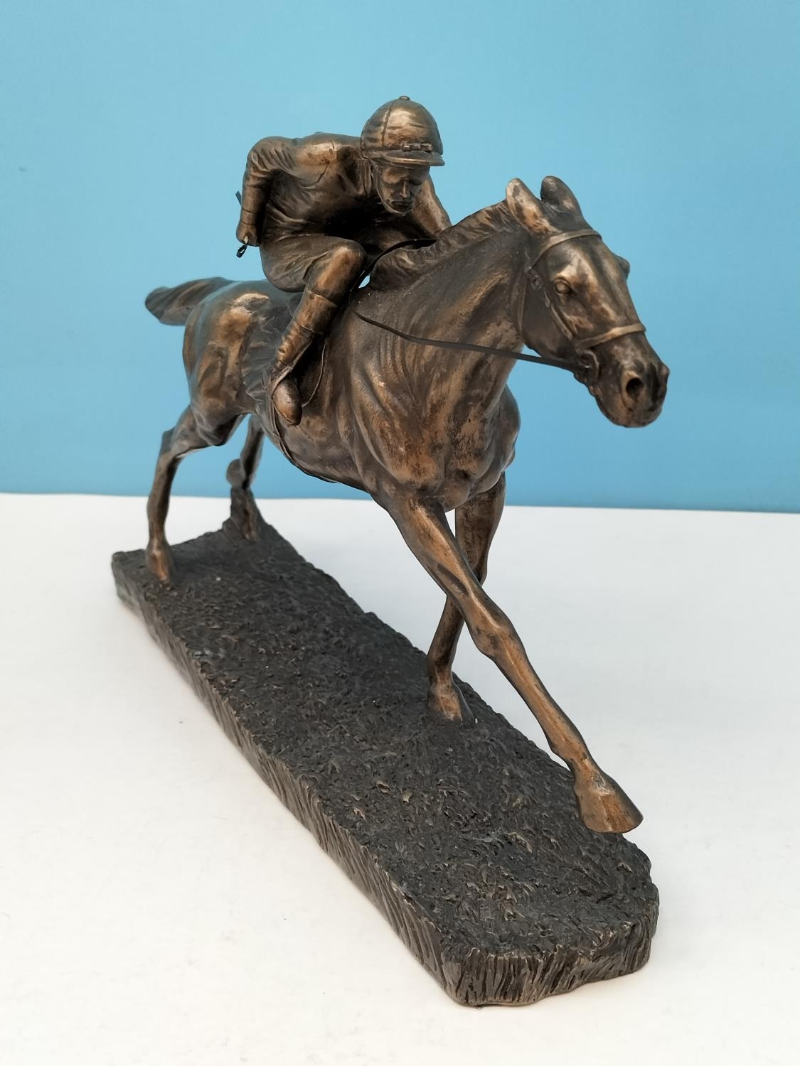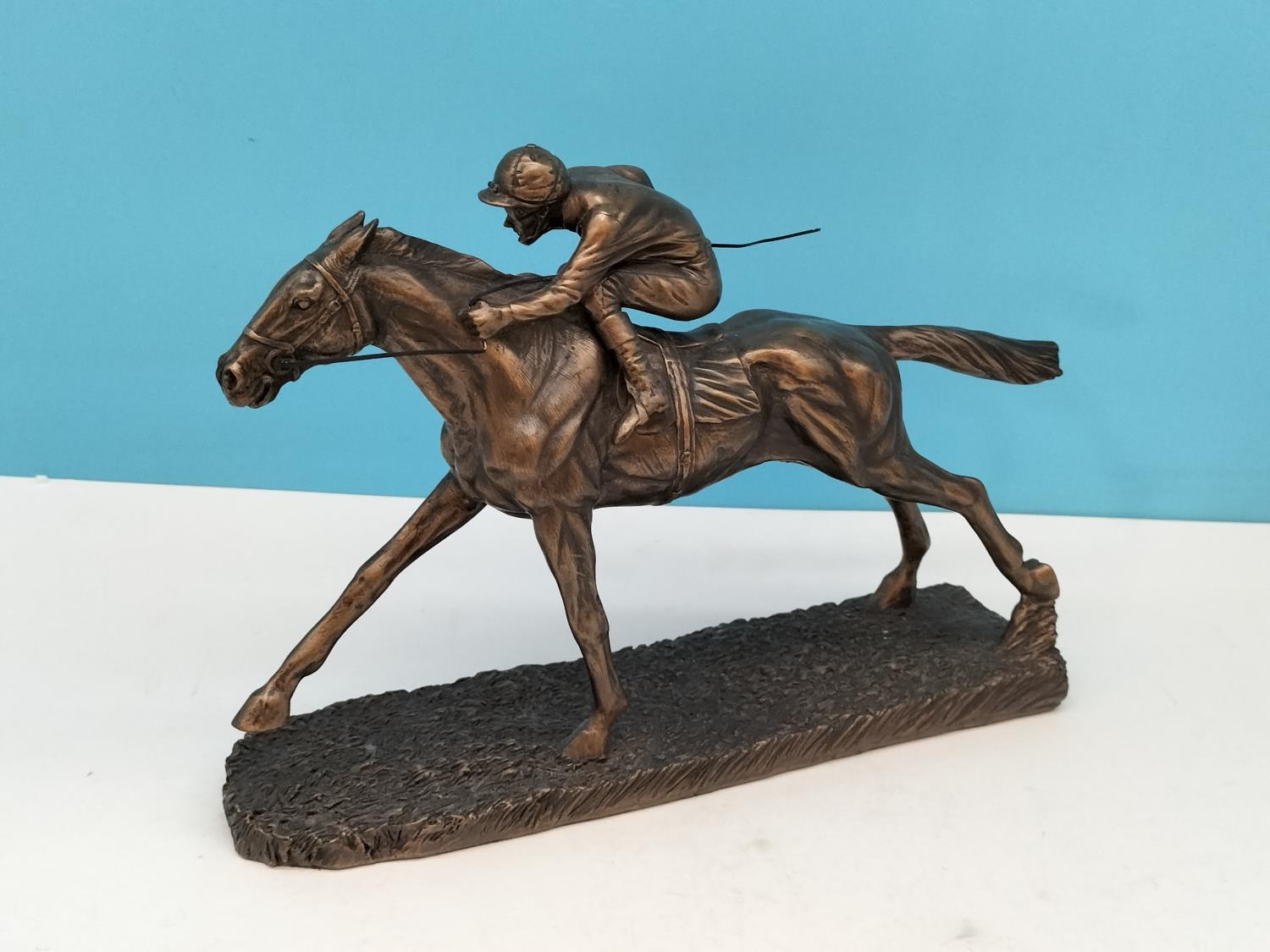 Veronese Cold Cast Bronze Figure of a Jockey and Horse. 20cm high, 28cm x 7cm.