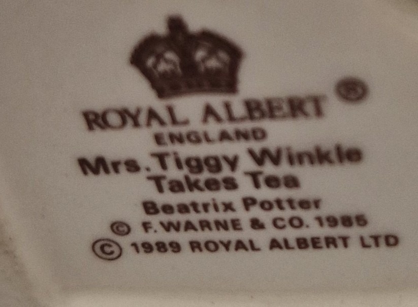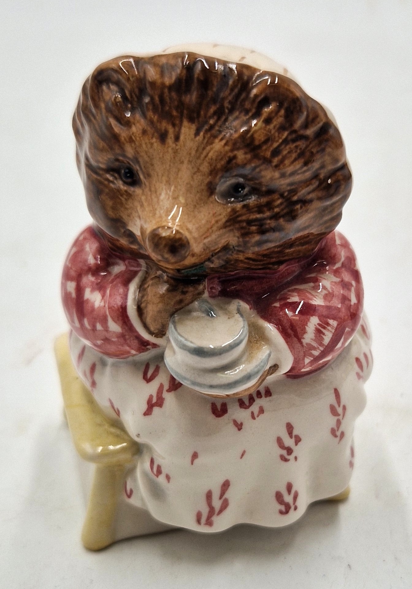 ROYAL ALBERT 8.3cm BEATRIX POTTER CHARACTER FIGURINE "Mrs TIGGYWINKLE TAKES TEA" BP-6a 1989/98 Designed By Mr David Lyttleton