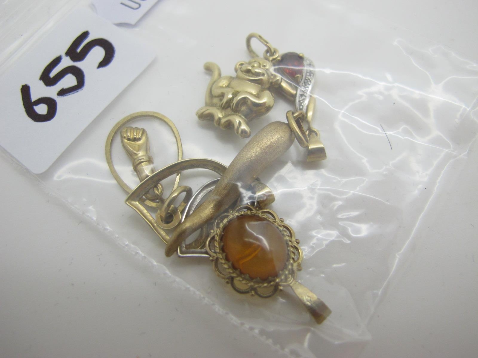 Charm and Other Pendants, including horn of plenty, novelty monkey, open heart etc.