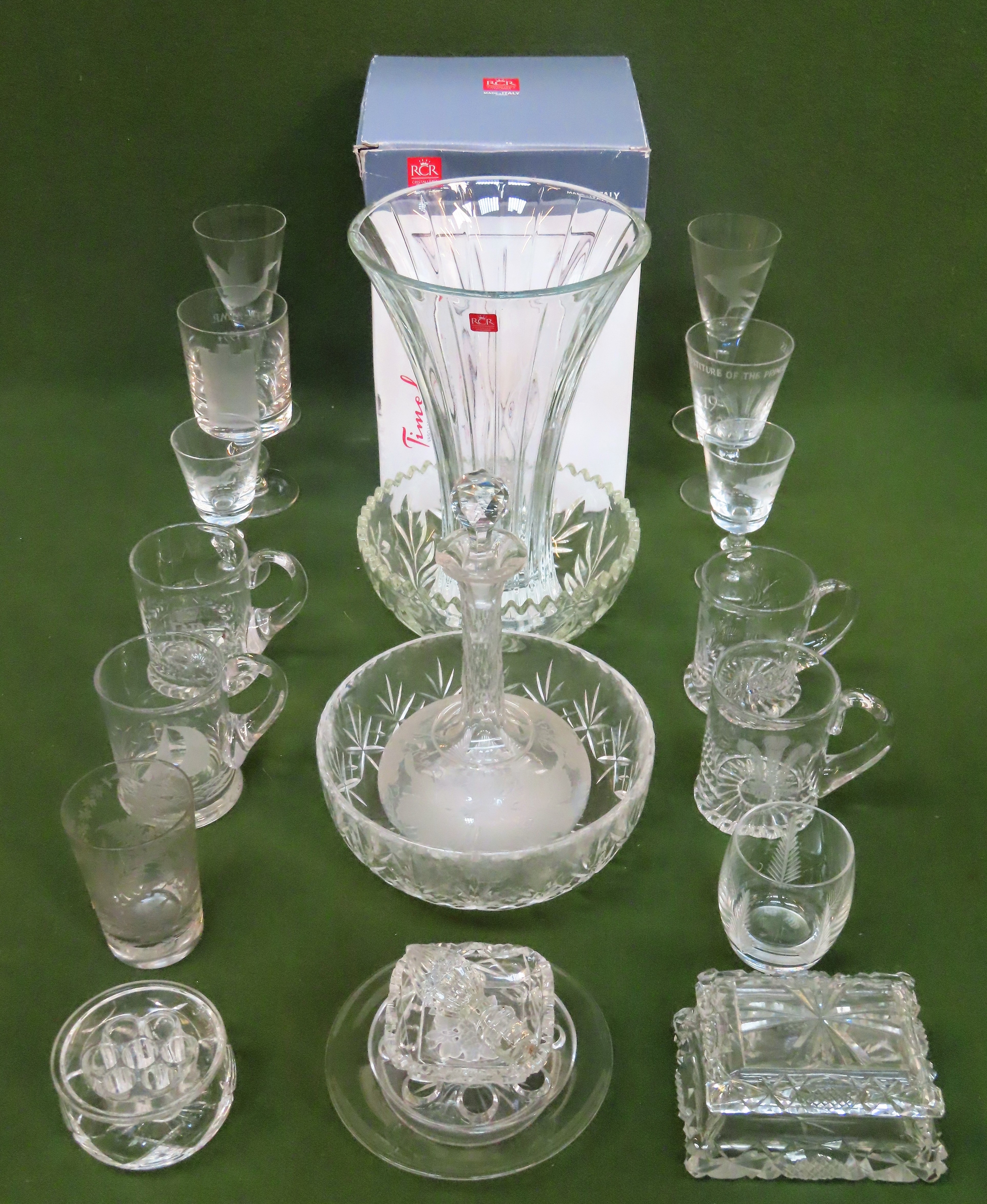 Parcel of various etched and other glassware Inc. stemmed glasses, vases, bowls etc