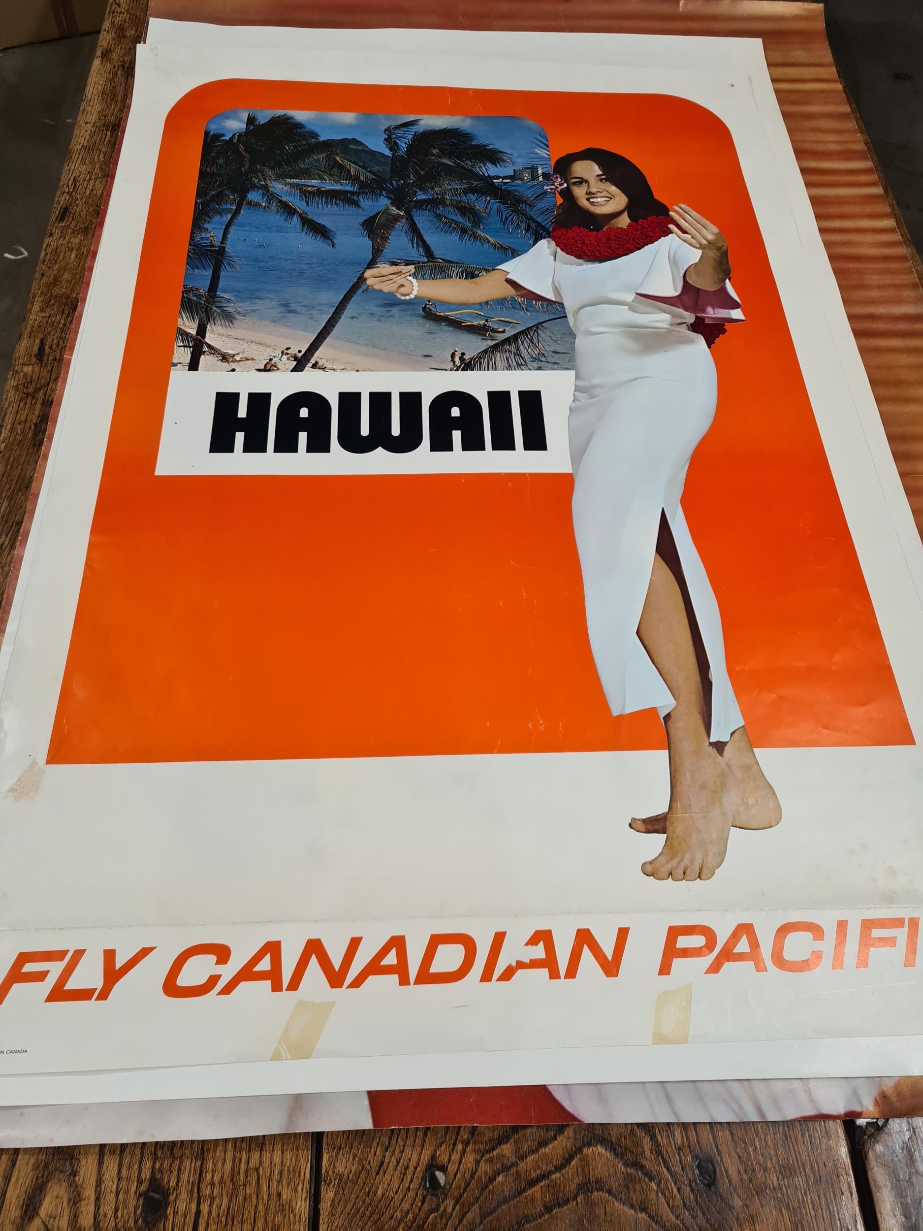 Three large Travel Posters: Italy, Panam, Colarado, Western Airlines, and Hawaii, Canadian Pacific, approx 39 x 25in (R3)