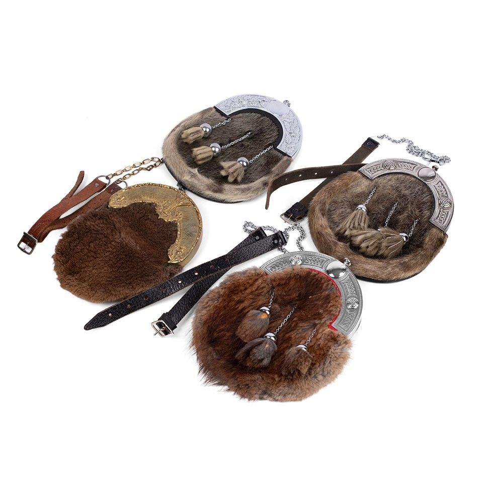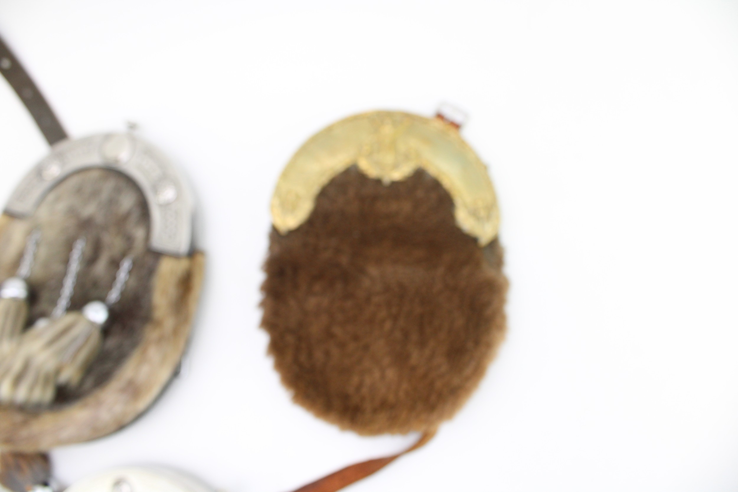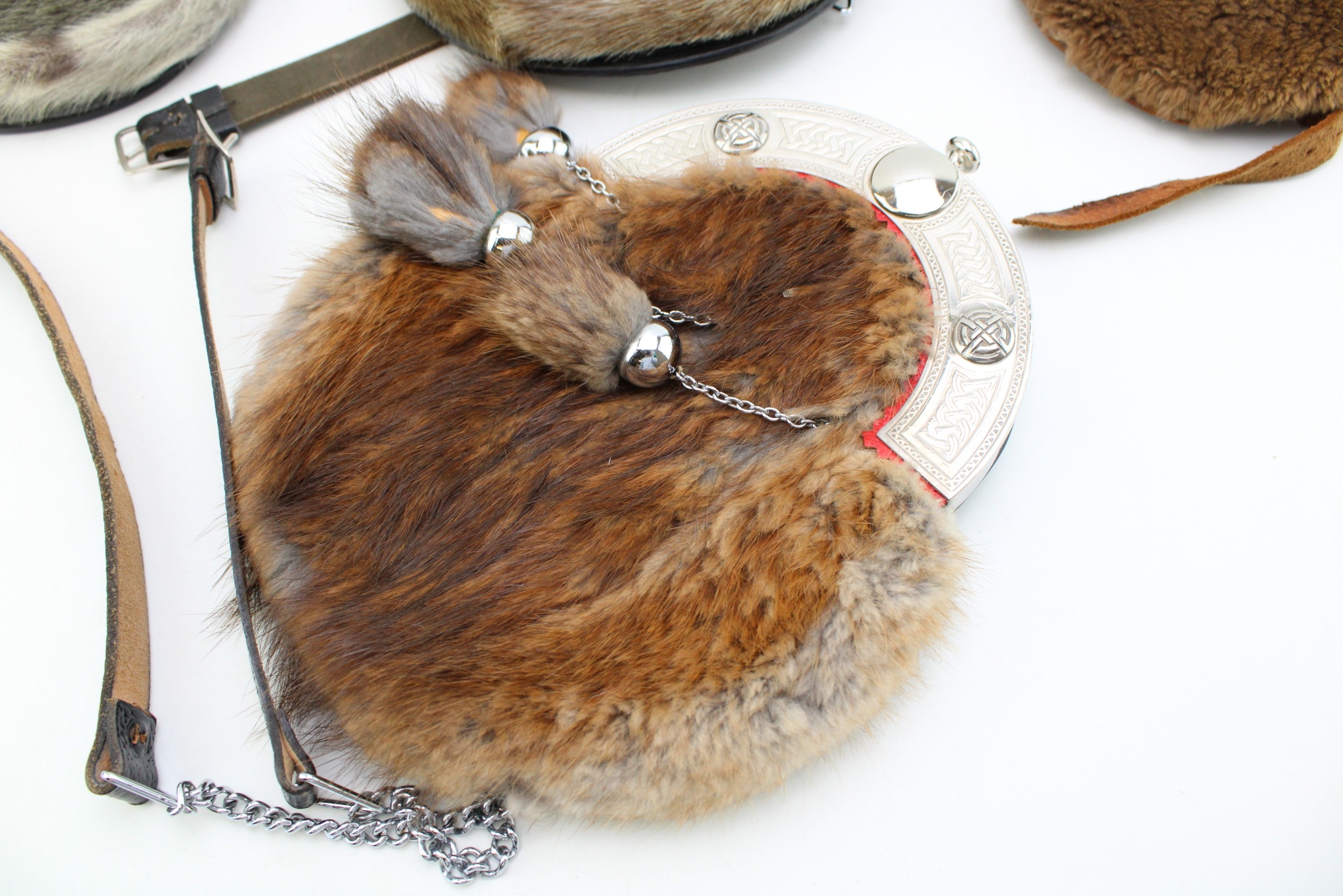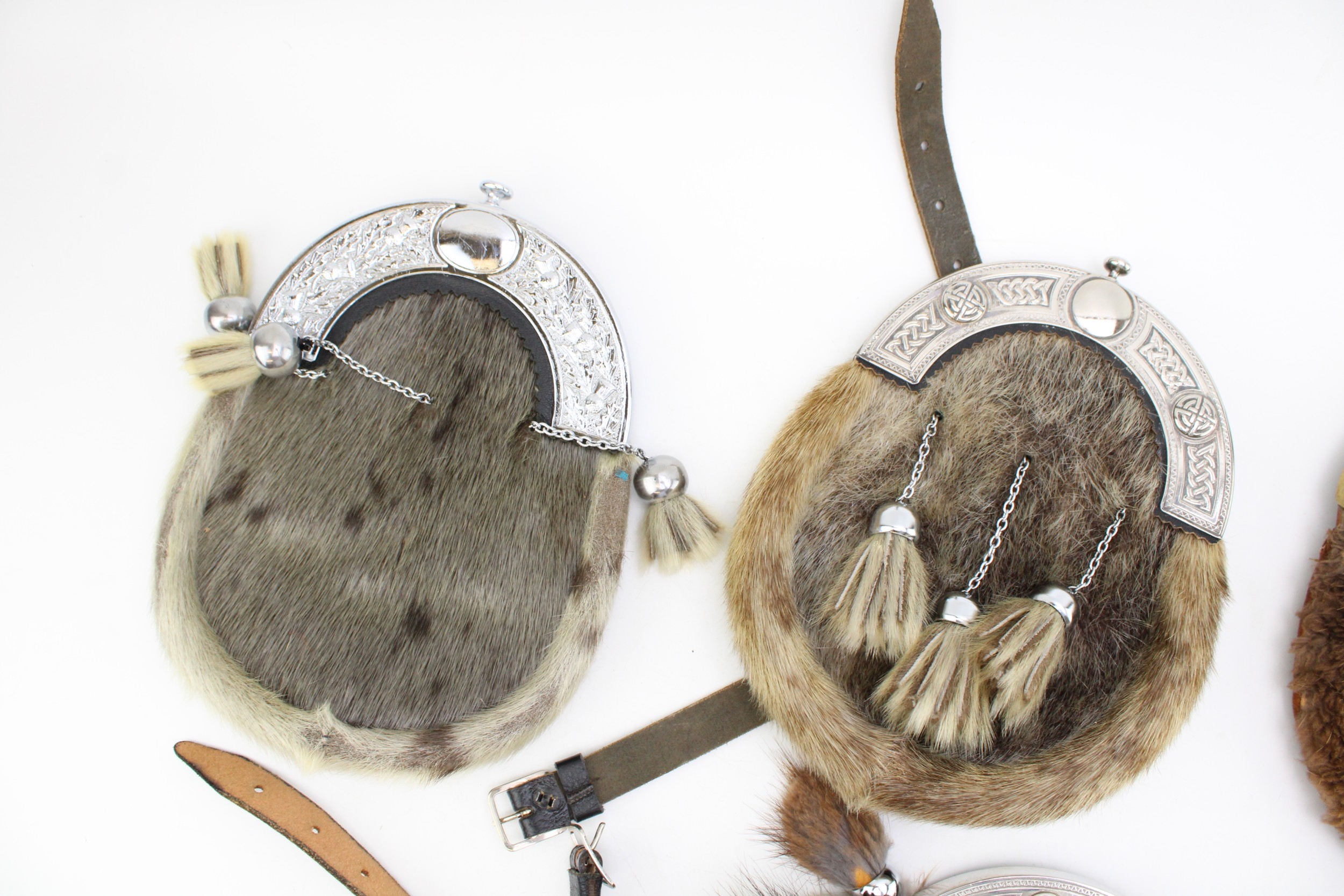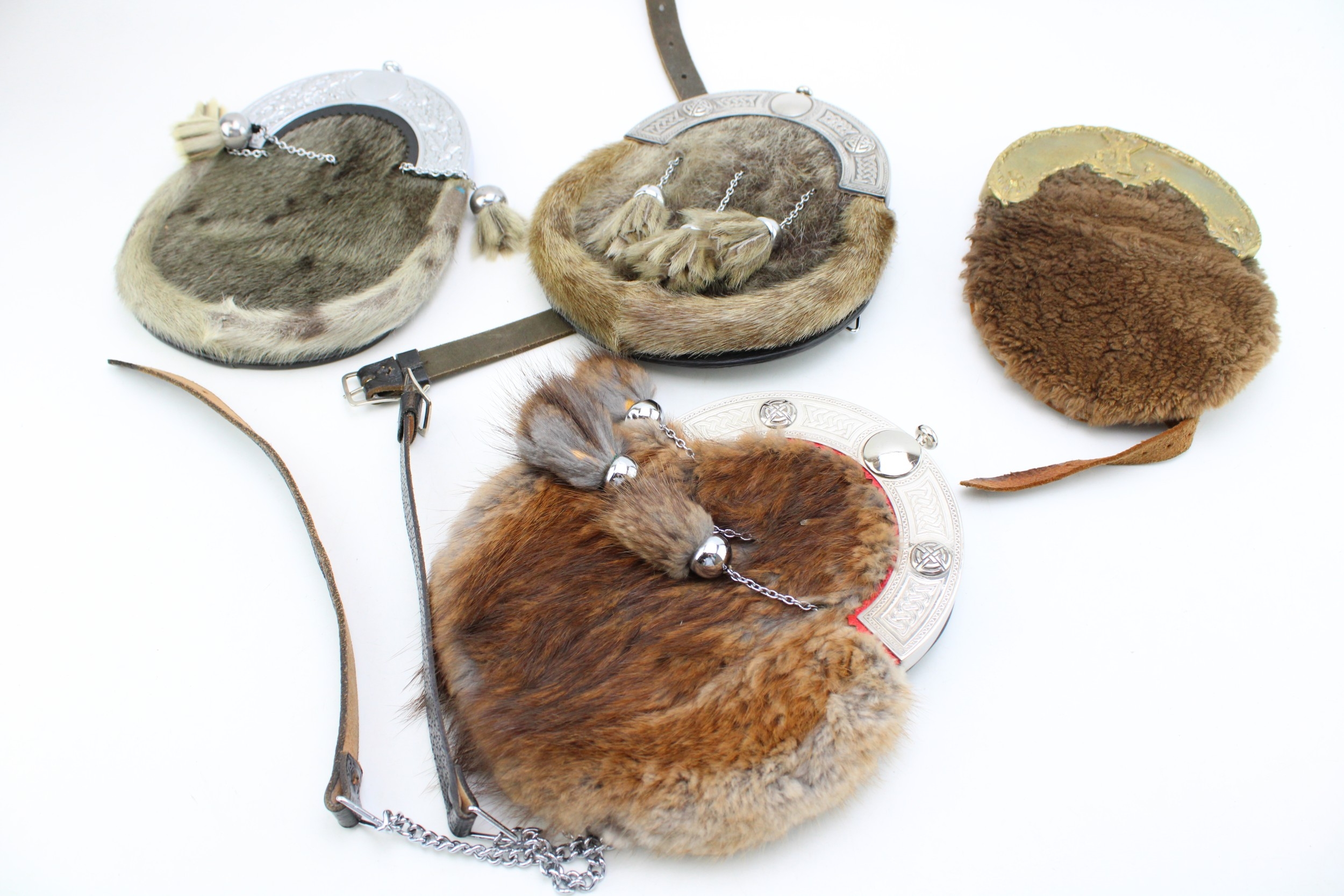 A collection of quality c20th seal & rabbit skin tradition Scottish Highland dress kilt sporrans including a Black Watch angora example