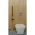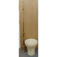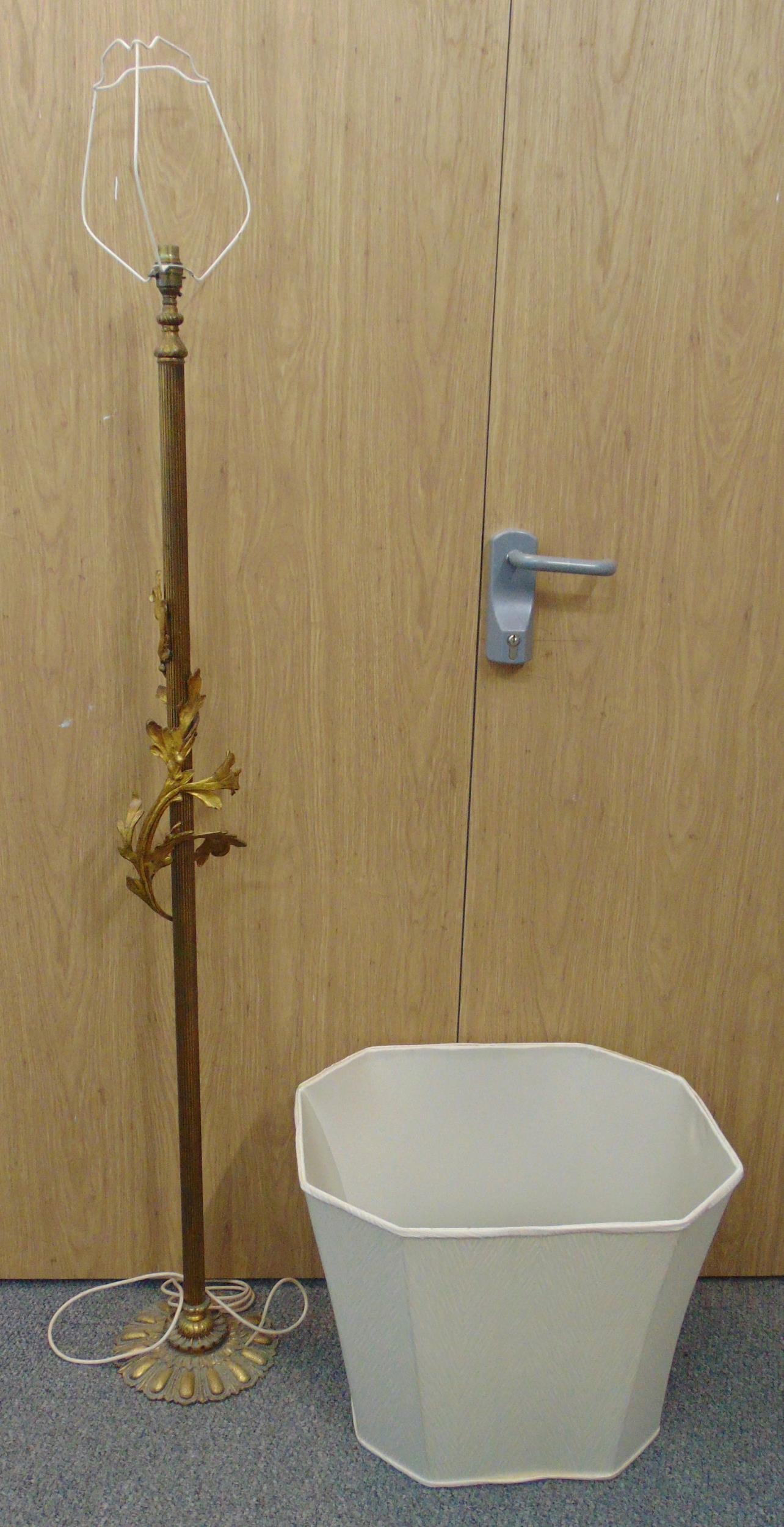 A brass standard lamp of fluted cylindrical form with applied naturalistic leaves on circular base to include silk shade. 146cm (h)