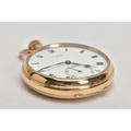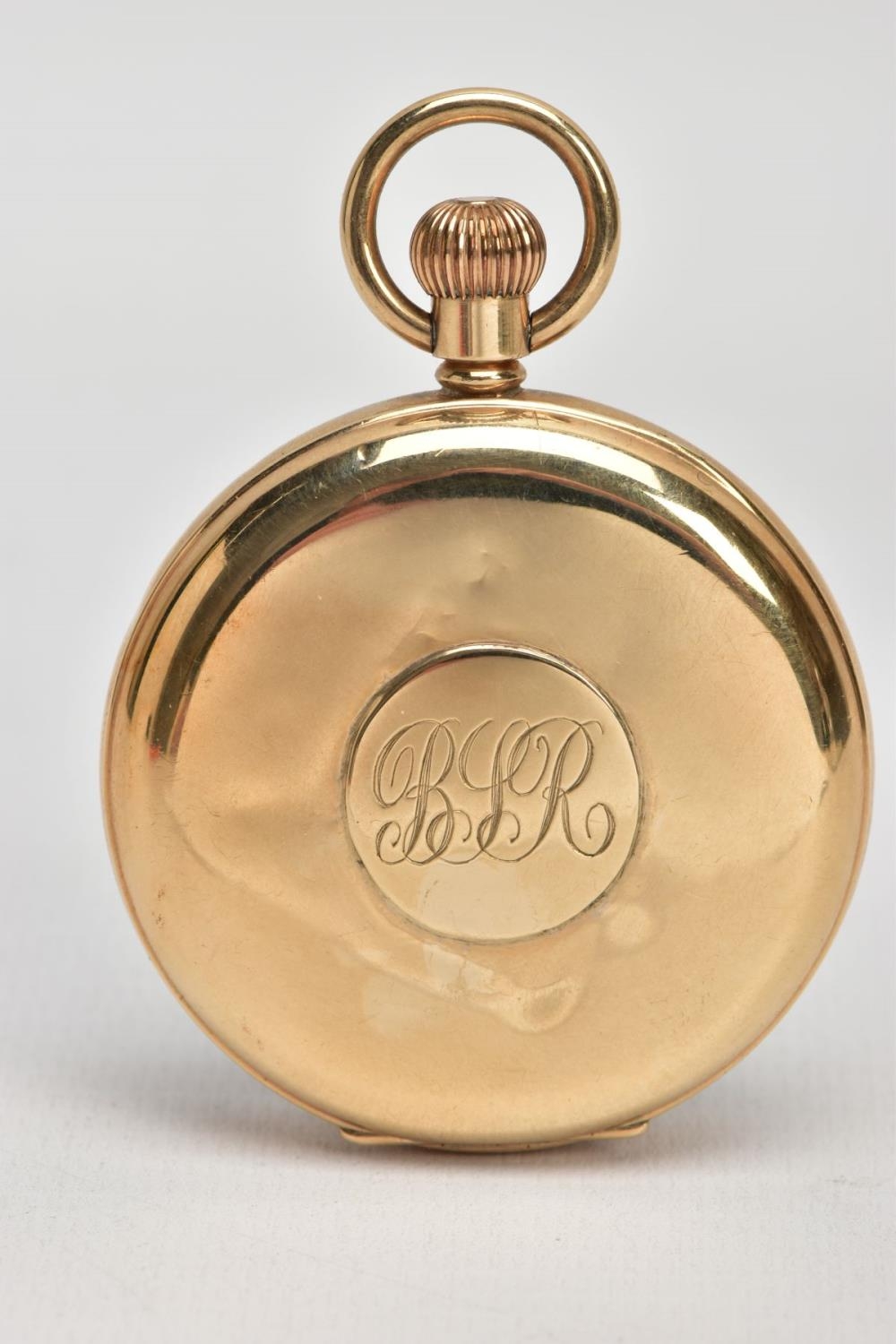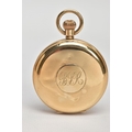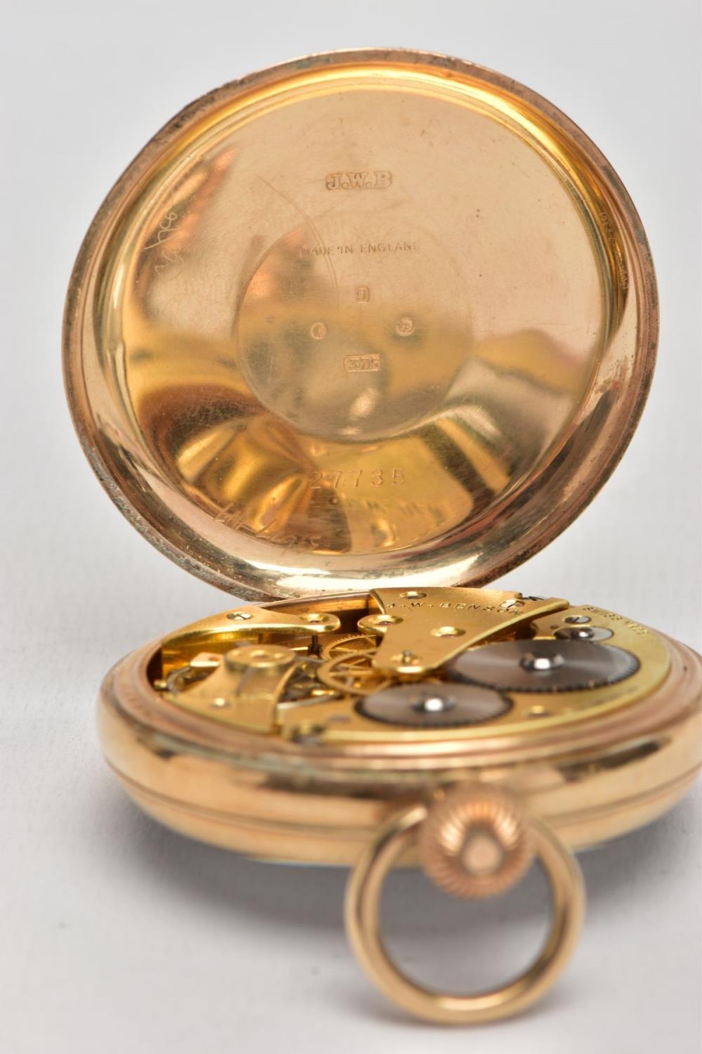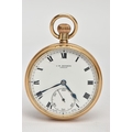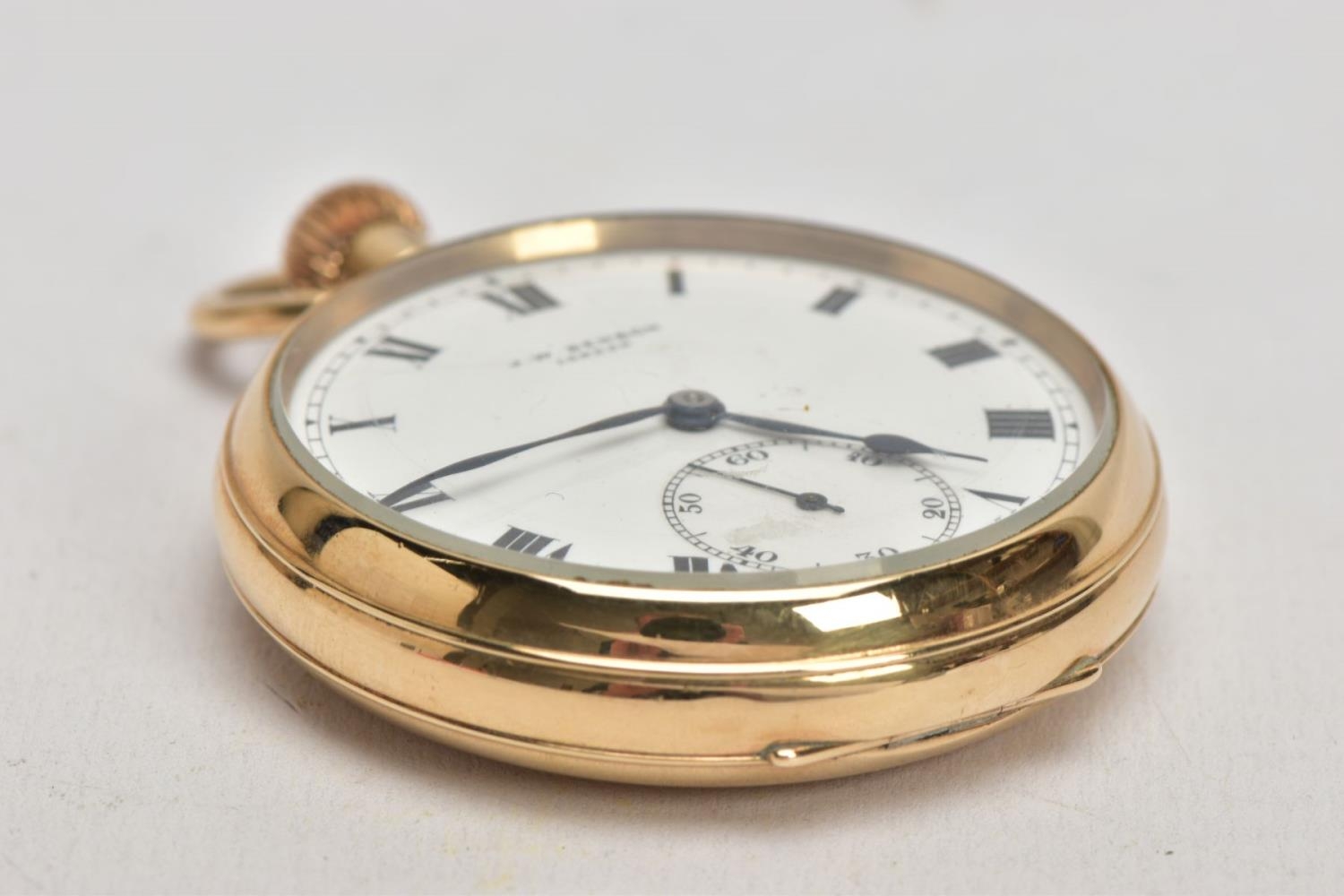 A 9CT GOLD OPEN FACE POCKET WATCH, white dial signed 'J.W.Benson, London', Roman numerals, seconds subsidiary dial at the six o'clock position, blue hands, within a plain polished case and engraved cartouche, case back hallmarked 9ct gold London 1934, movement signed 'J.W.Benson' Swiss made, 15 jewels, Ref.939', approximate case width 48.7mm, approximate gross weight 75.5 grams (condition report: in working condition, time keeping untested, general light wear, small hair line crack within the dial)
