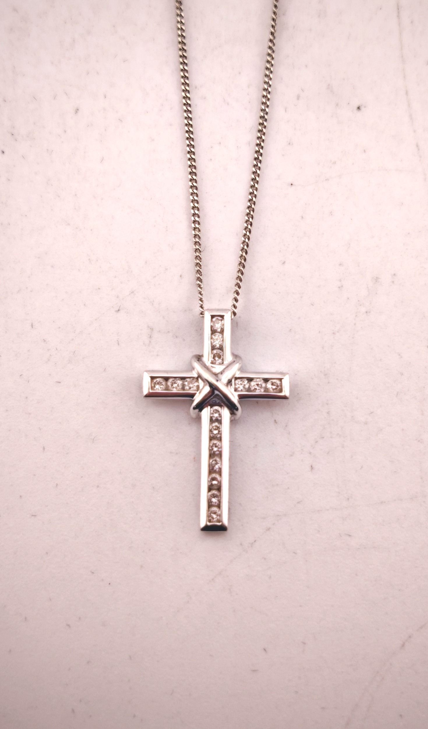 Ladies 9ct White Gold Diamond set Cross 36cm in Length. 2.3g total weight