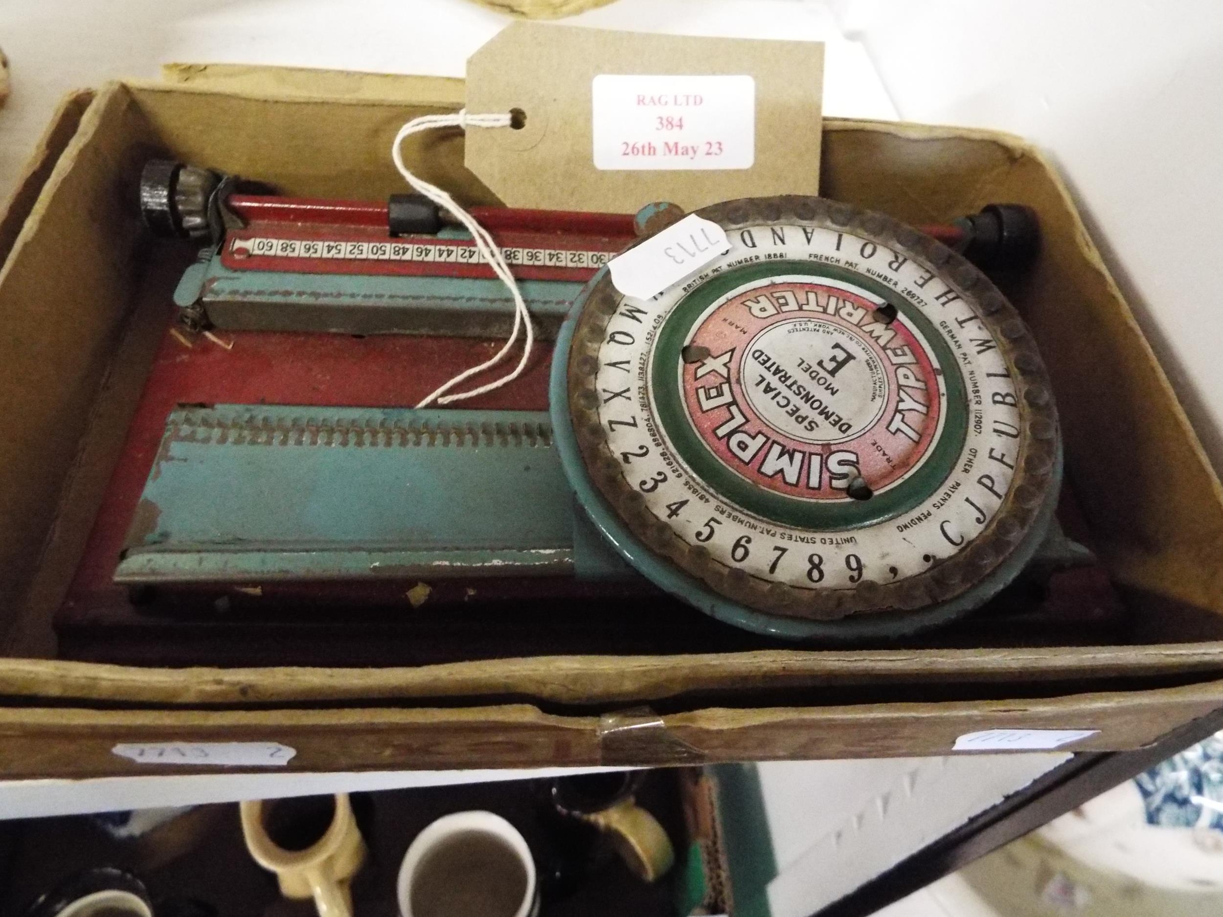 A vintage Simplex tinplate typewriter