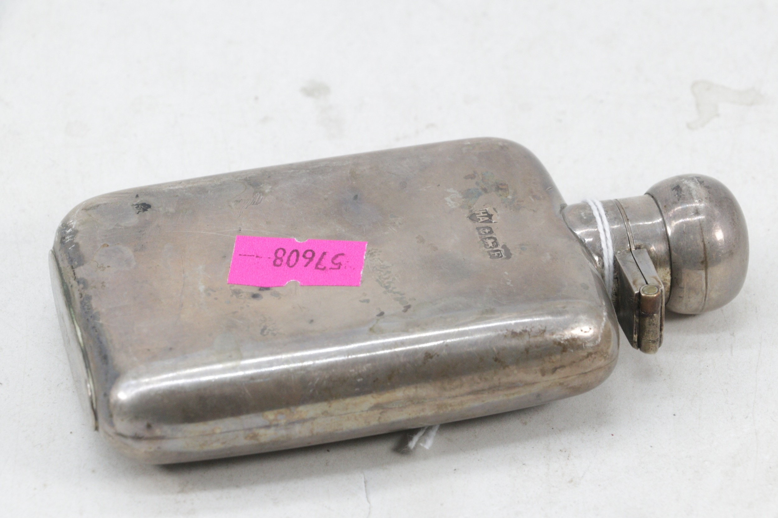 Silver hallmarked hip flask (weight approx. 90g)