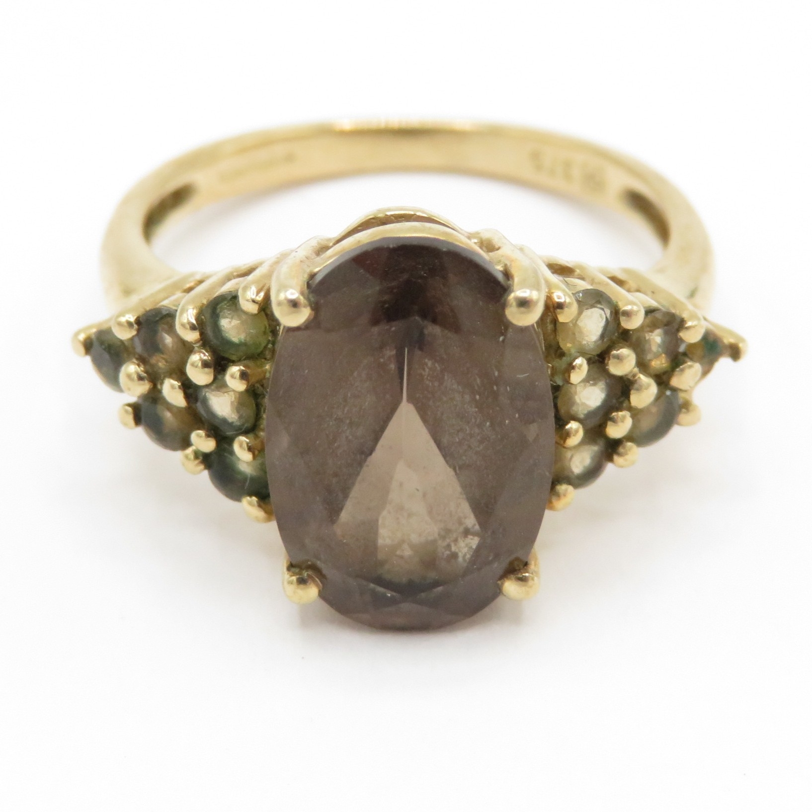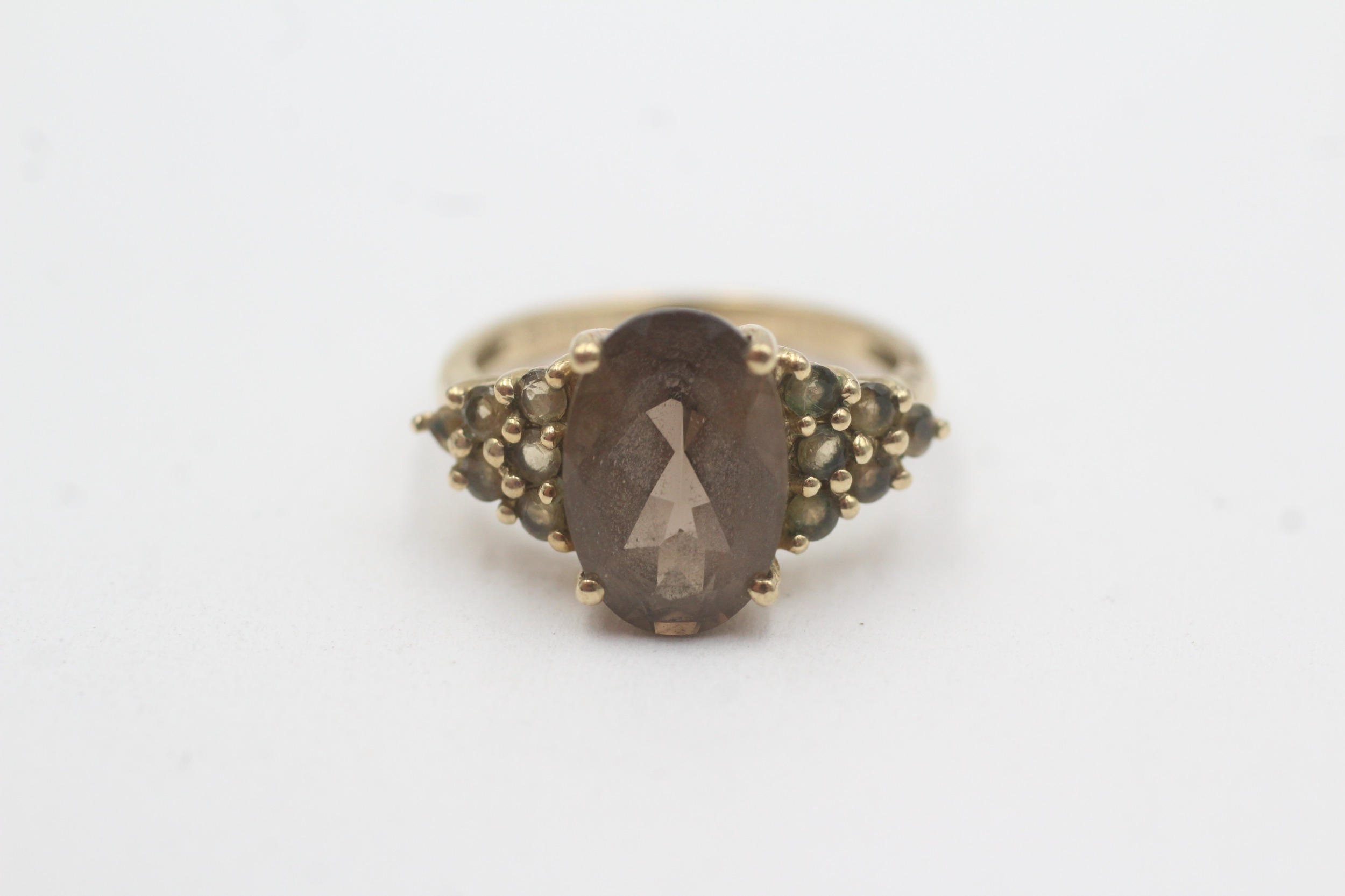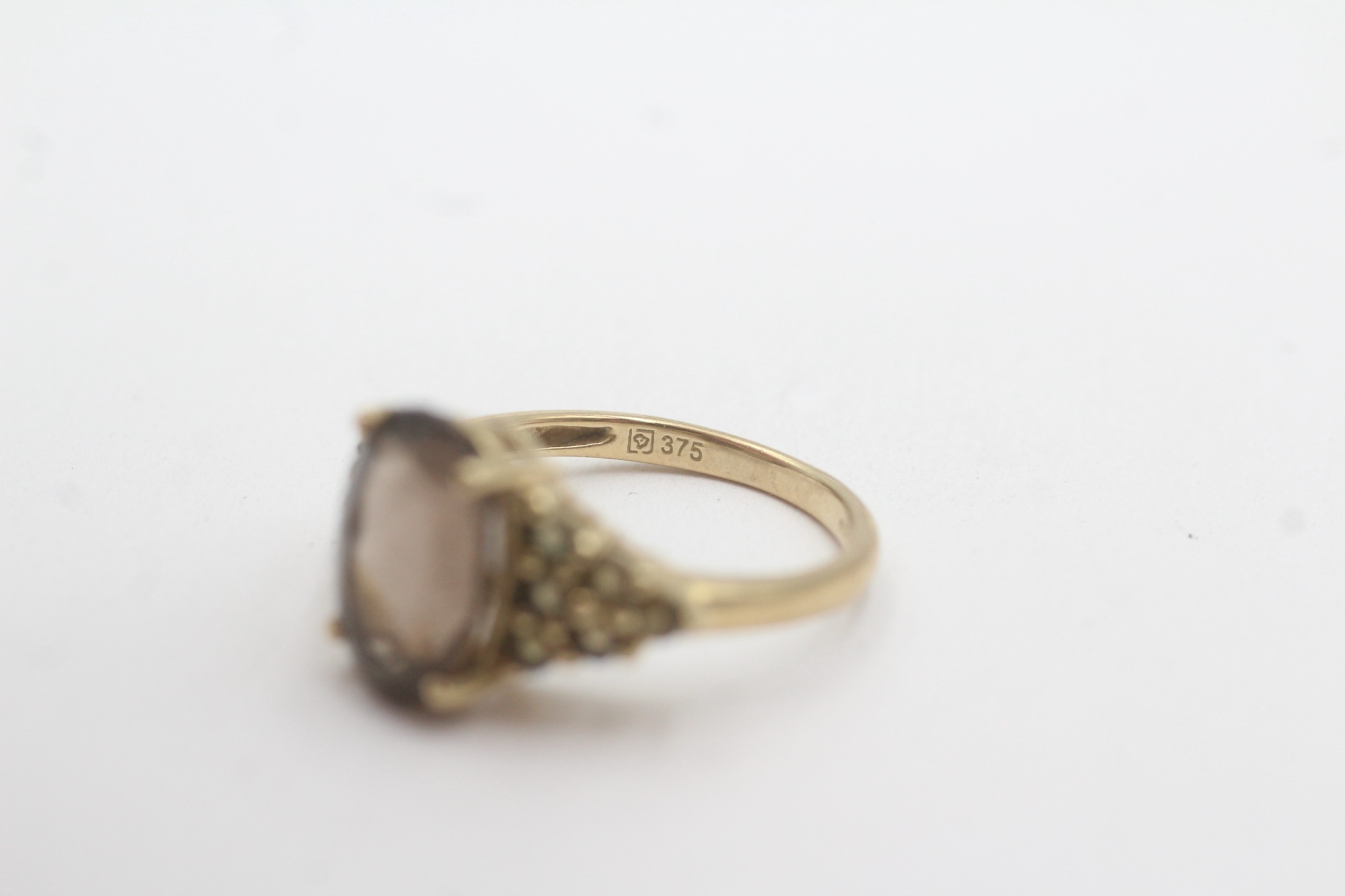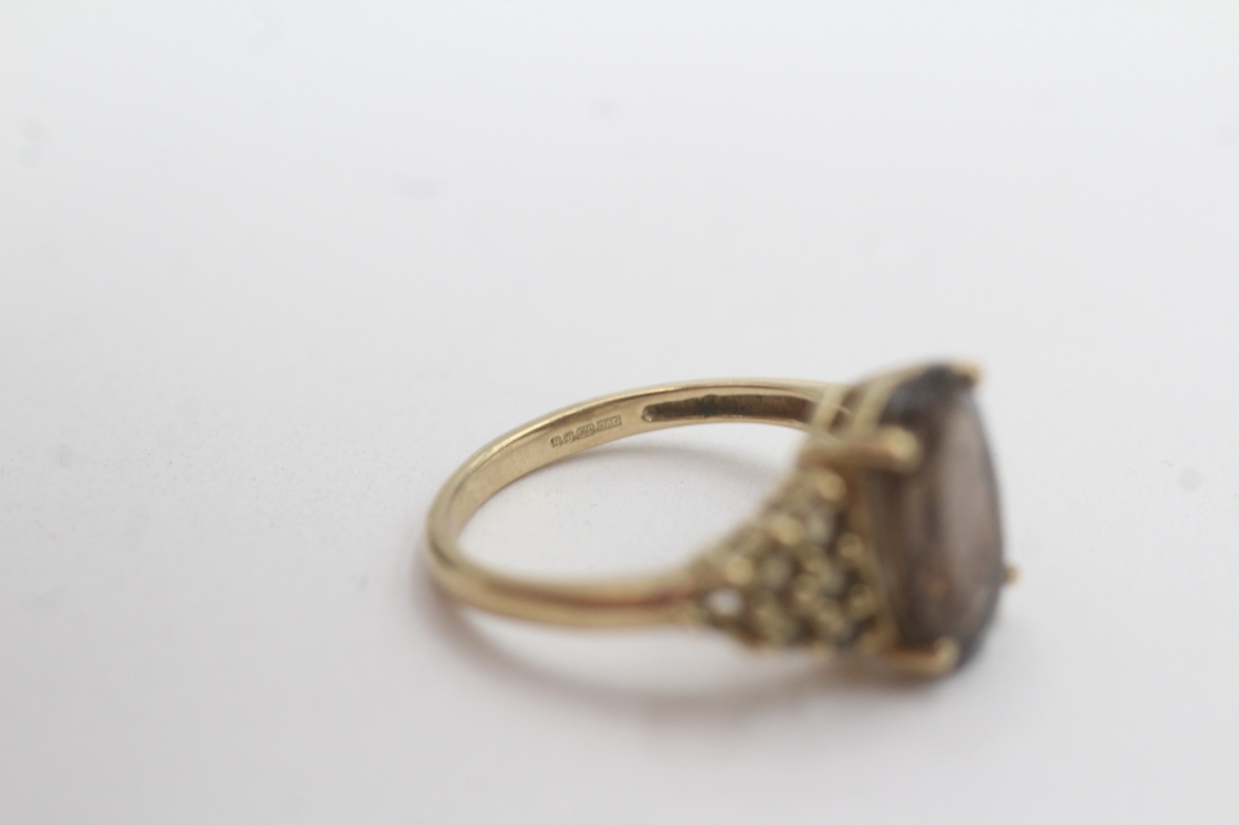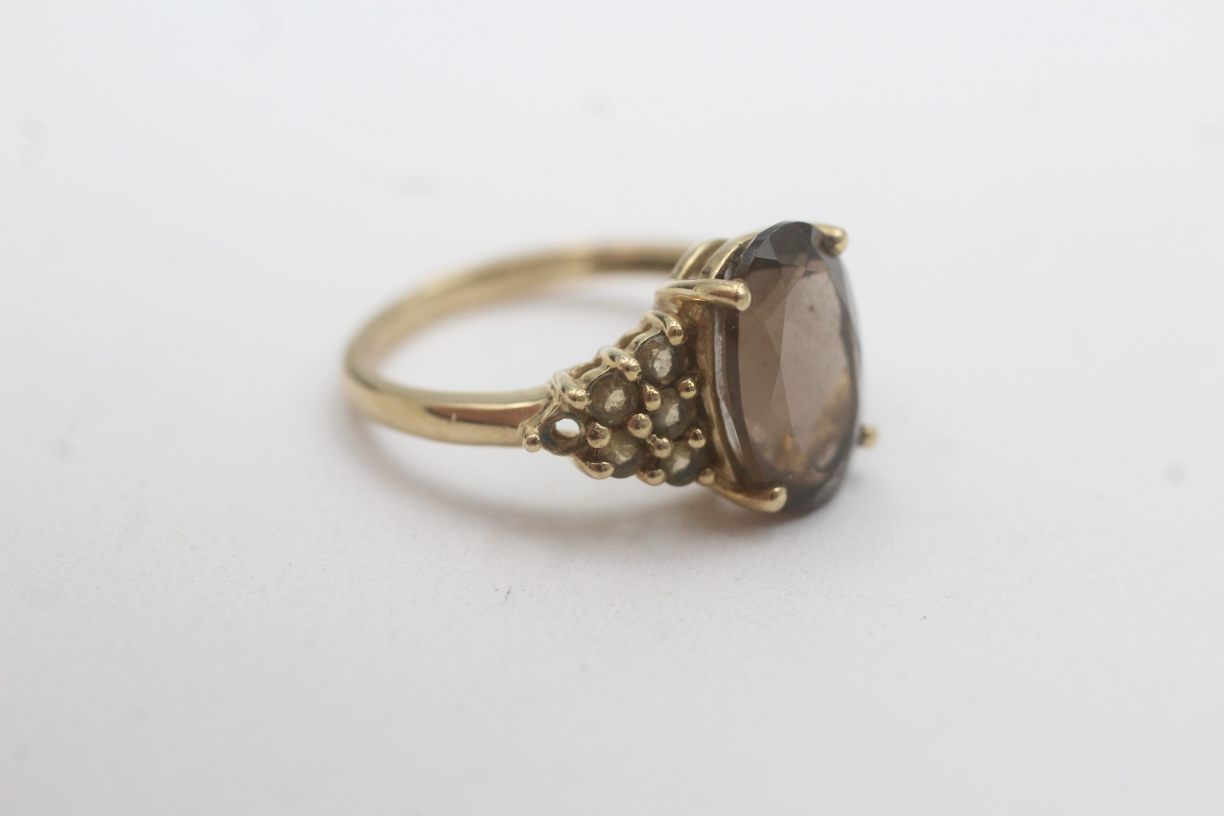 9ct gold smoky quartz dress ring (2.8g) Size L