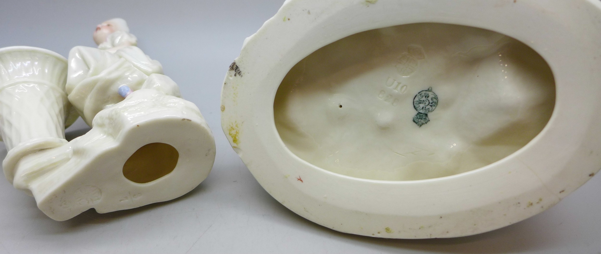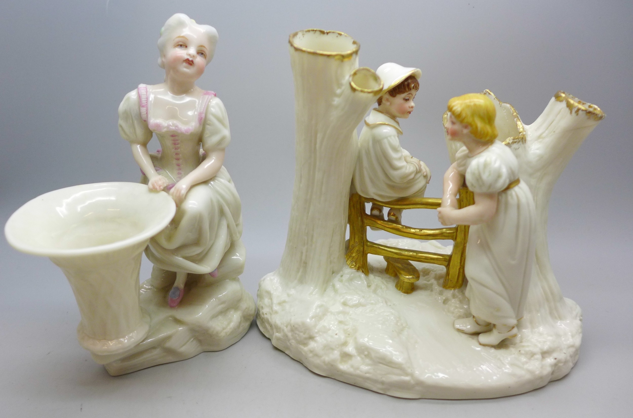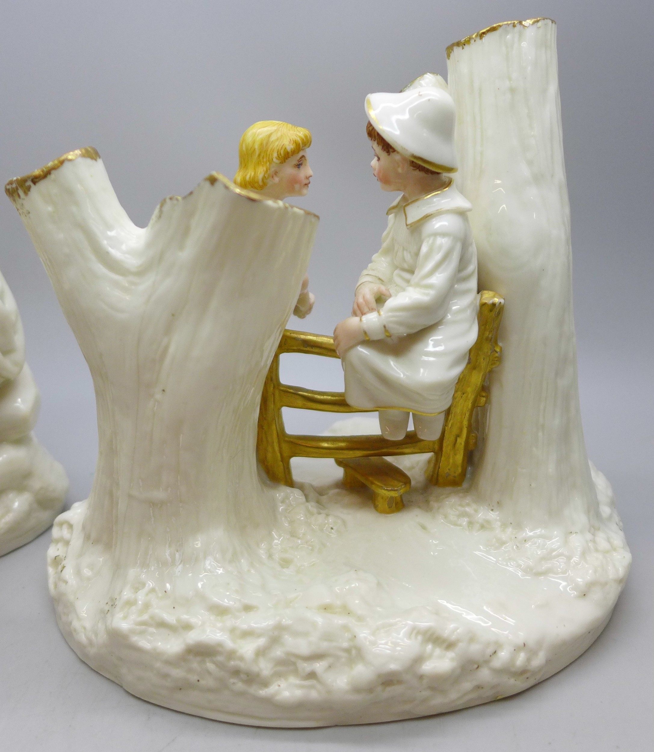 Two Royal Worcester pieces - rare Country Courtship group dated 1889 and a late 19th century figure, 15cm approximately