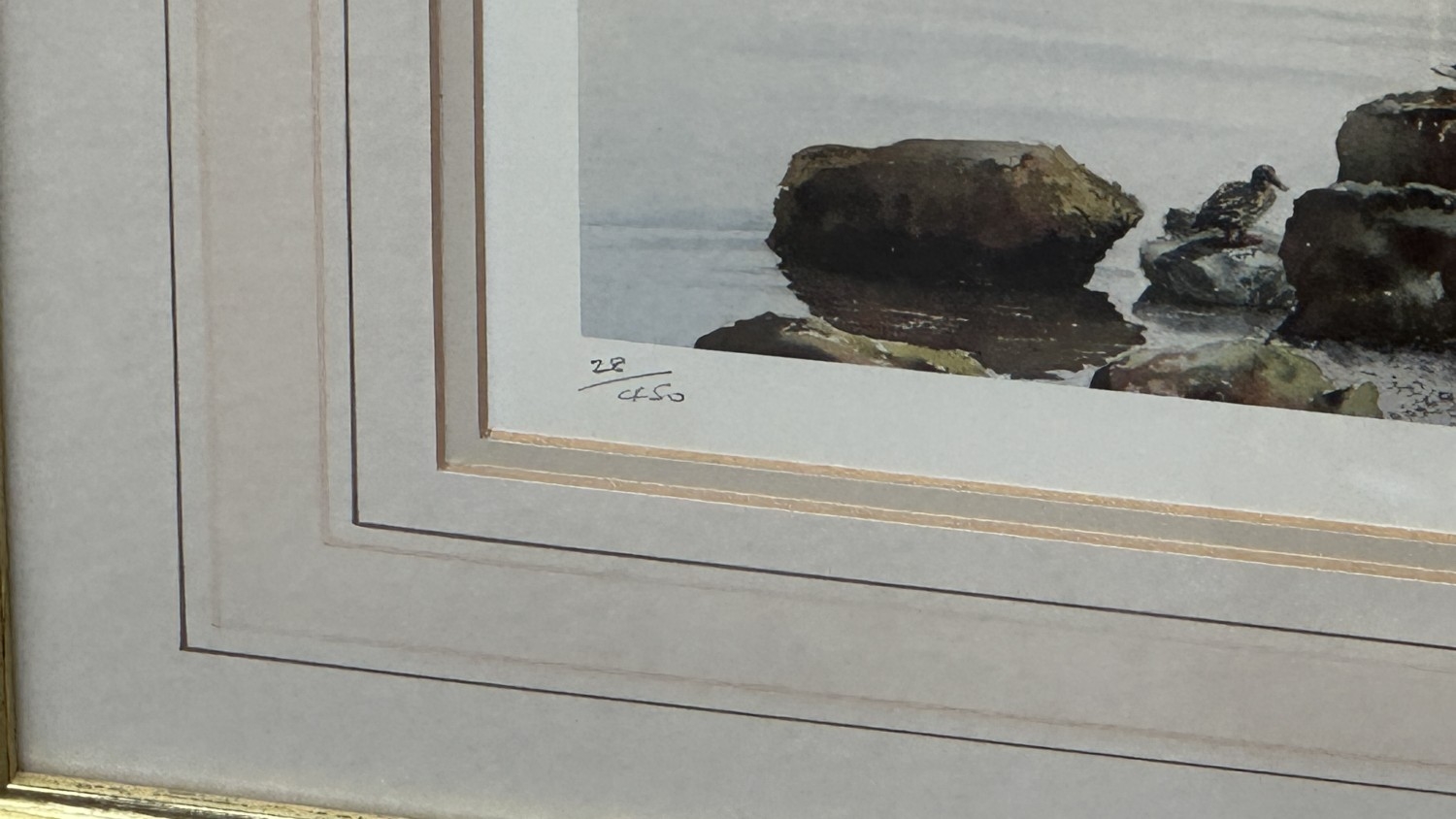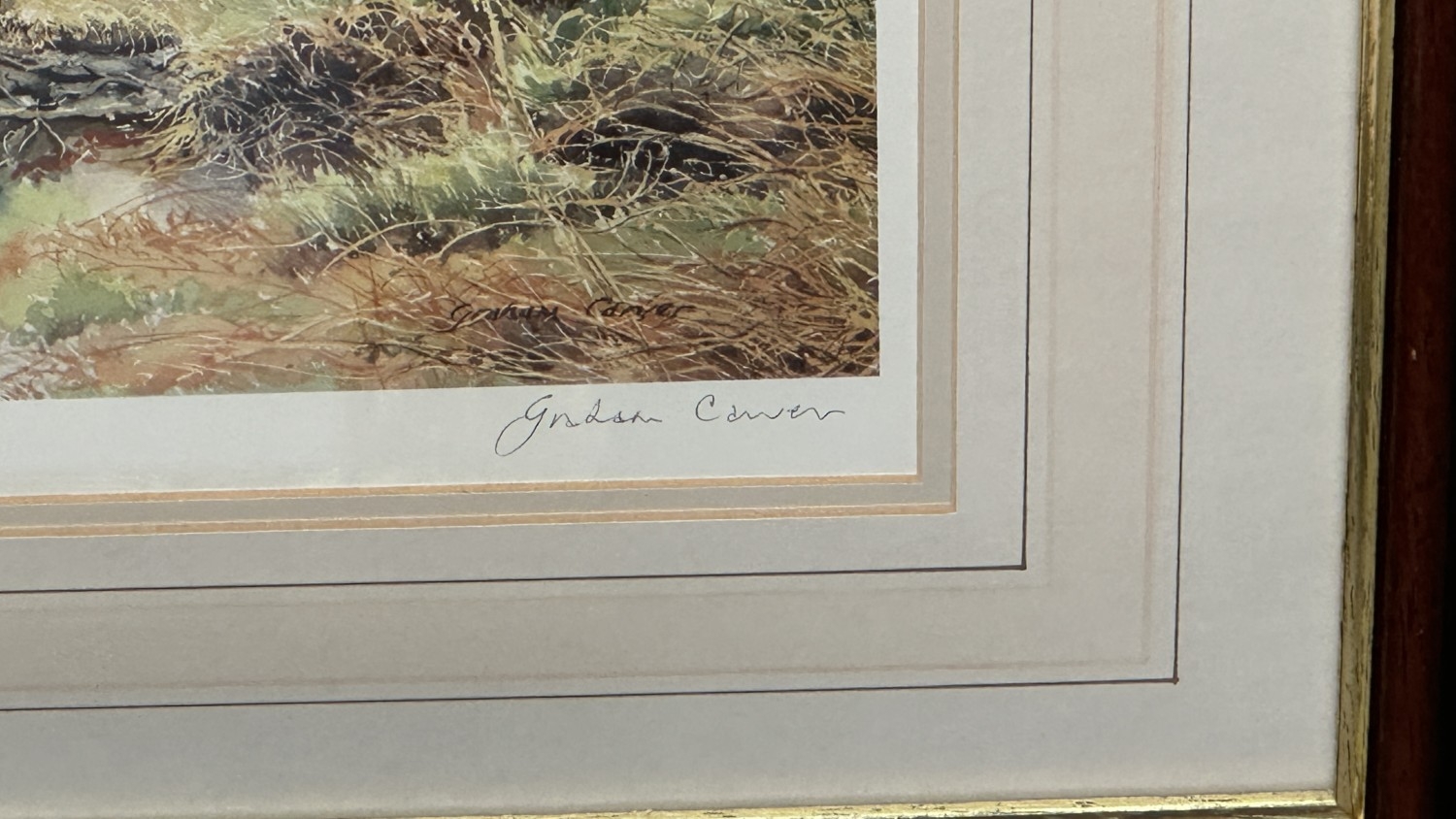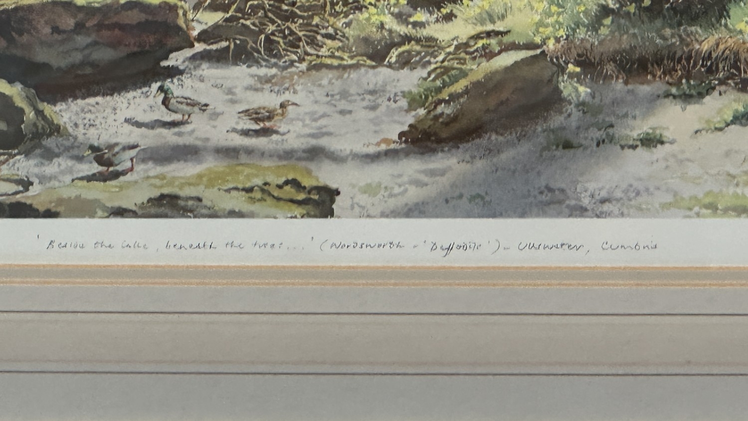 Two framed pictures, one gilt framed floral still life oil on canvas - approx. 40cm high x 49cm wide and one Graham Carver pencil signed limited edition 28/450 print titled 'Beside the lake, beneath the trees...' - approx. 50cm high x 82cm wide
