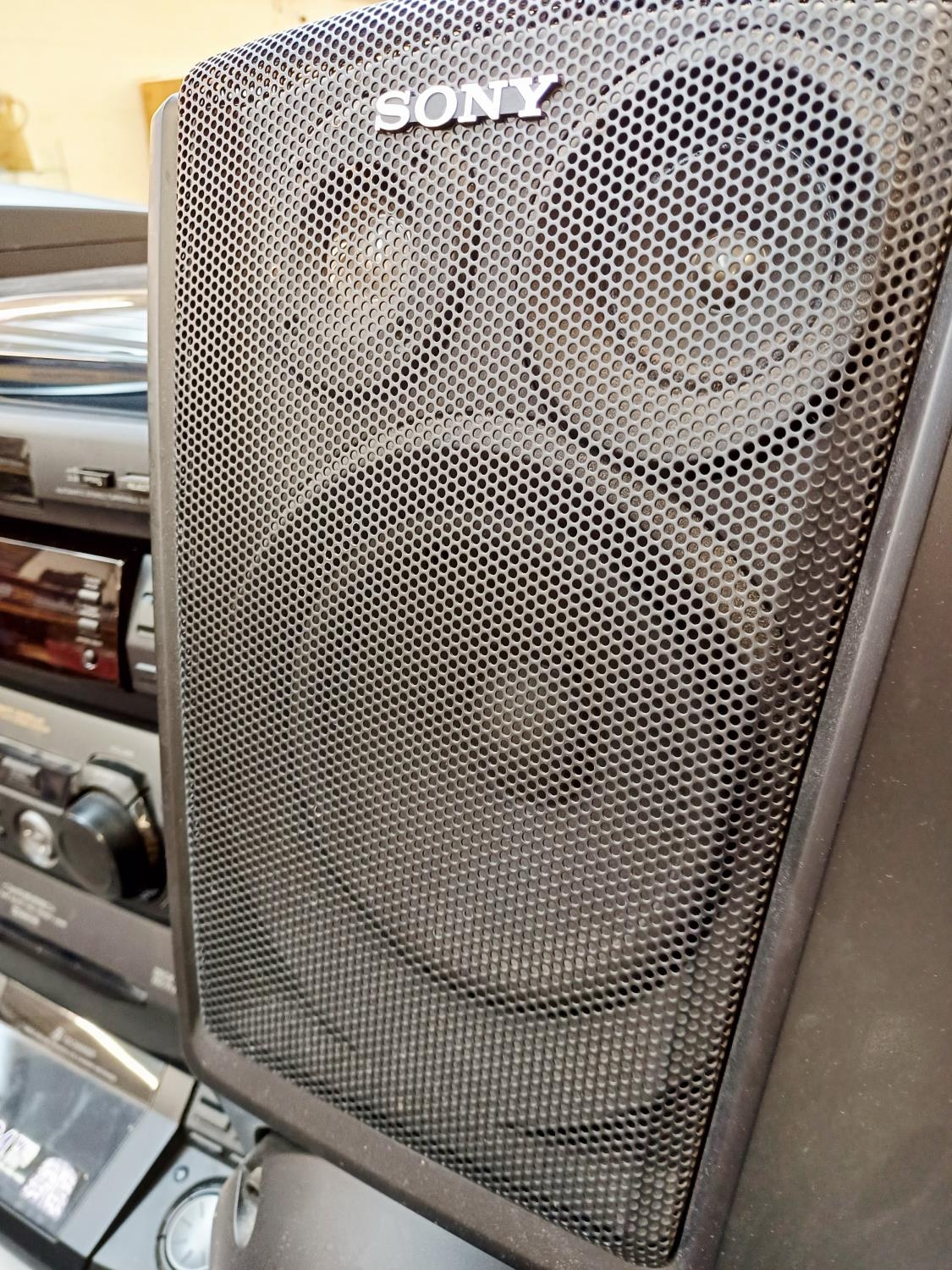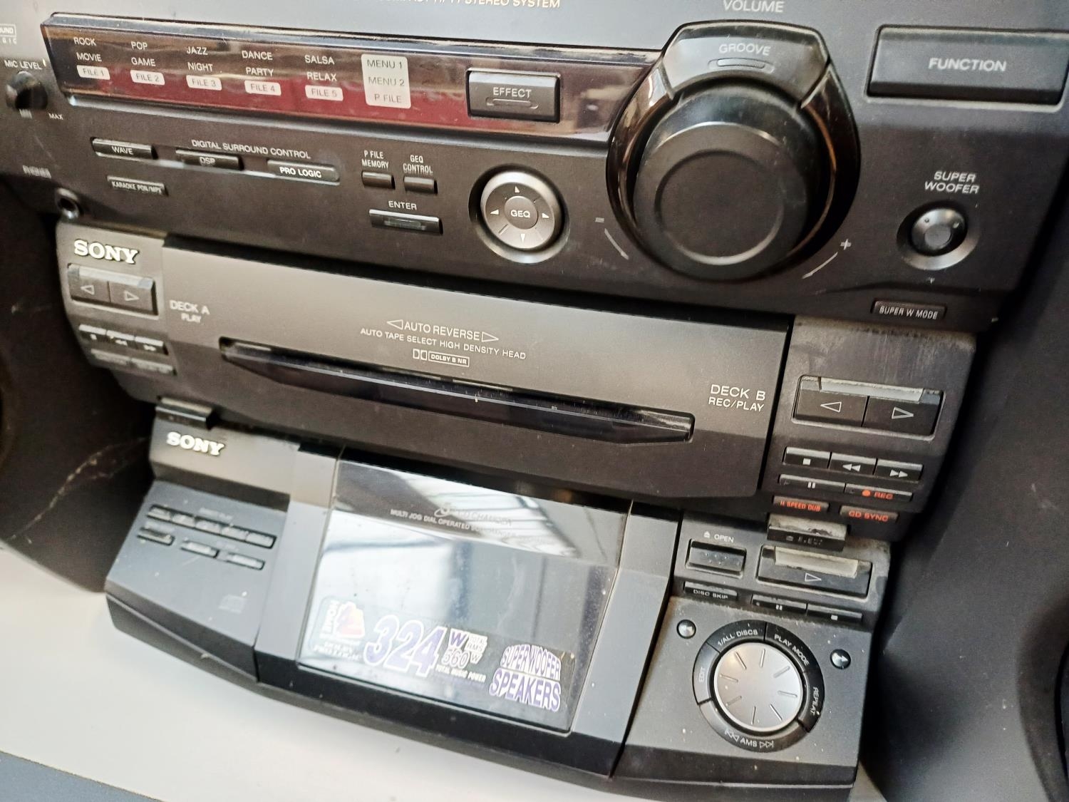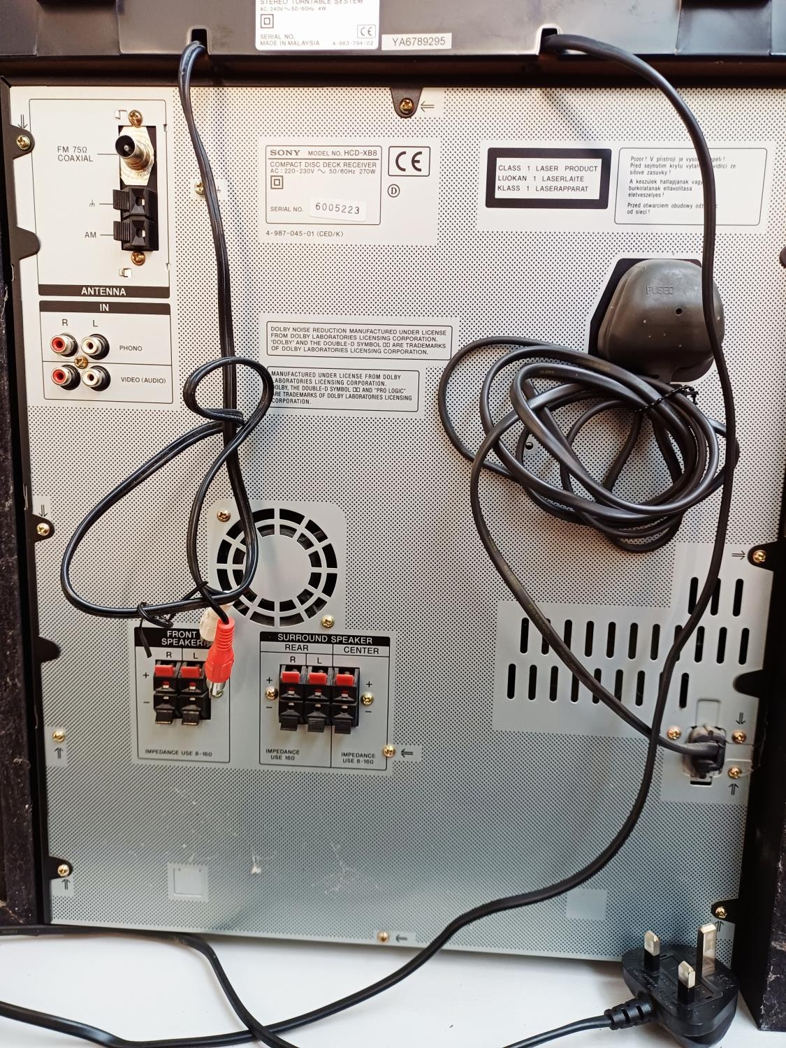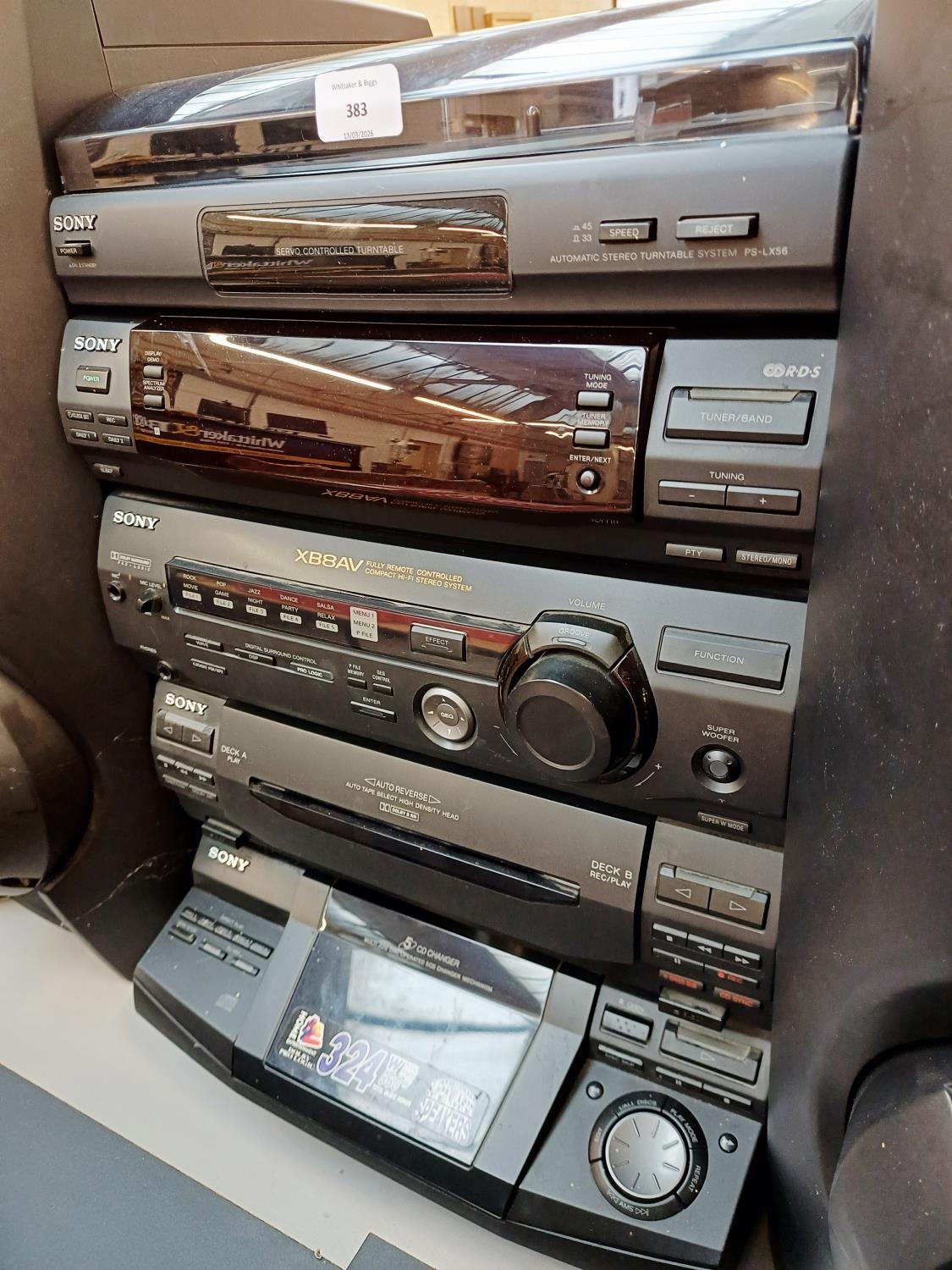 A Sony XB8AV hi-fi system comprising PS-LX56 two-speed turntable, HCD-XB8 CD player/cassette deck/receiver, SS-XB8AV speakers and surround speakers with remote control together with Goodmans multiroom speaker system