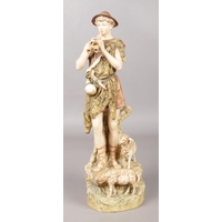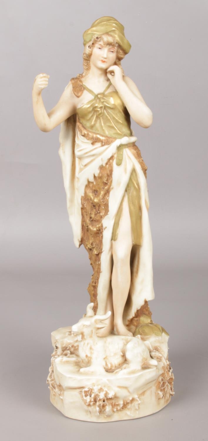 A Royal Dux figure of a shepherdess with a lamb at her feet. 30cm.
