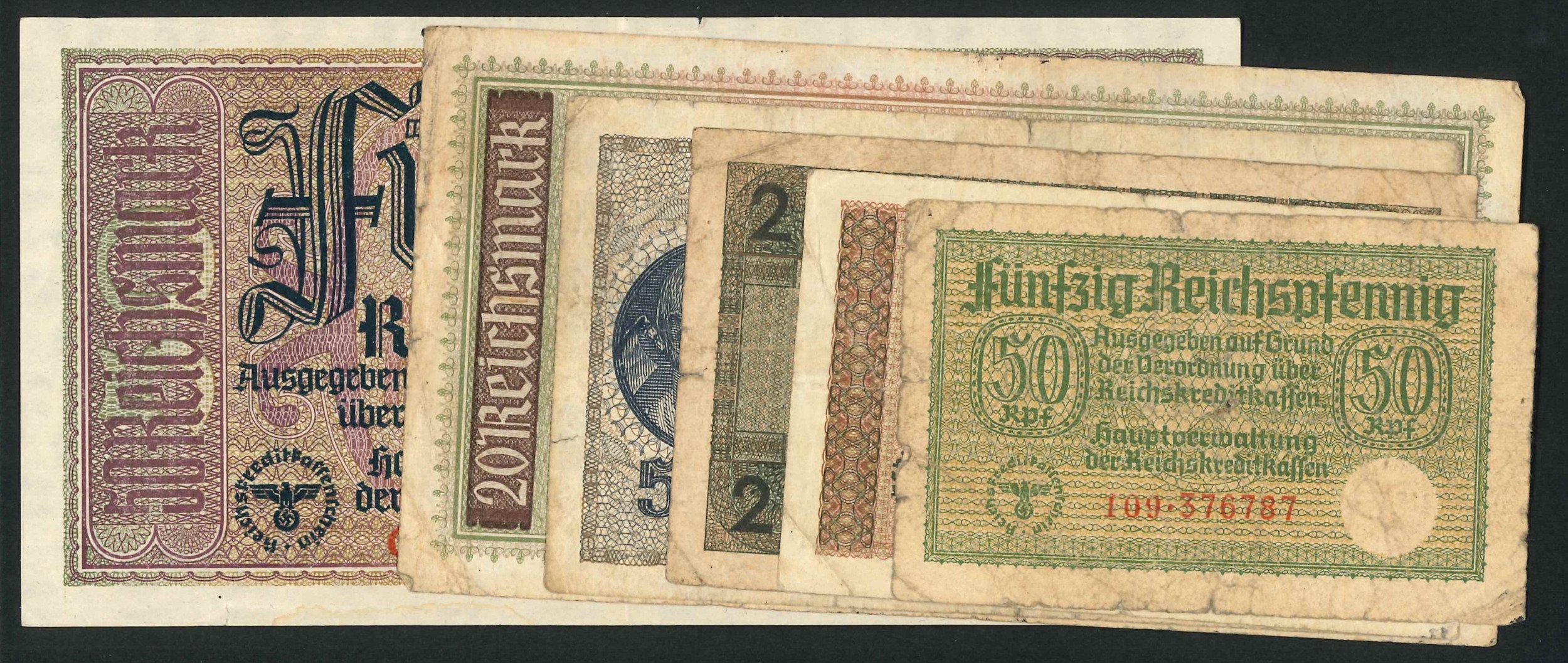 Banknotes; German Occupied Territories; 1940-45 set of six denominations, mixed VG to EF, Krause R135-140.