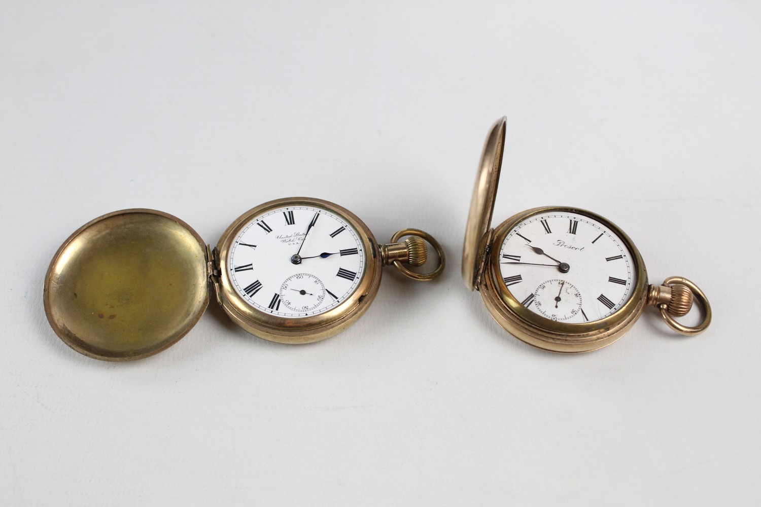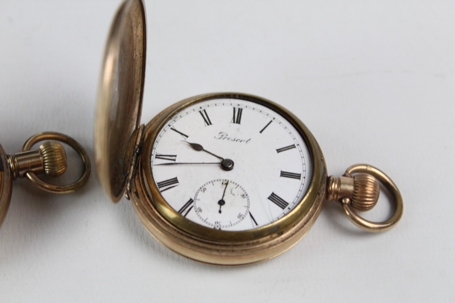 2 x Vintage Gents Rolled Gold Full Hunter POCKET WATCHES Hand-Wind