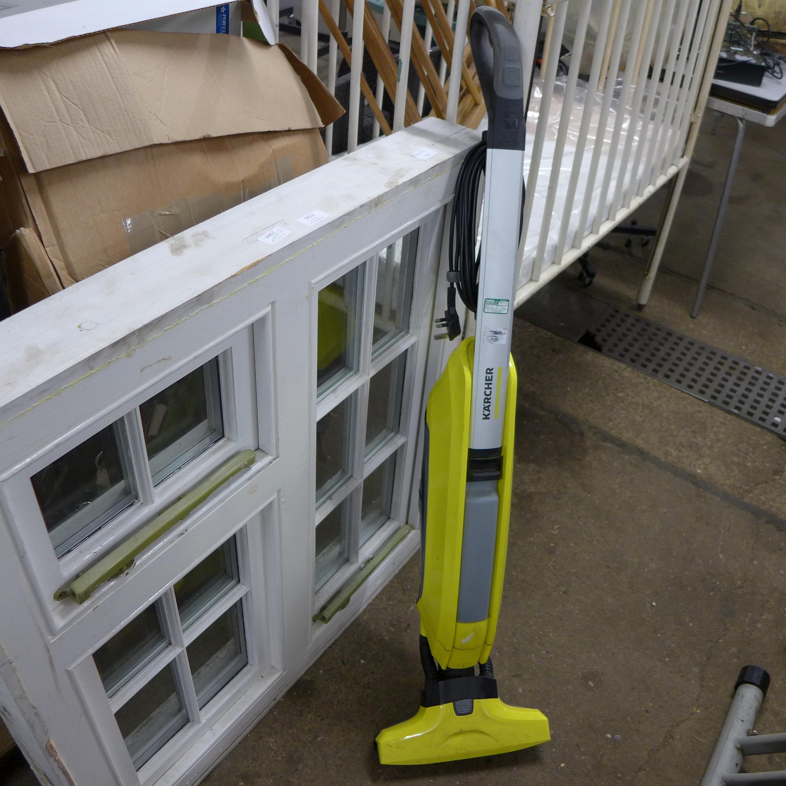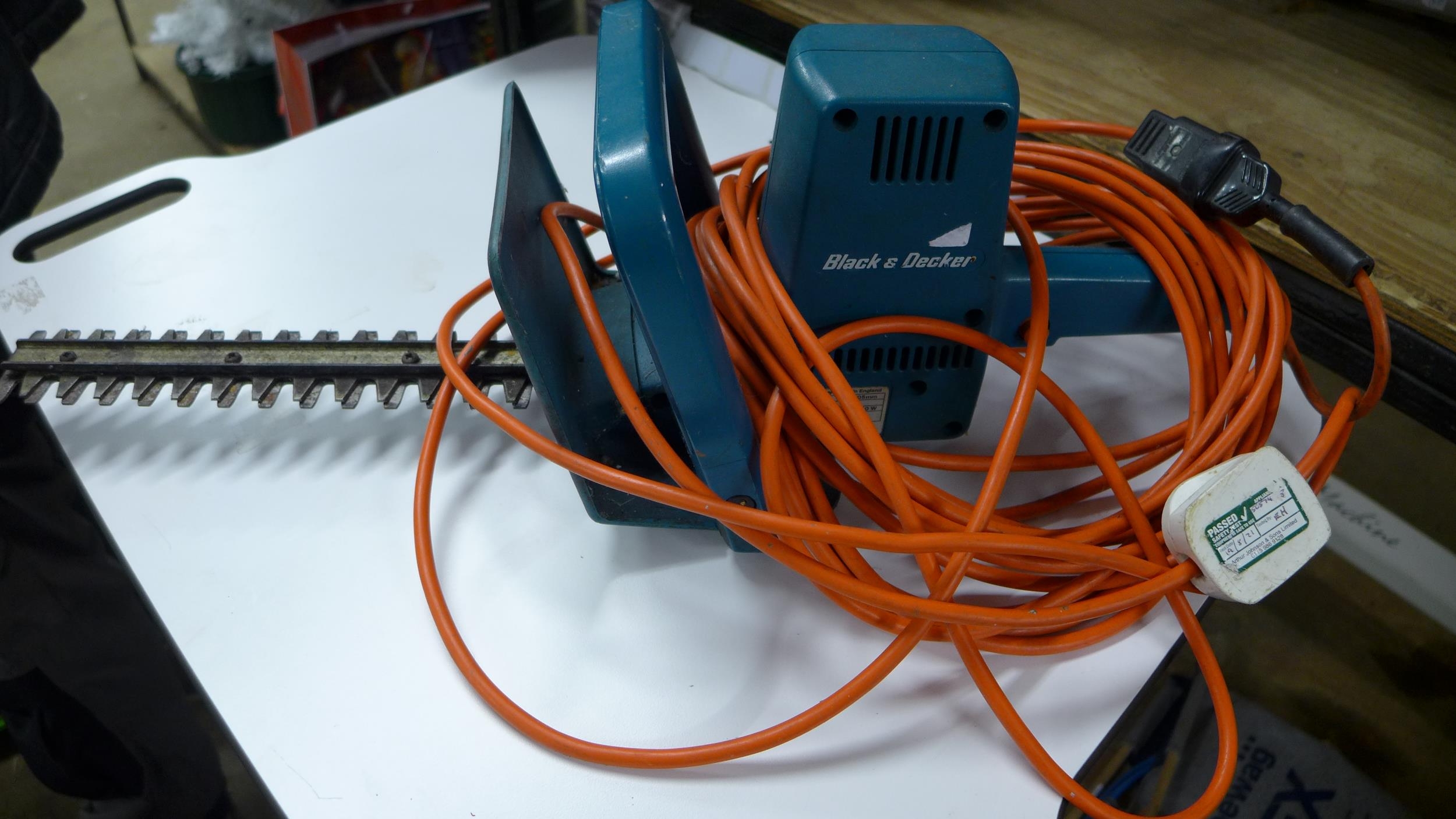 Karcher electric floor cleaner, Black & Decker 240v electric hedgecutter and qty of plates and cups