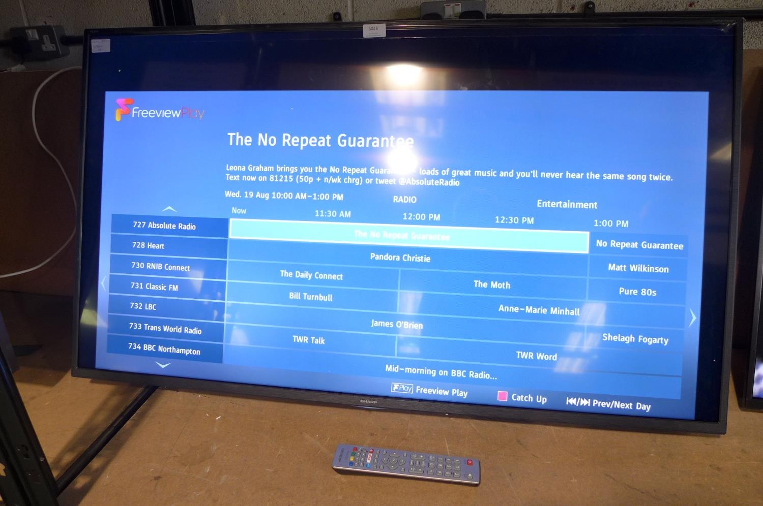 A Sharp 50" 4K UHD TV (2019) (model 50BJ5K) with remote/no stand, RRP £269.99 + VAT * This lot is subject to VAT