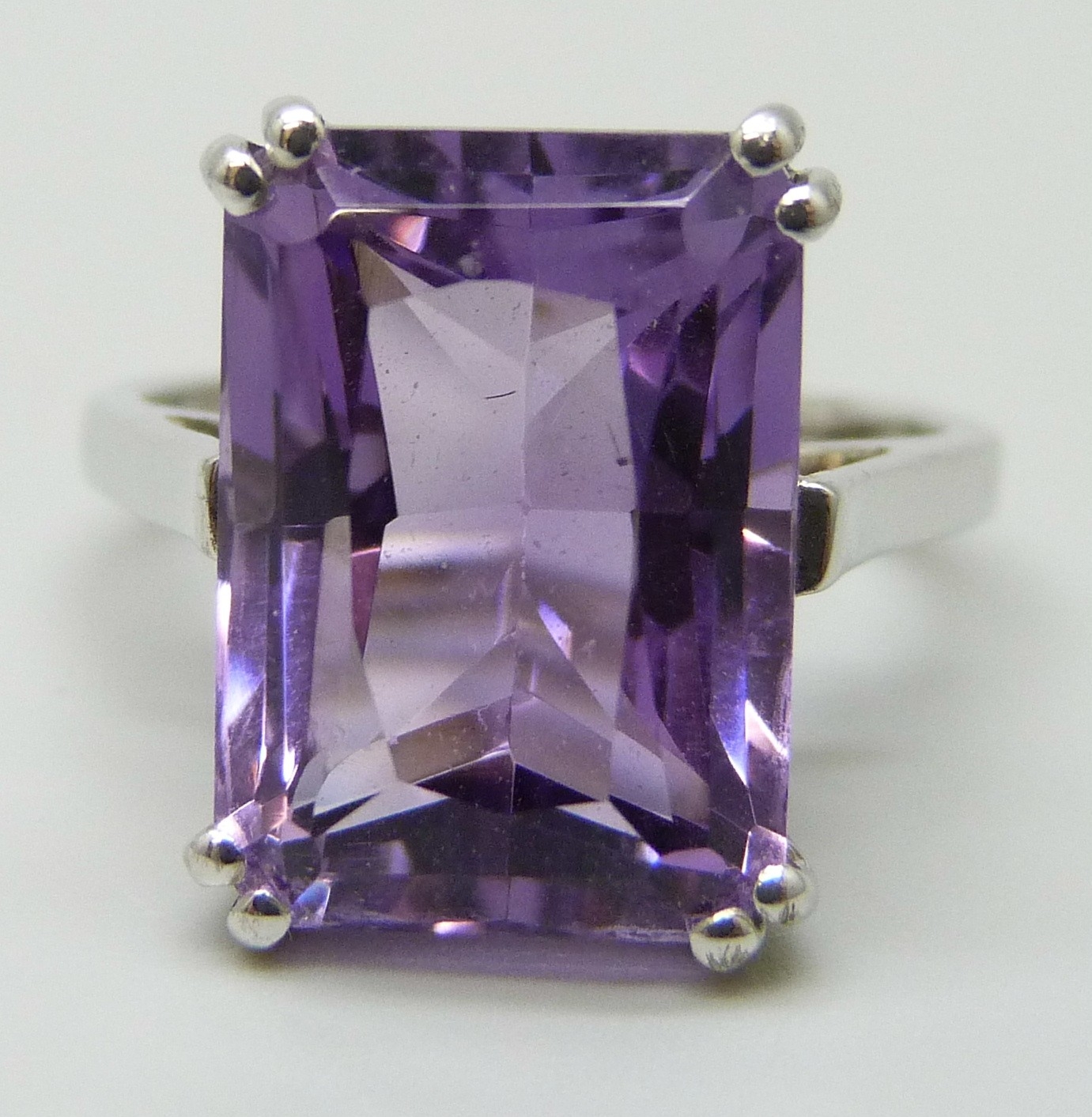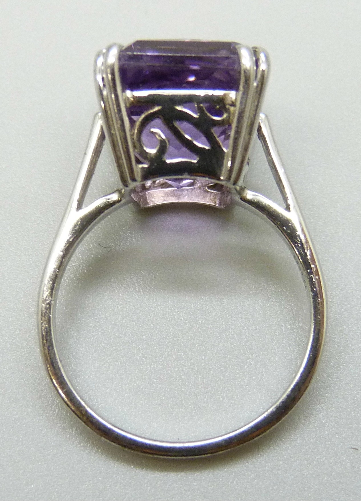 A silver and amethyst cocktail ring, L.5, 1.4cm stone