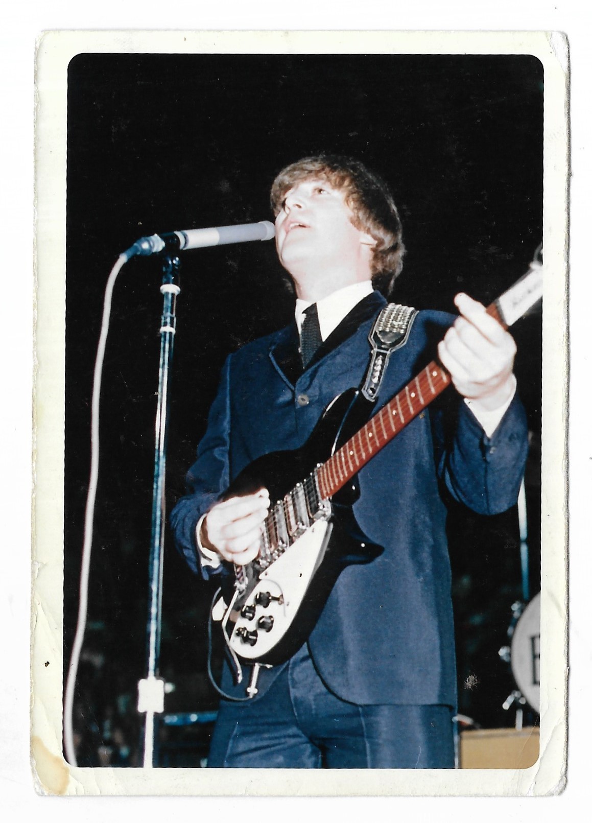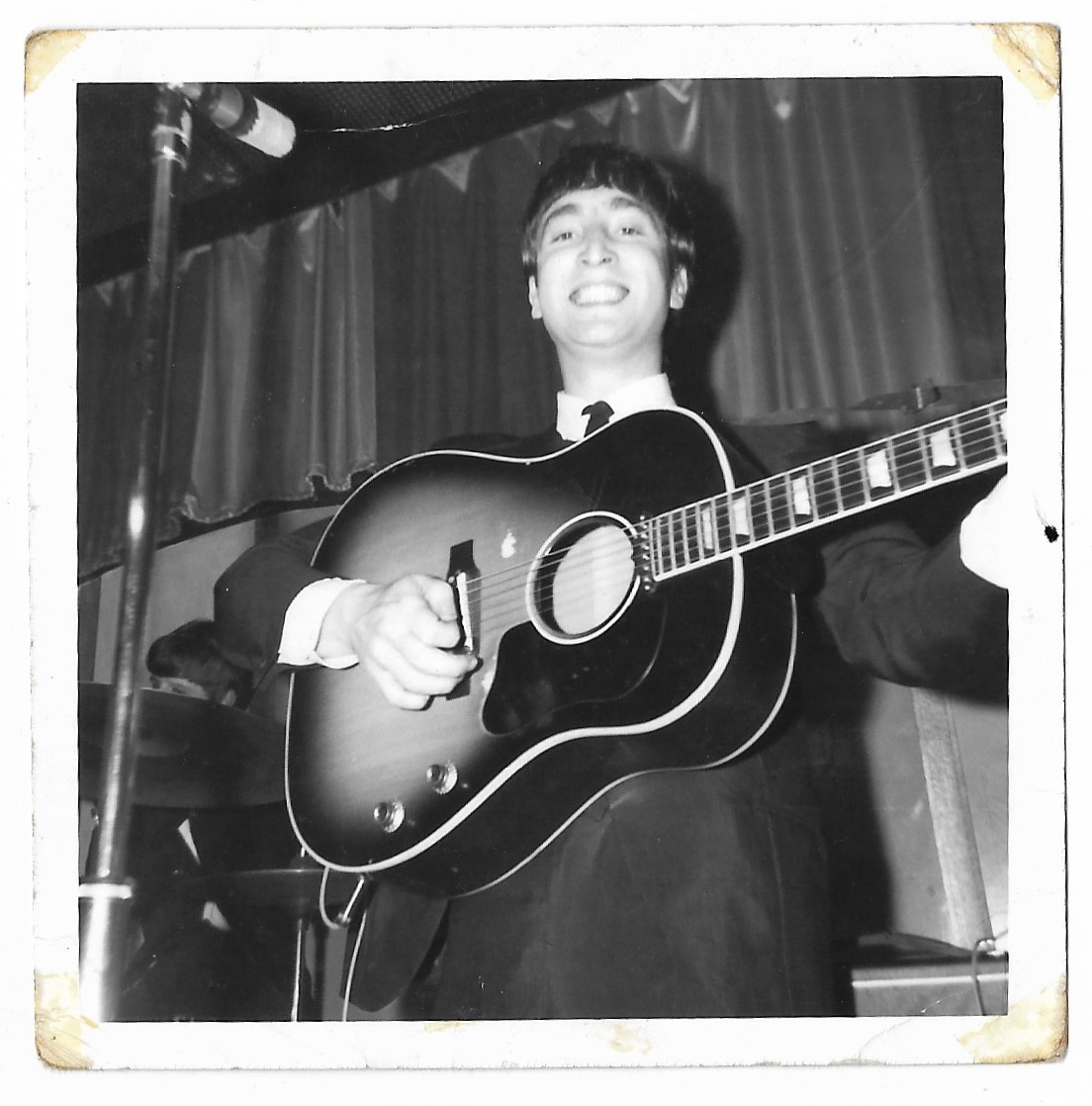 Two fan photographs of John Lennon playing live. These items are formerly the property of Beatles Fan Club secretary, Freda Kelly (2)