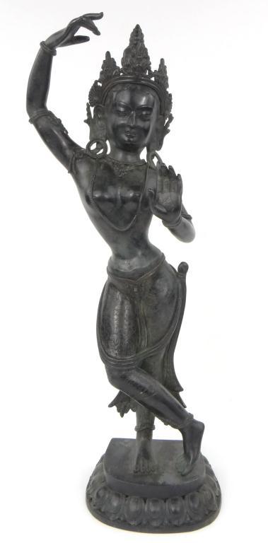 Large Far Eastern patinated bronze figure of a dancer with c...