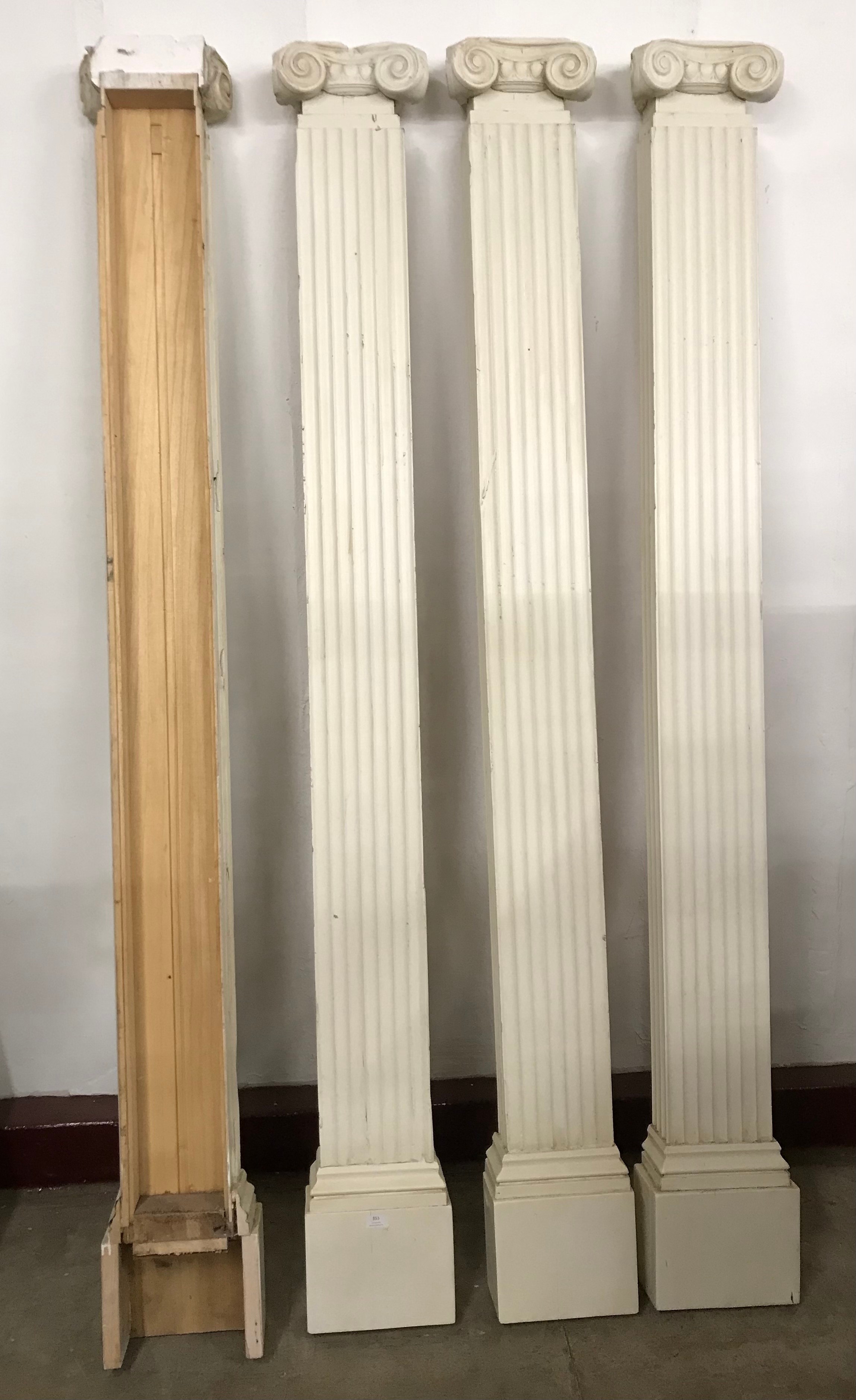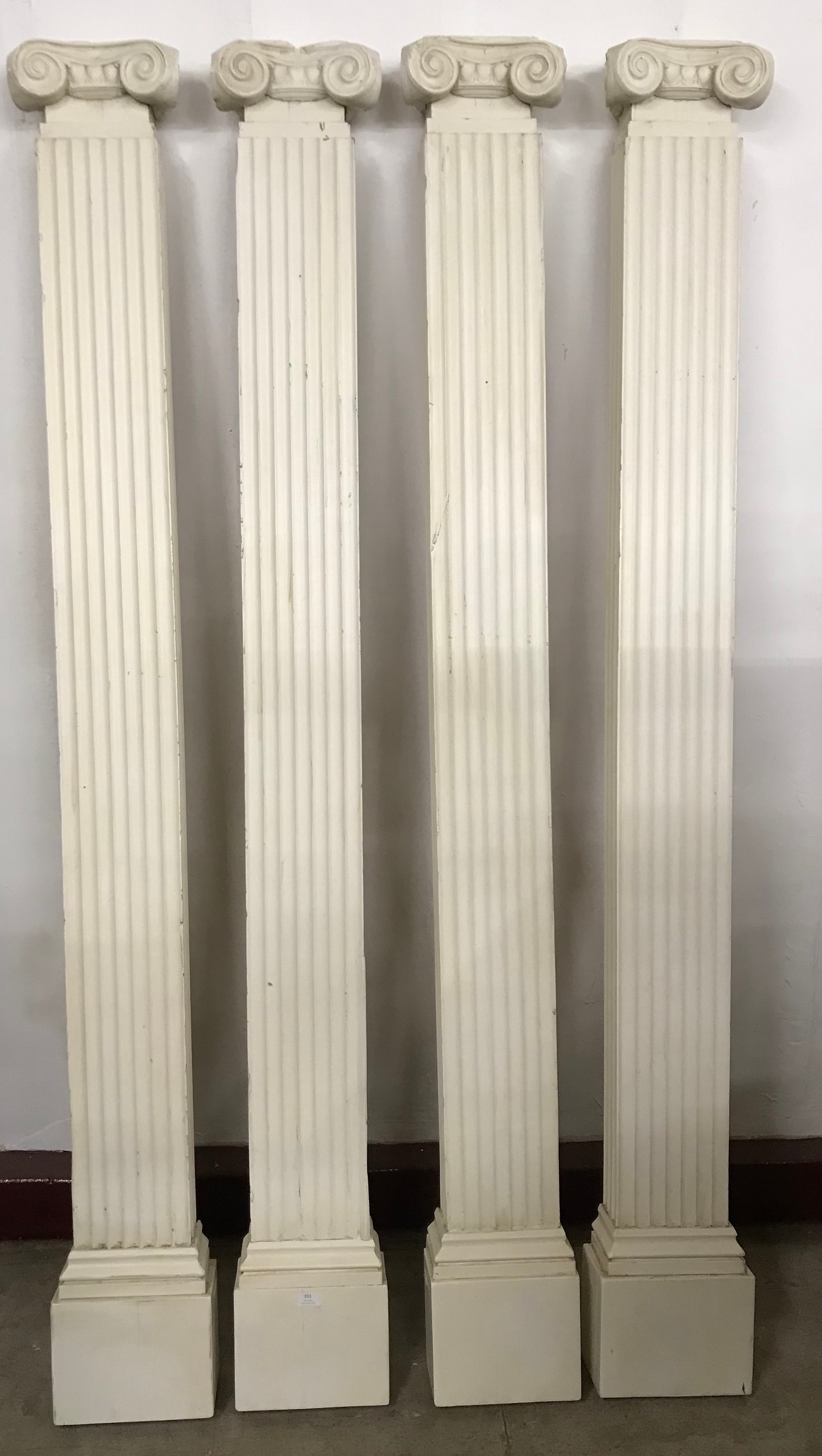 A set of four Greco-Roman style painted hardwood architectural Ionic pilasters