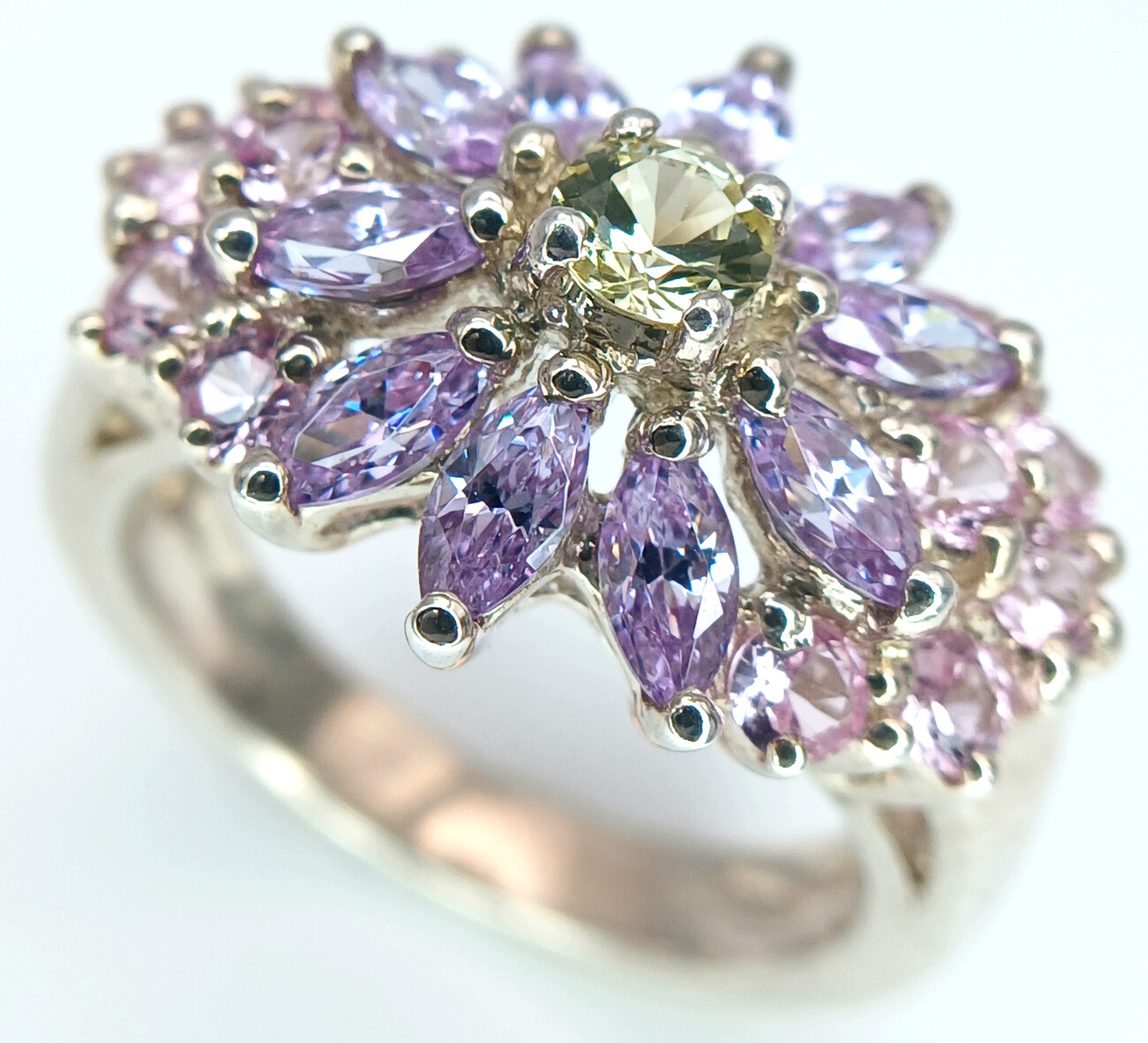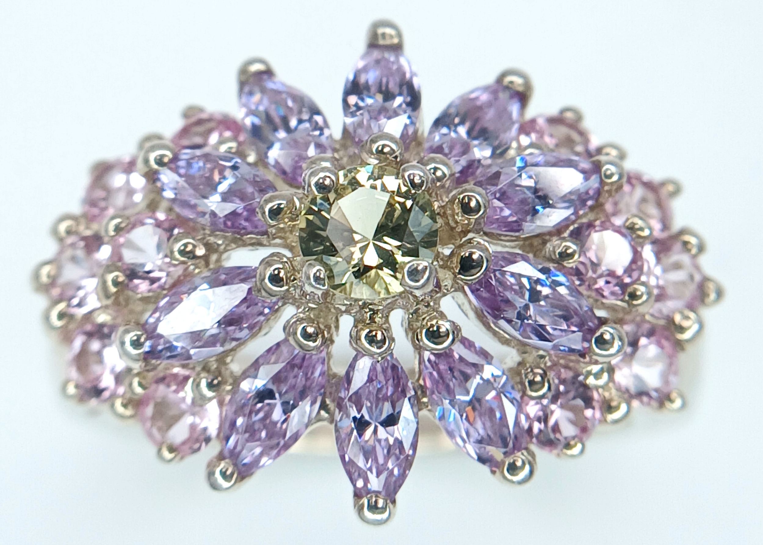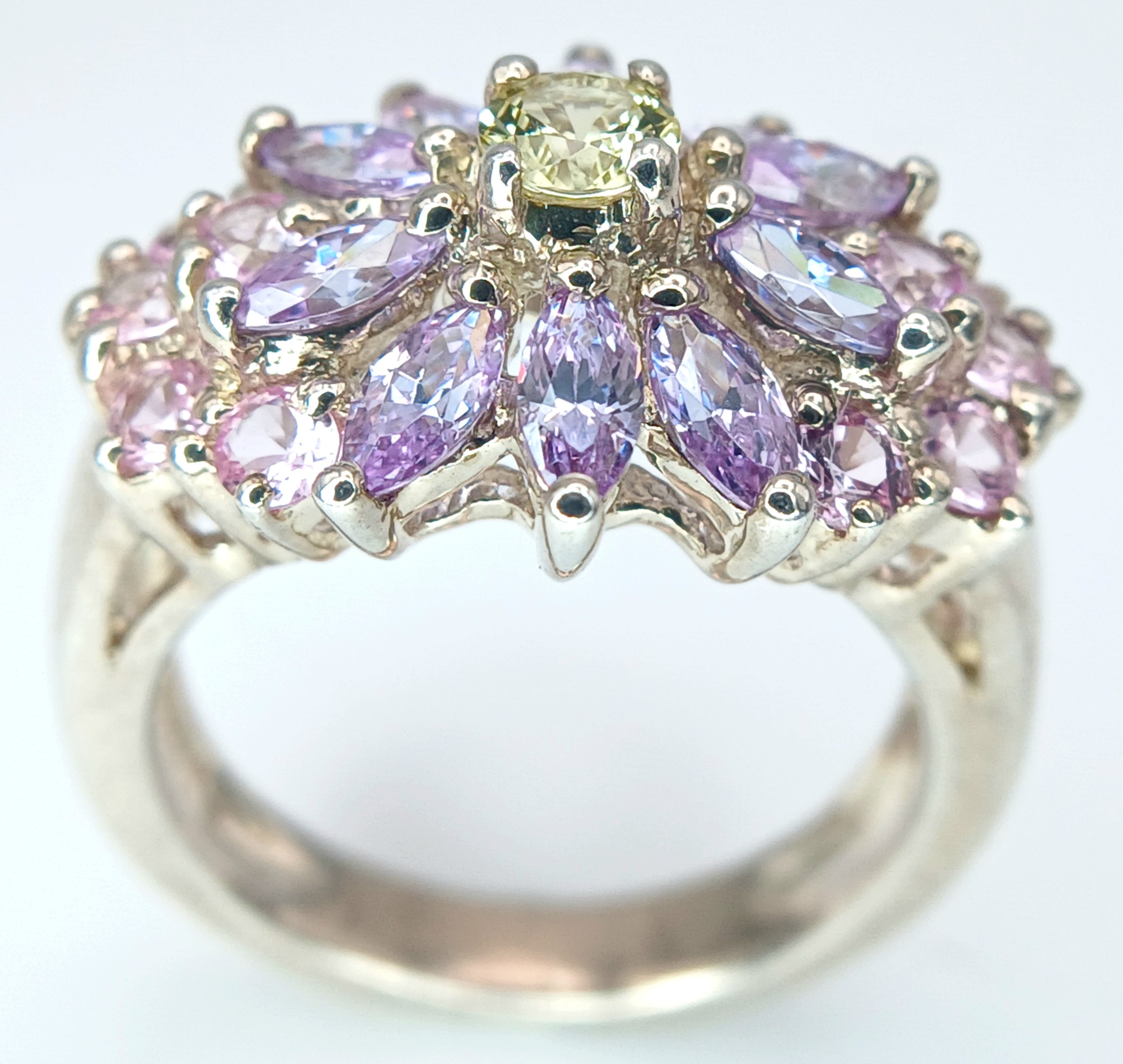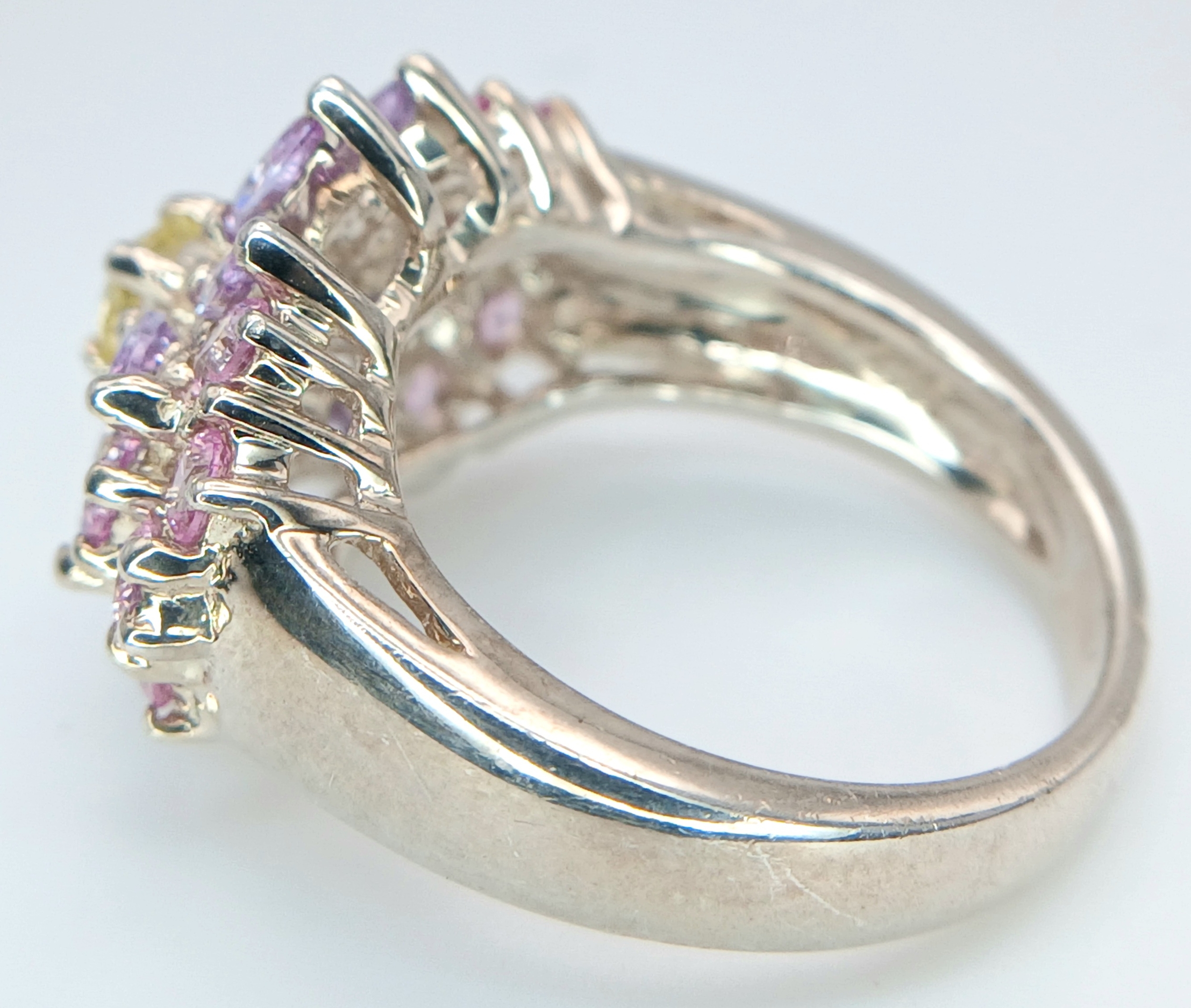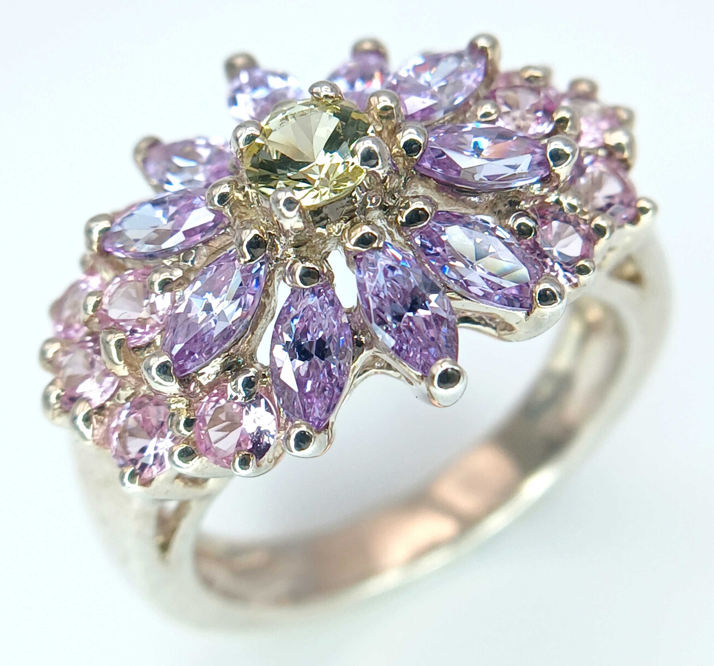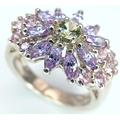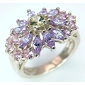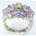 A Pretty Multi-Colour Diamonique Cubic Zirconia Cluster Ring Size N. The Crown measures 2.2 x 1.6cm. Gross weight 6.77 Grams