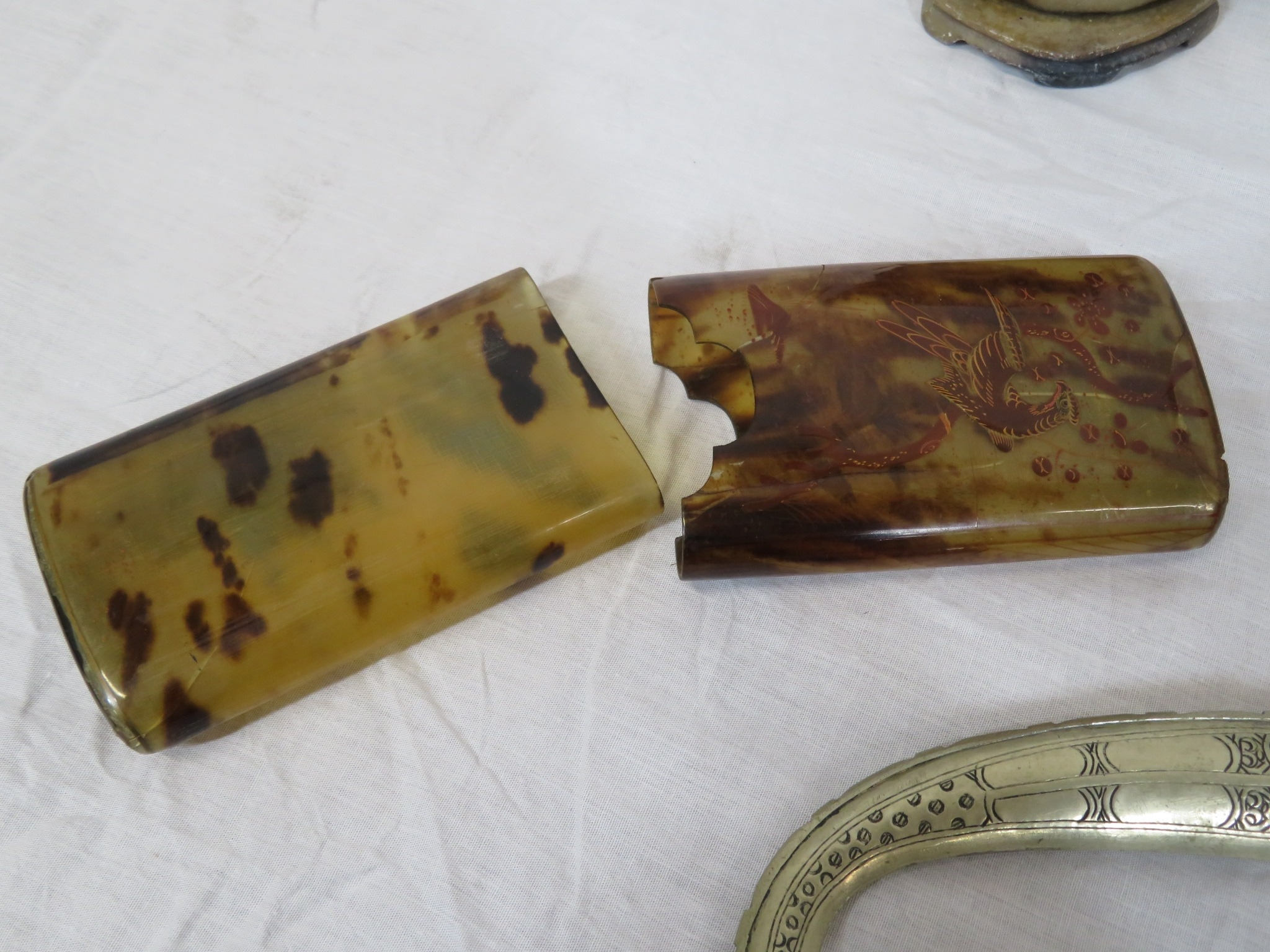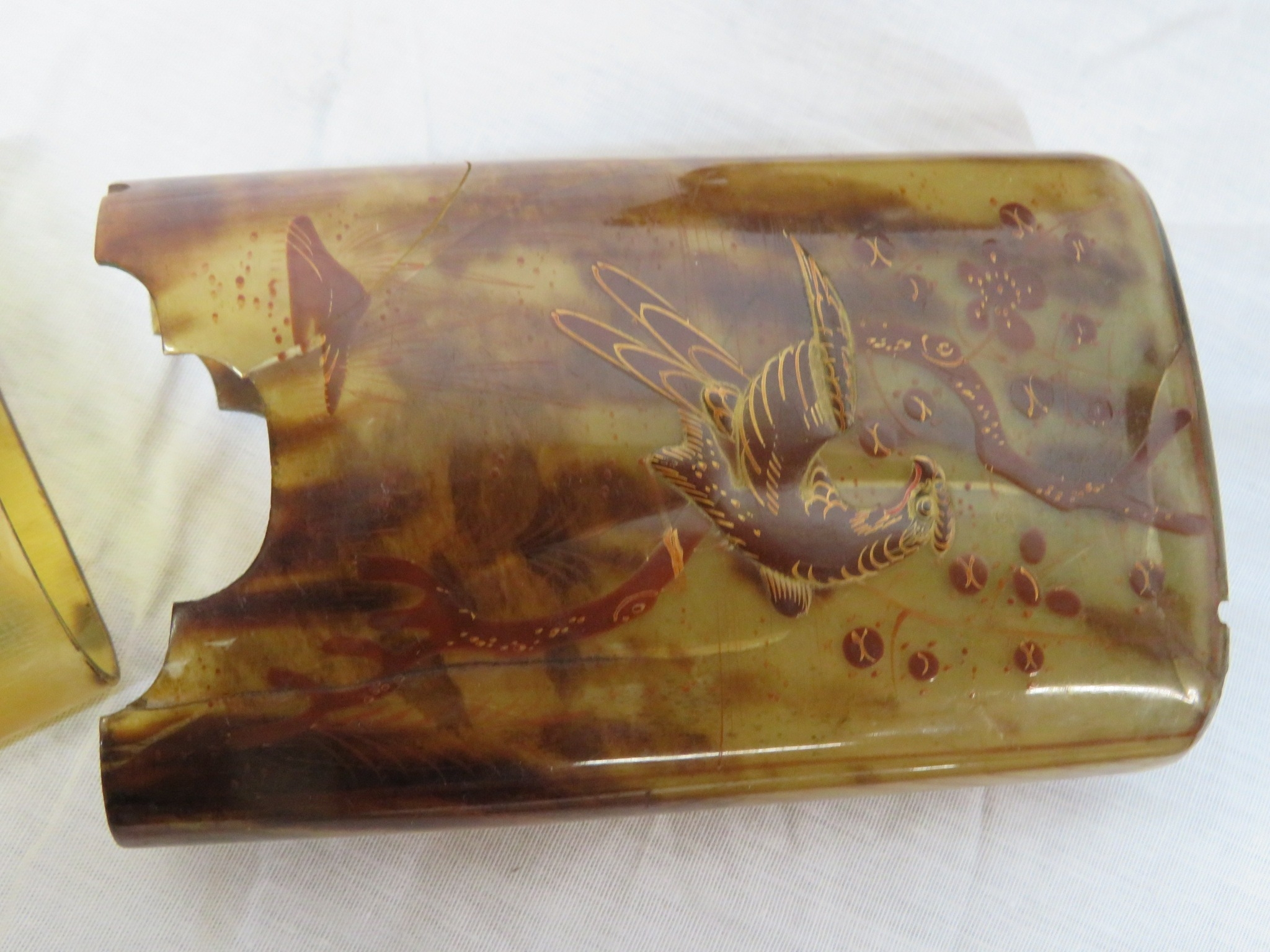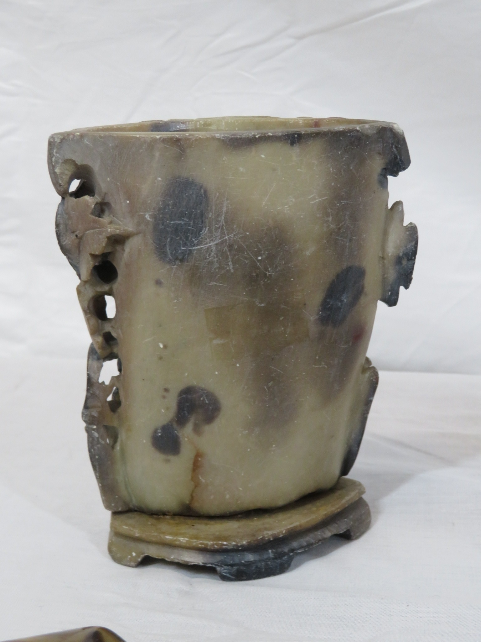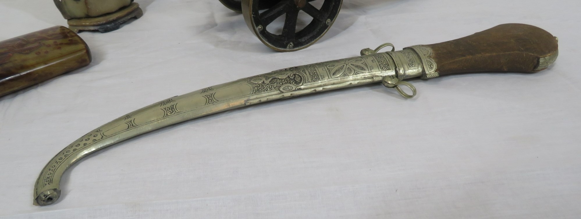 Various items in box - model cannon, vase, etc