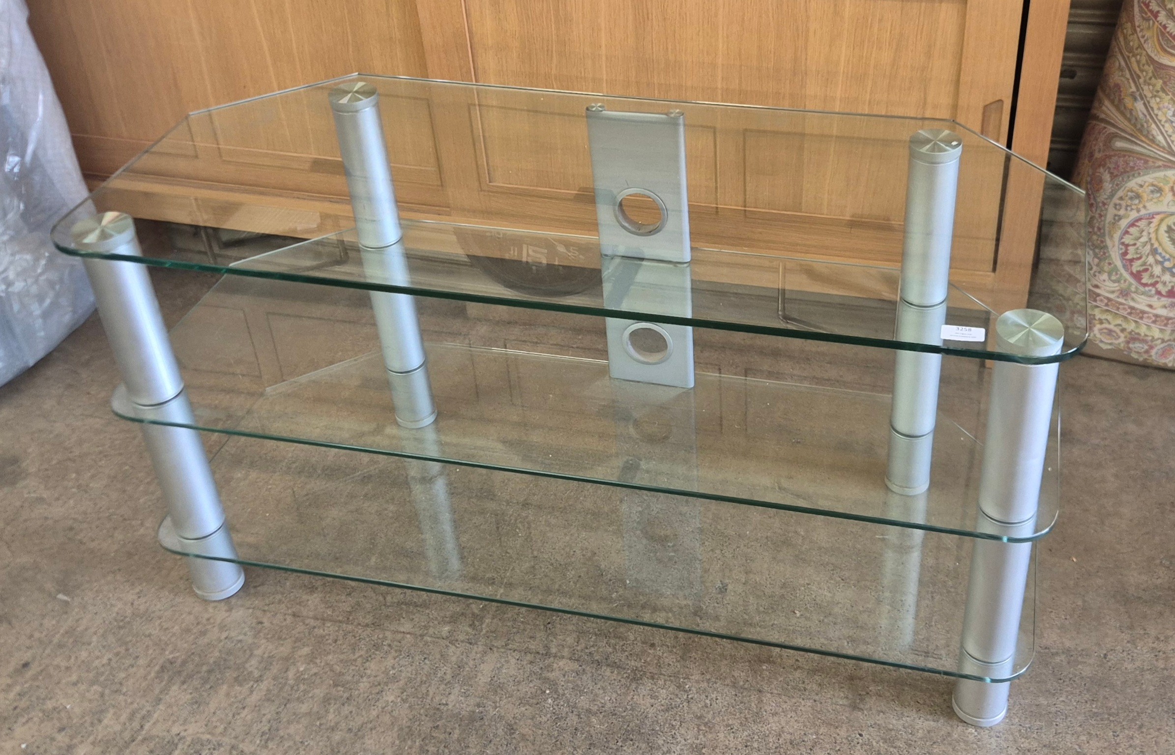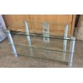 A glass three tier television stand