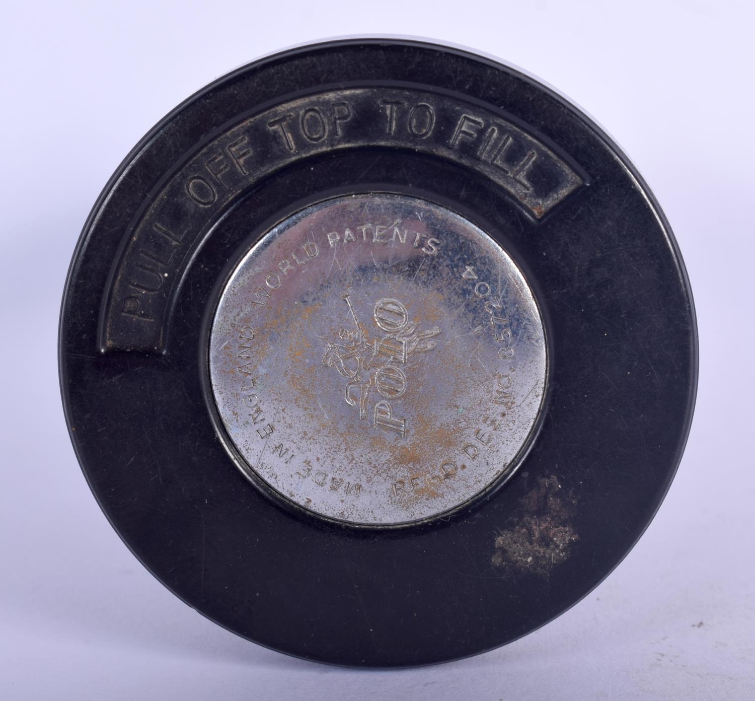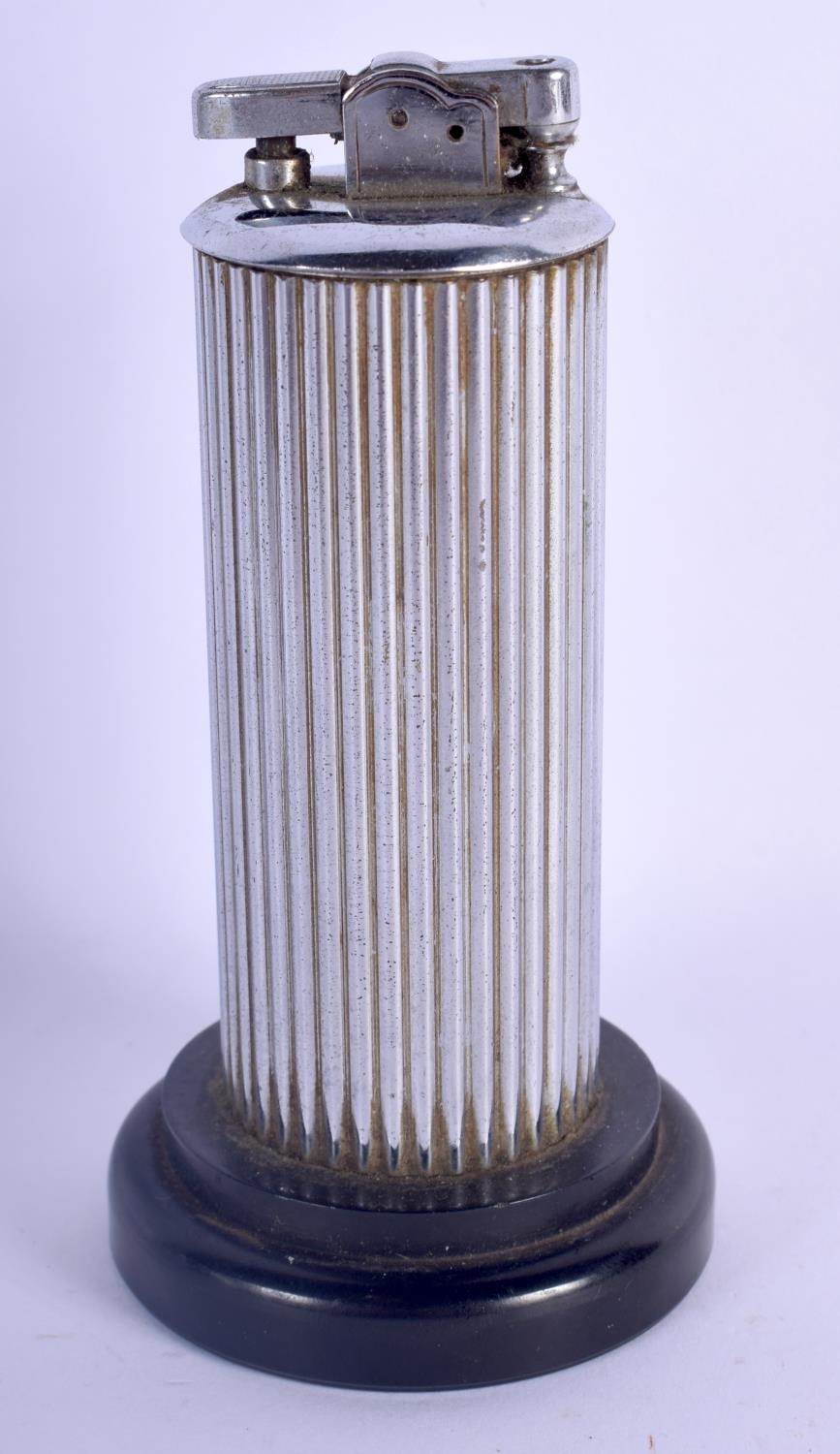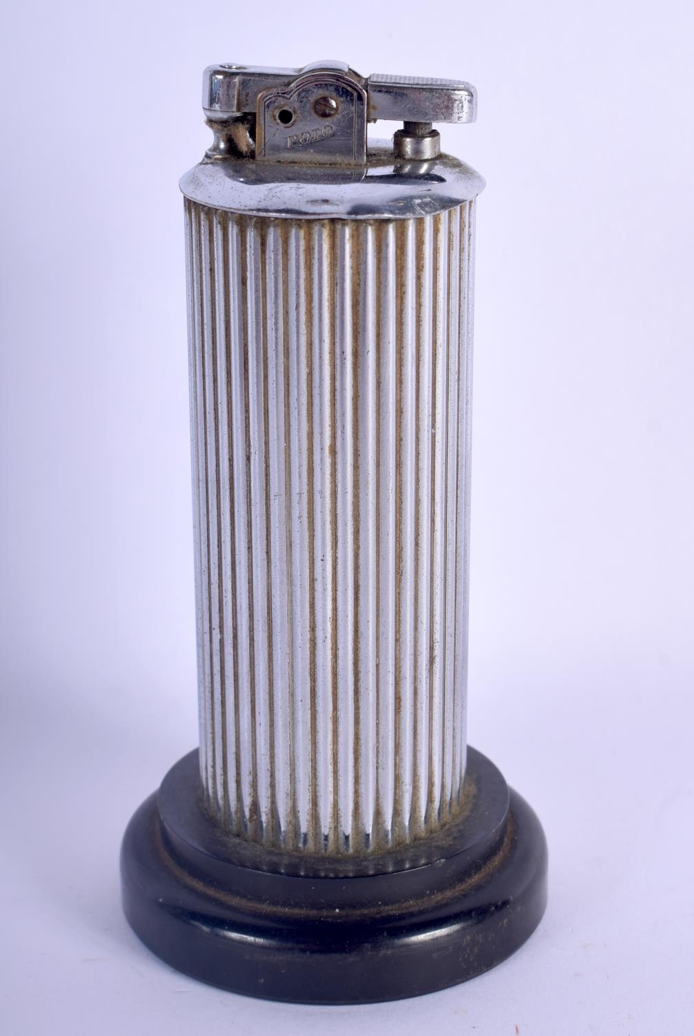 A 1950S SILVER PLATED PATENT POLO GENTLEMANS CLUB LIGHTER with bakelite base. 14 cm high.