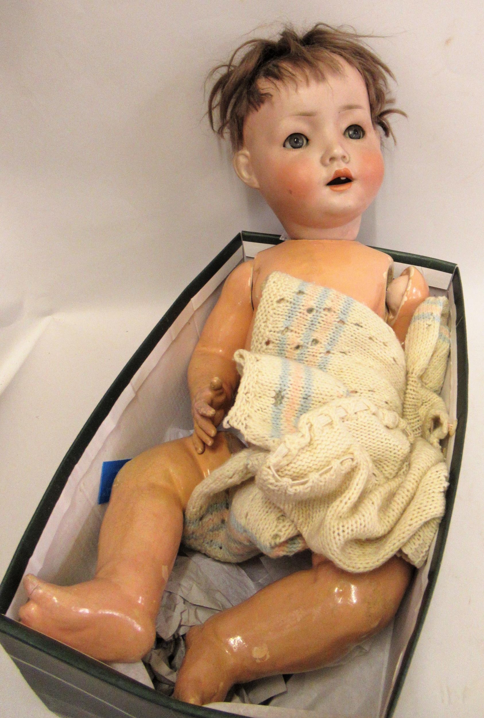Simon and Halbig German bisque headed doll with sleeping eyes and open mouth on a jointed composition body
