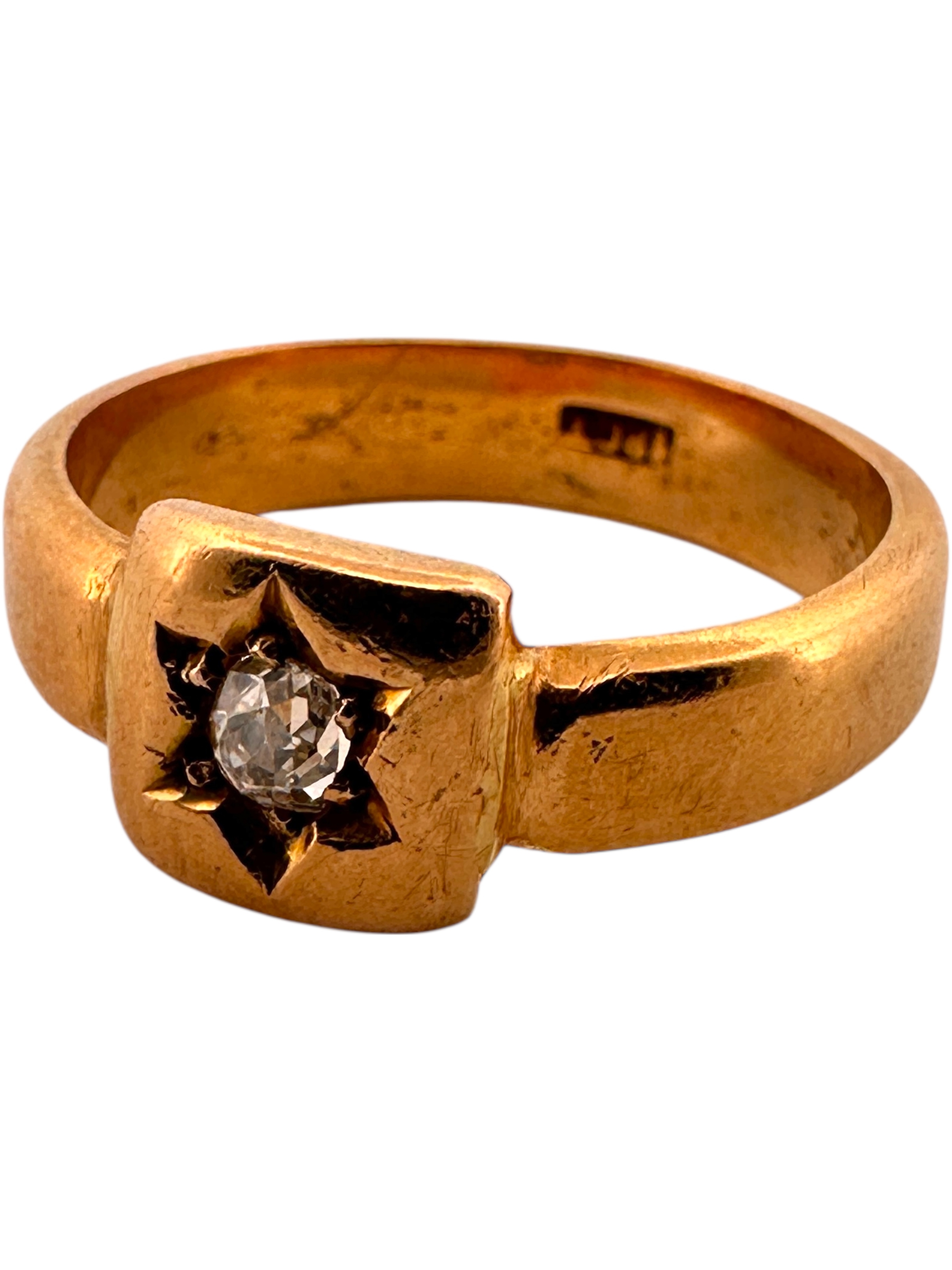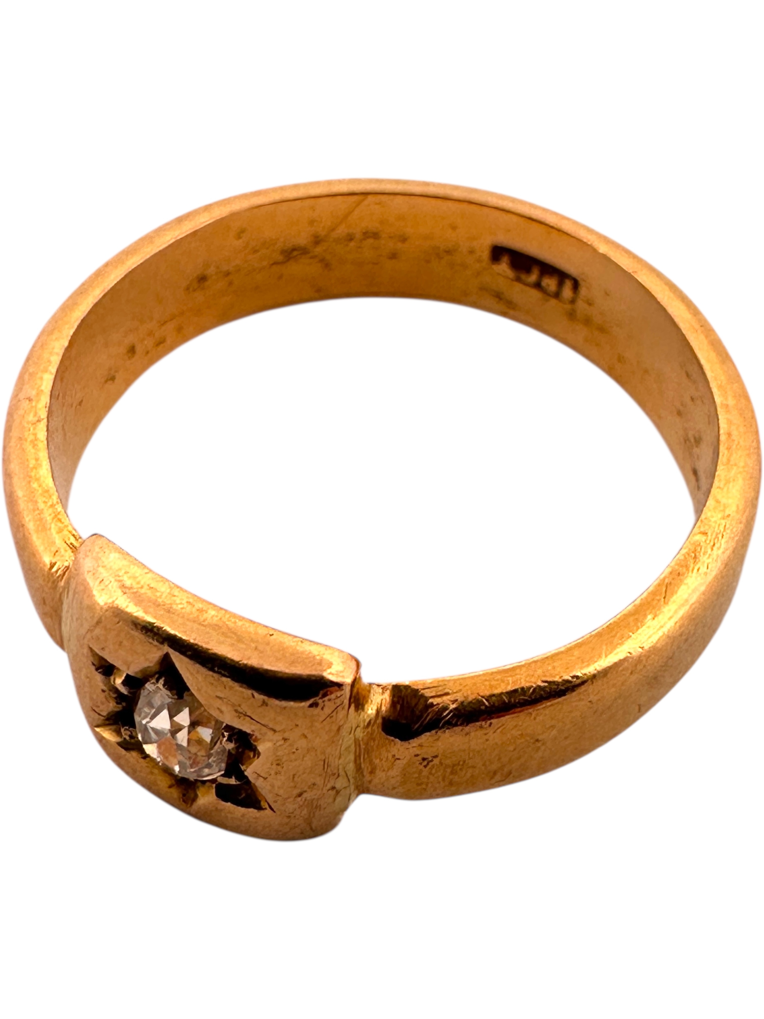 Eighteen Carat Gold Ring set with Single Diamond. Size N. 5.09g