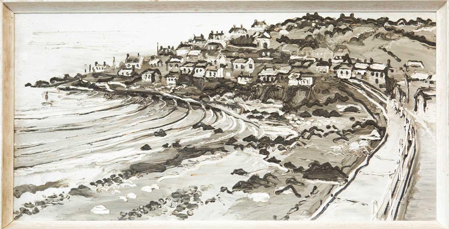 Fred YATES (1922-2008) Coverack, Cornwall Oil on board, 45 x 90cm, 49 x 95cm framed.