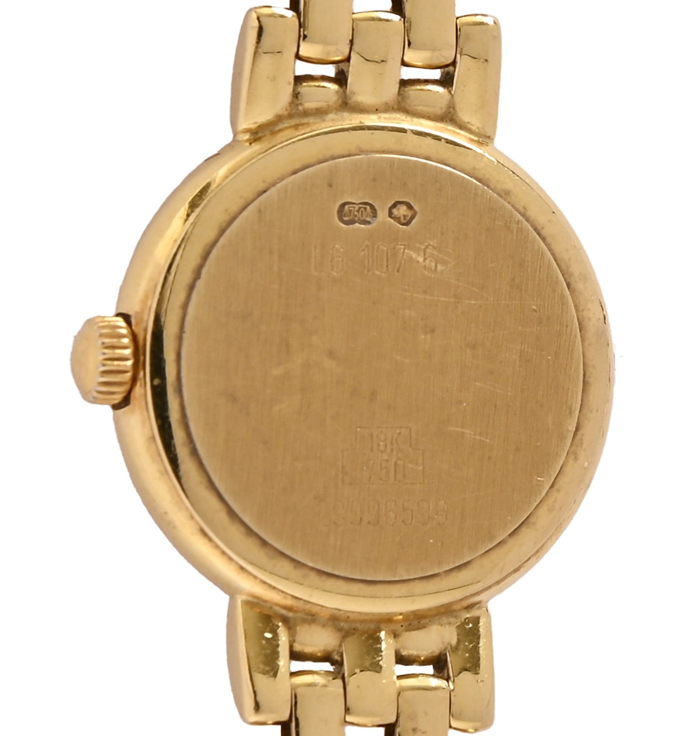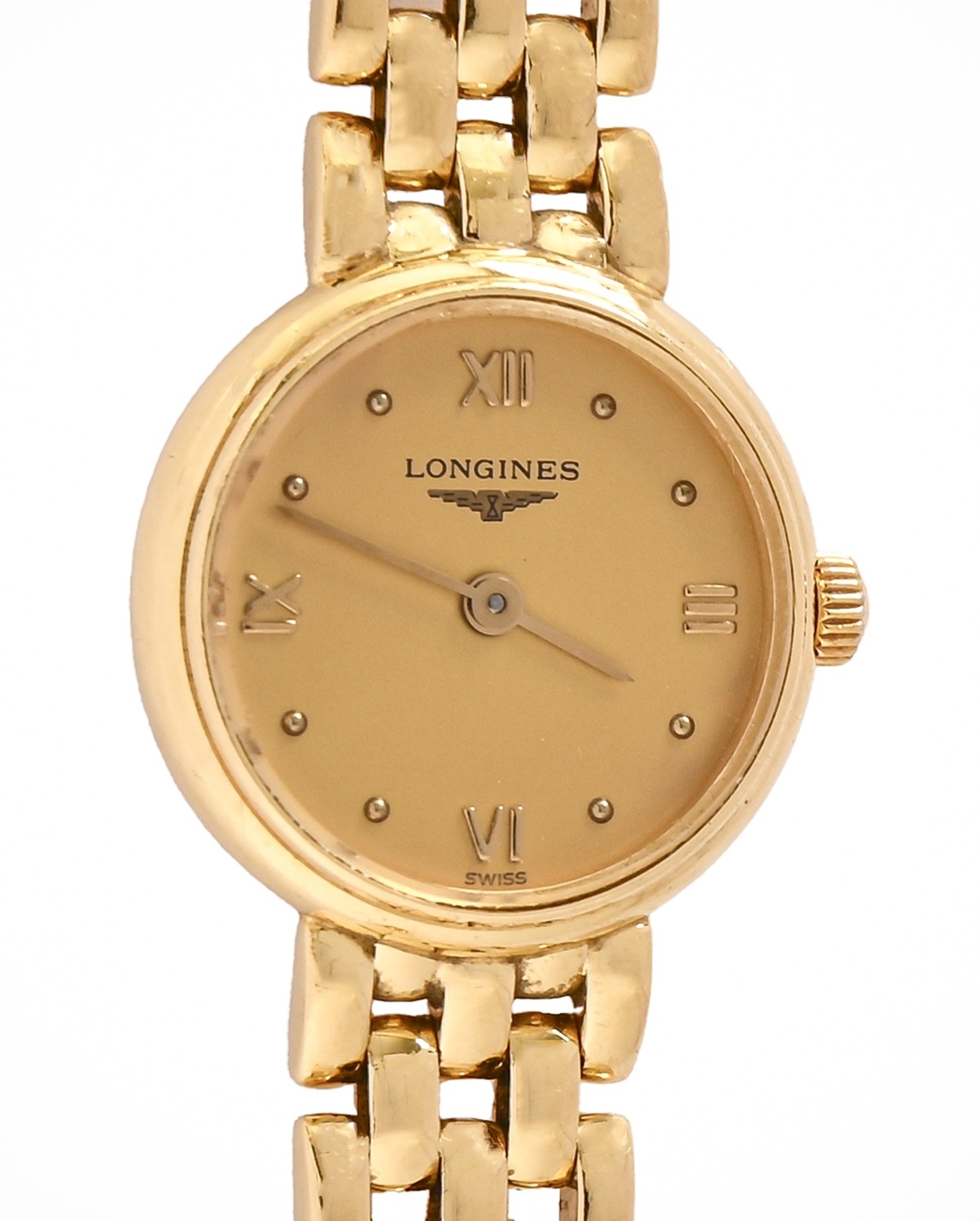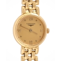 A Longines 18ct gold lady's wristwatch, quartz movement, 19mm diam, on maker's 18ct gold bracelet with clasp and several spare gold bracelet links, 32.7g