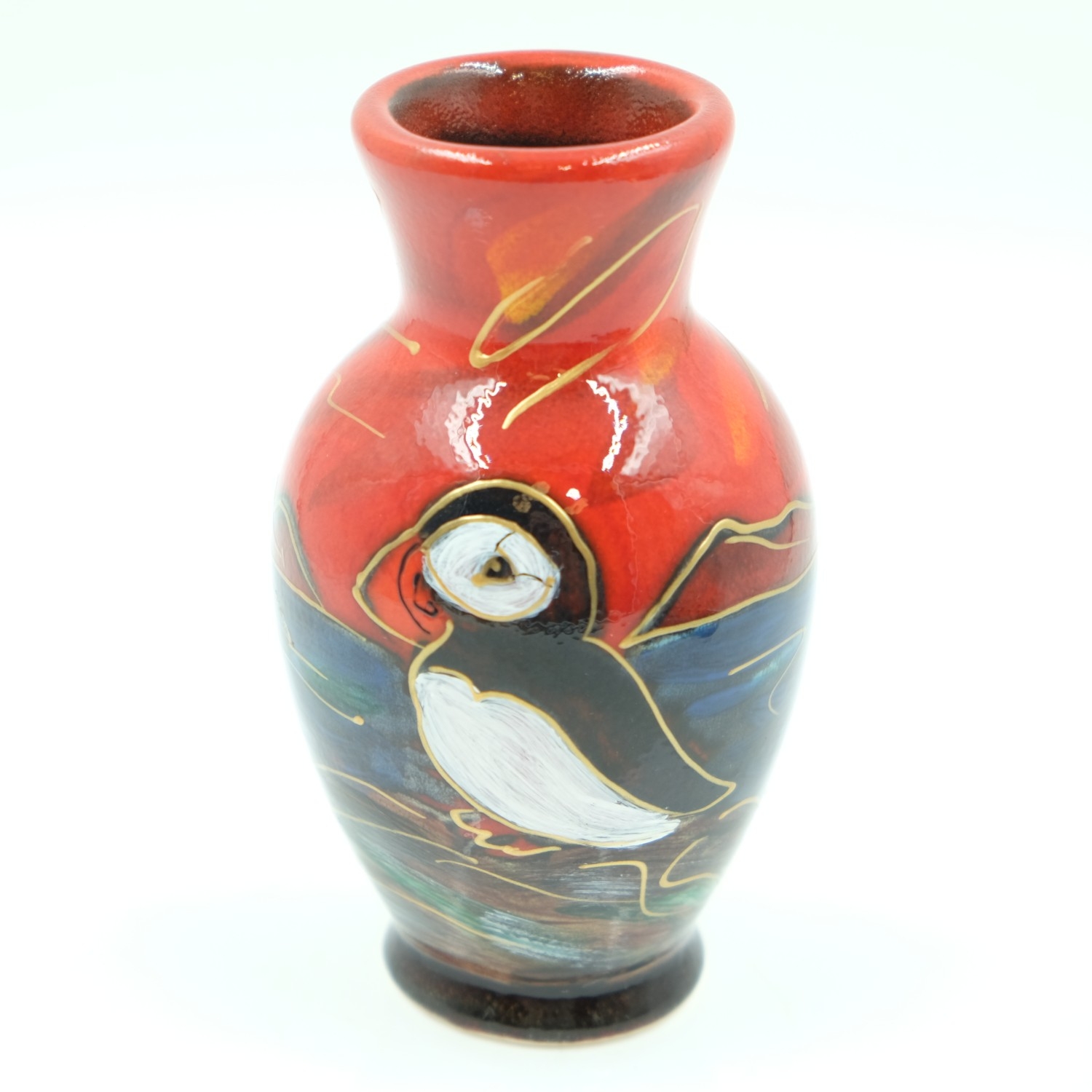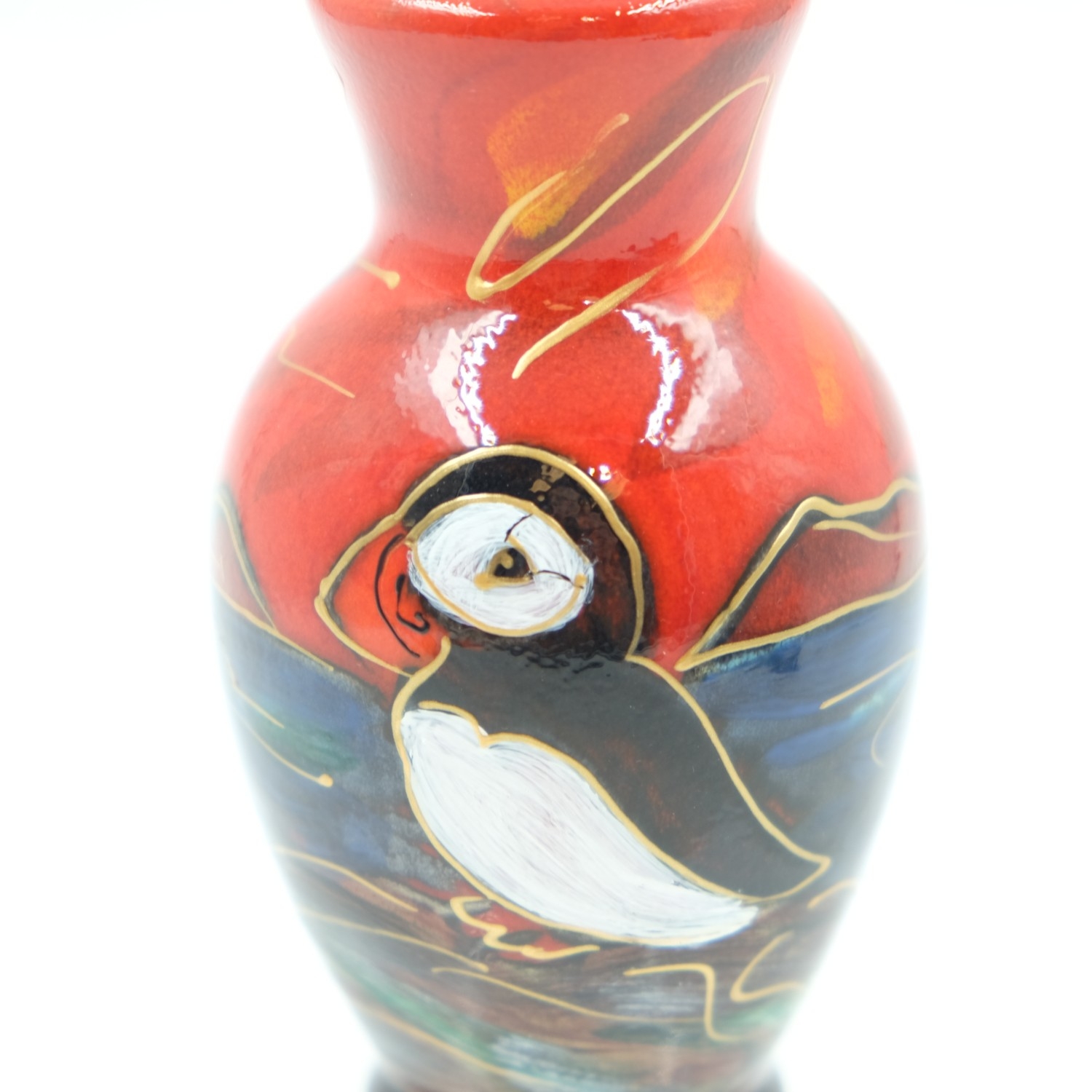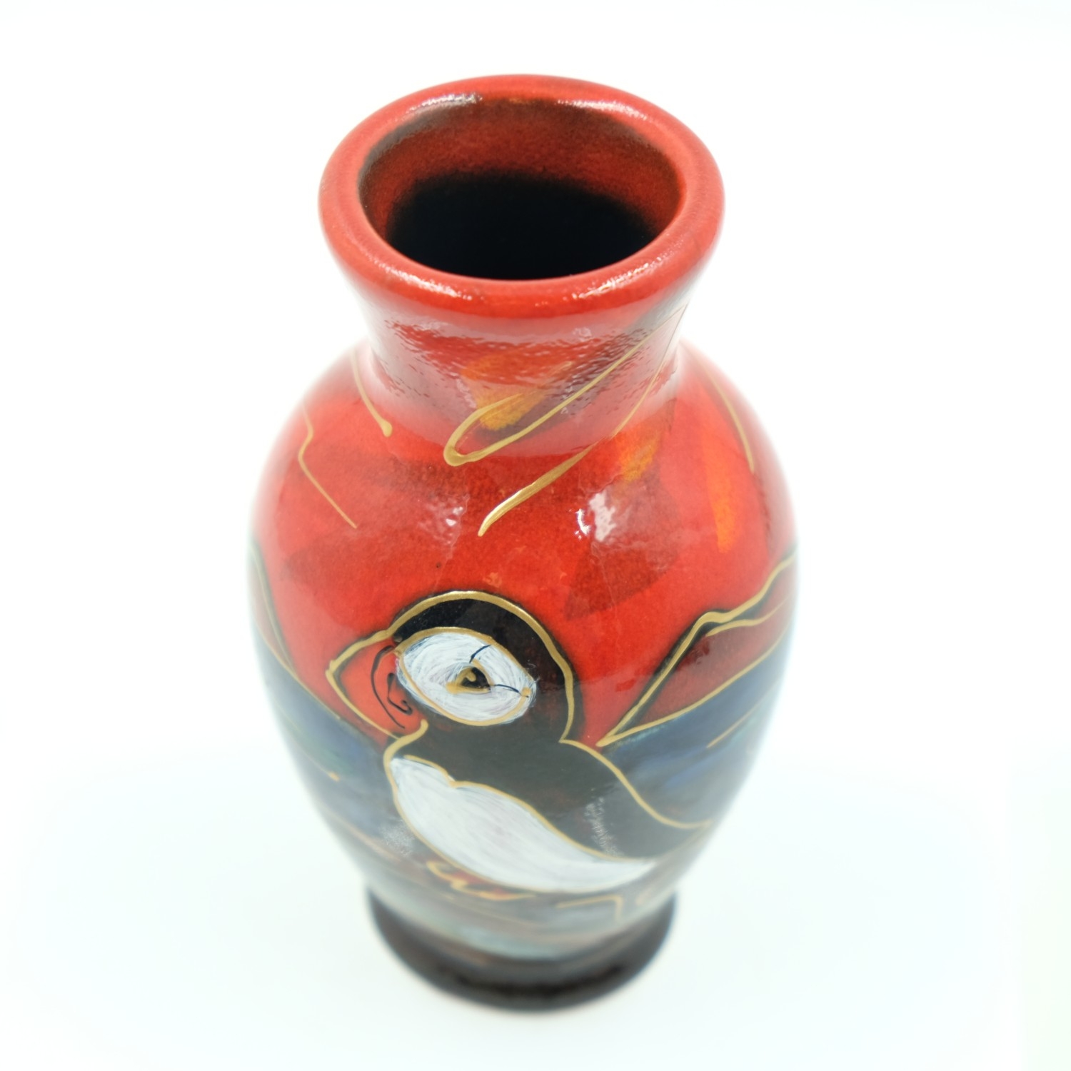 Anita Harris Puffin vase signed in gold, H: 18 cm. UK P&P Group 1 (£18+VAT for the first lot and £2+VAT for subsequent lots)