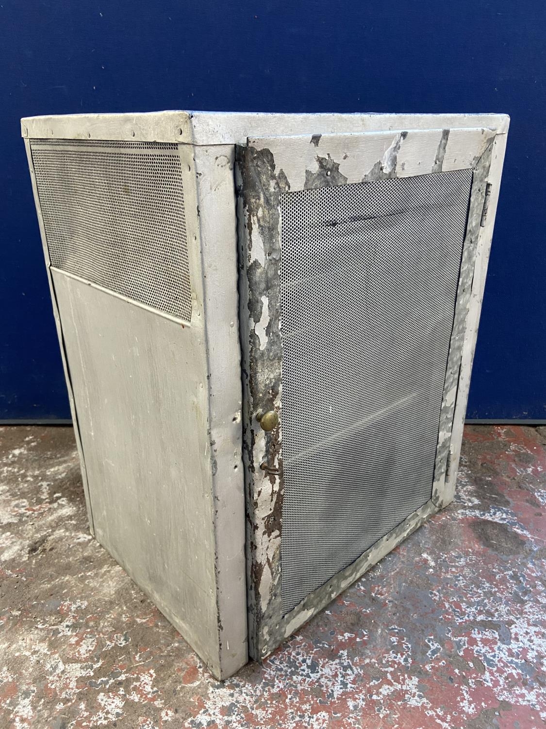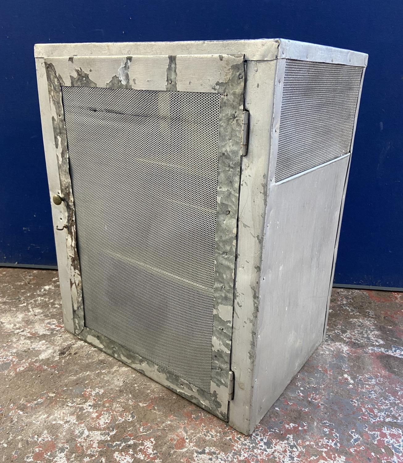 A mid 20th century French silver painted metal meat safe - approx. 57cm high x 46cm wide x 33cm deep
