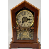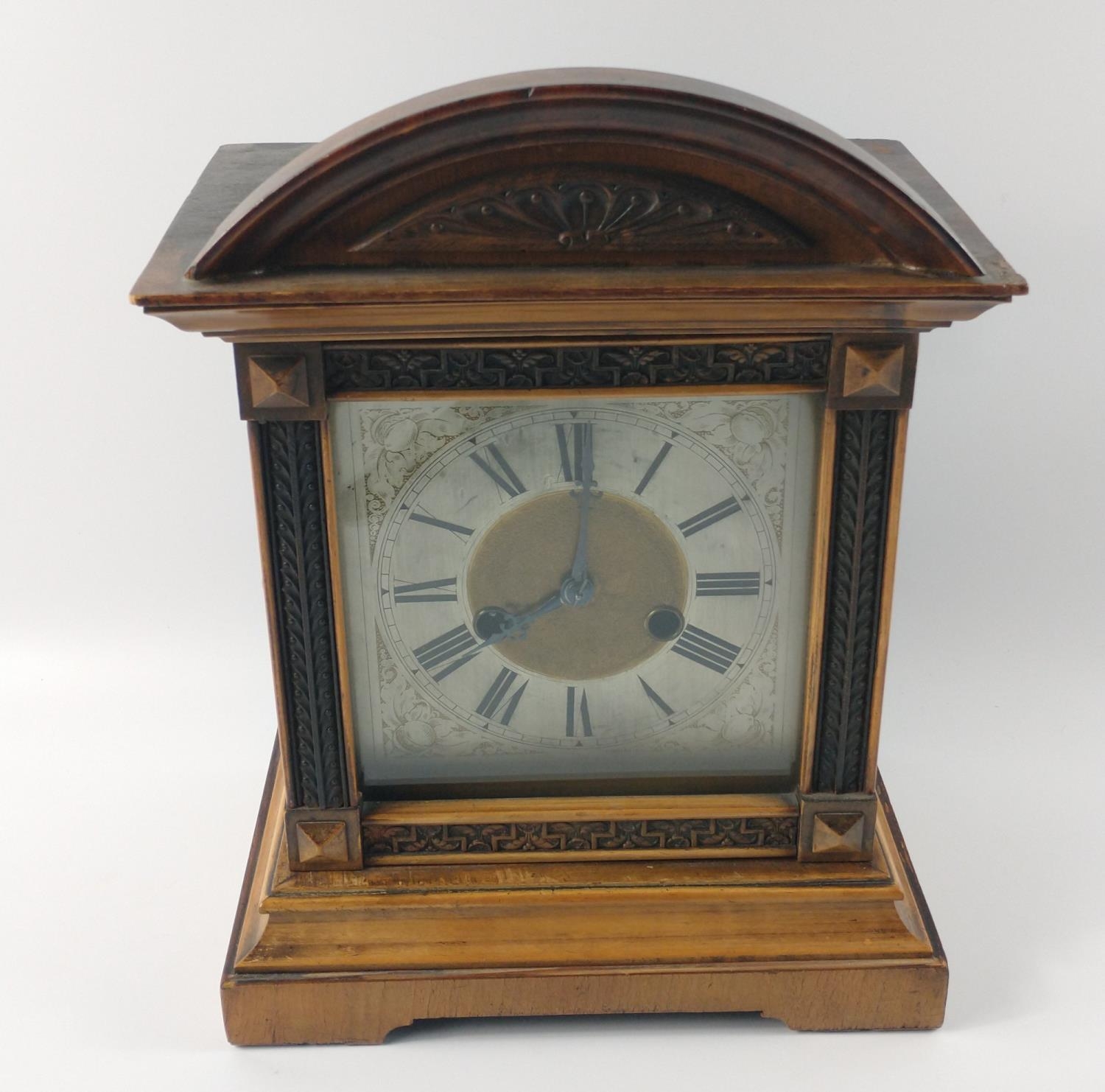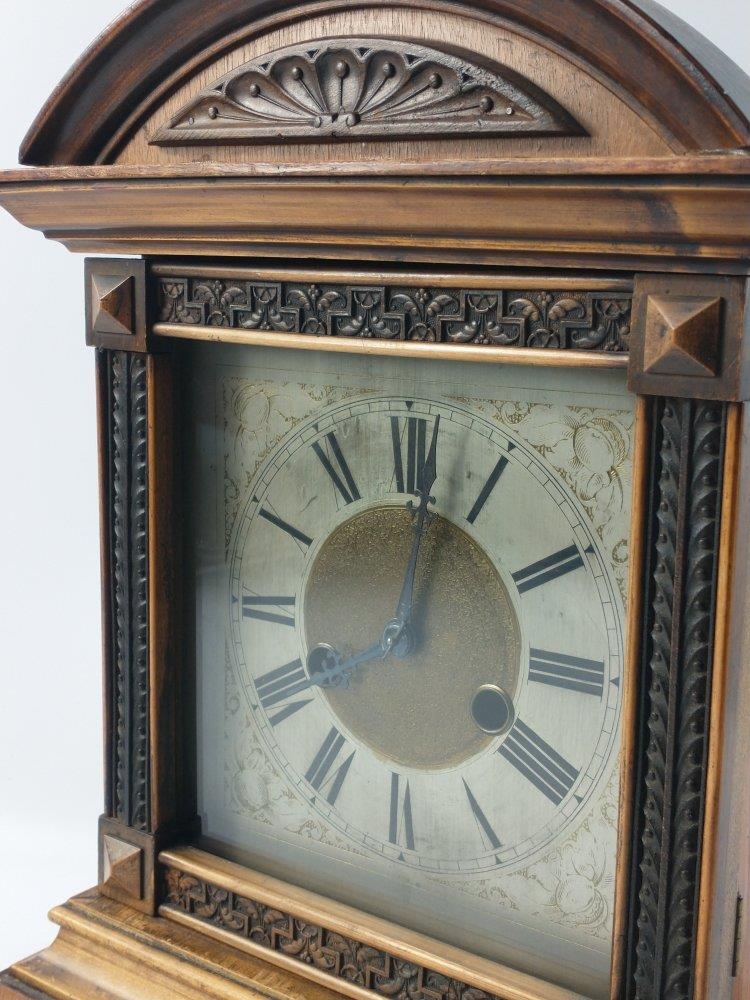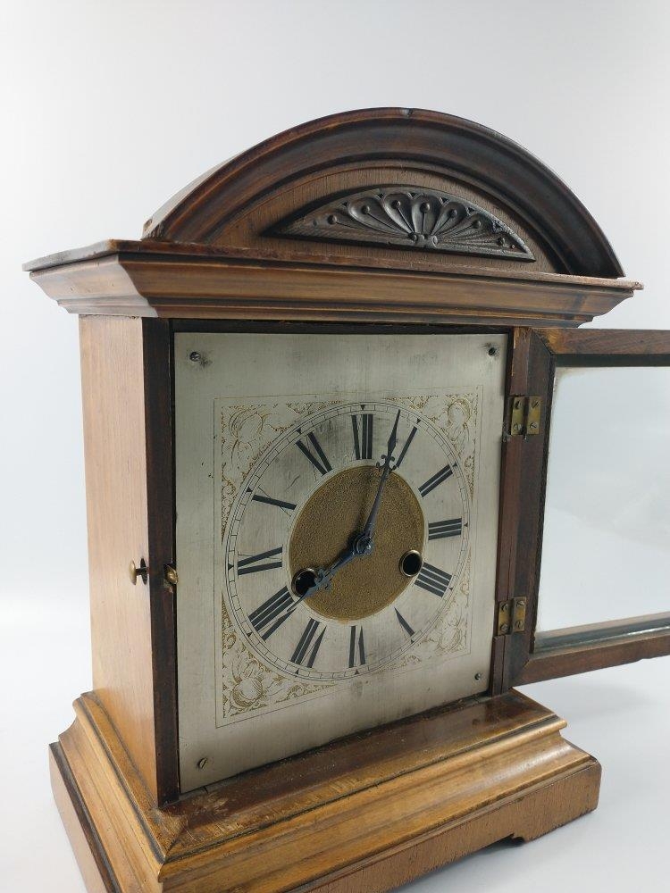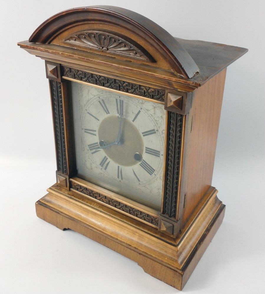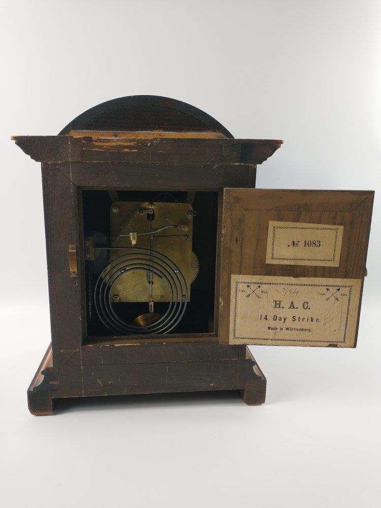 EDWARDIAN HAC 14 day strike decorative wooden cased mantle clock No 1083 with pendulum and original key,