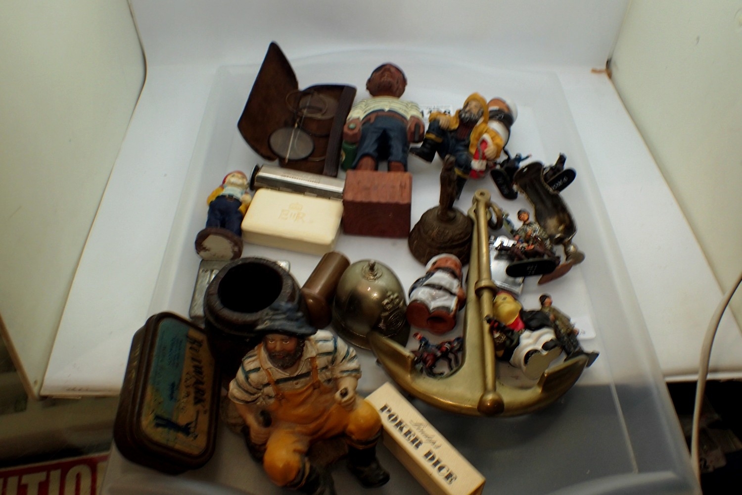 Mixed collectables including a brass anchor. Not available for in-house P&P