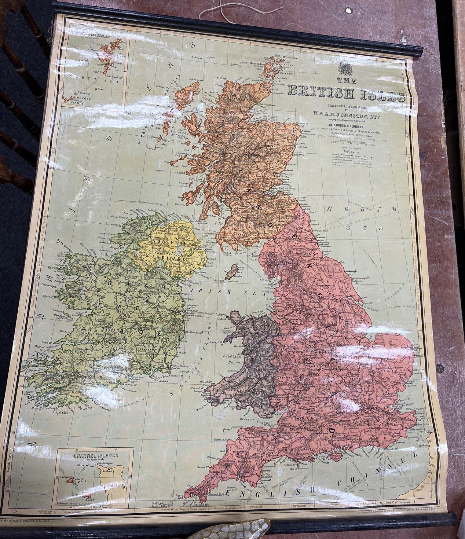 VINTAGE EDUCATIONAL -THE BRITISH ISLES coloured wall chart c1960's classroom wall map by Johnston Ltd Edinburgh & London - dimensions 35" height x 27".