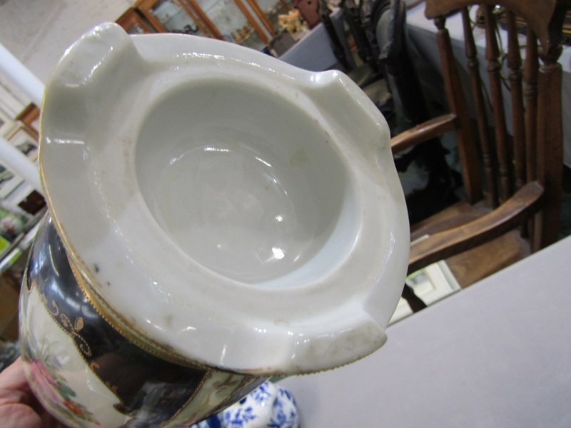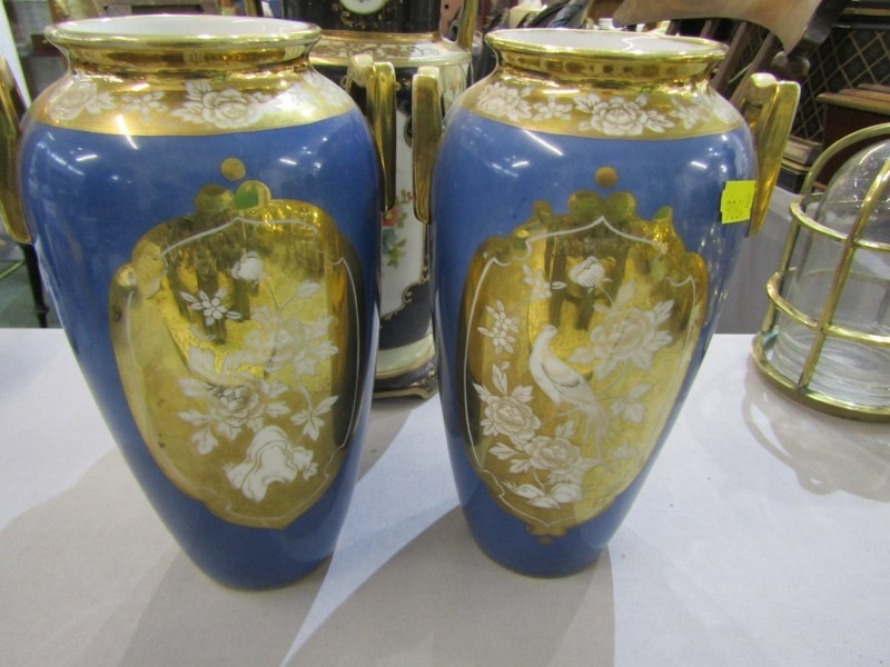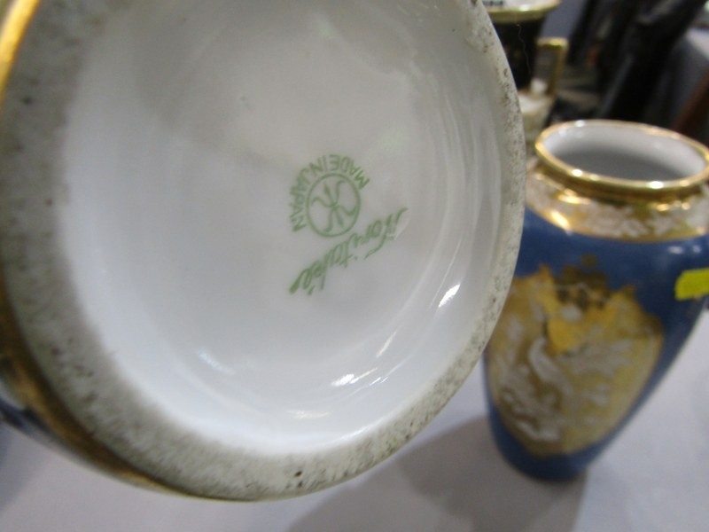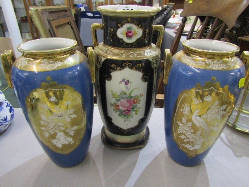 NORITAKE CERAMIC, pair of blue ground Noritake vases marked to base, together with a similar floral decorated vase. Height of pair, 20cm.