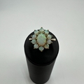 A 9ct yellow gold opal dress ring, centre opal & 10 surrounding opals, size N, shank will need repaired, weight 3.1 grams approx