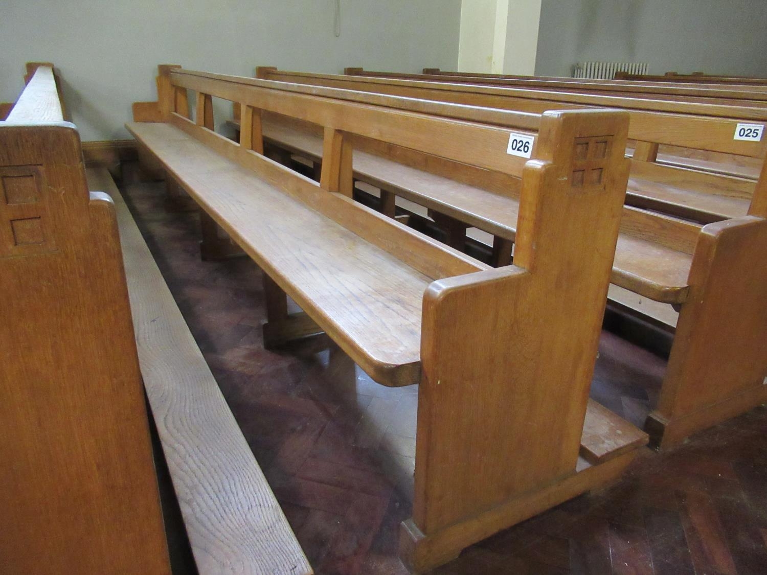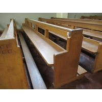 Oak Church pew with kneeler. 13ft long, seat 11 inches.
