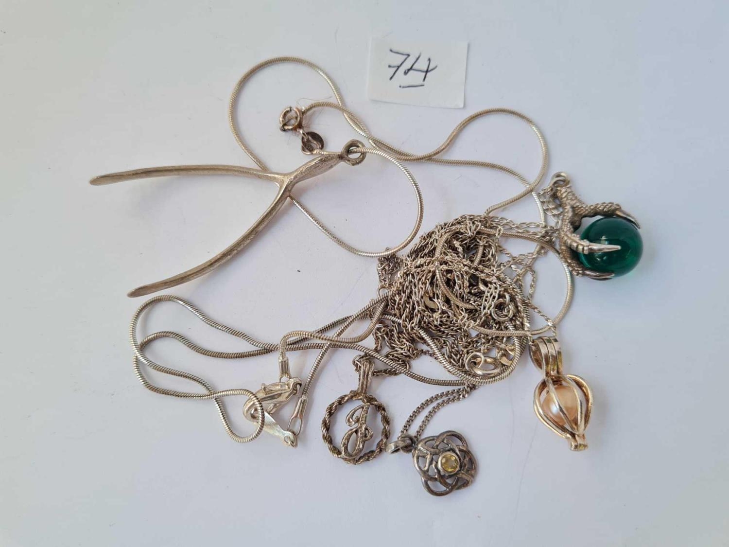 Six silver pendants on silver chains 30.3g
