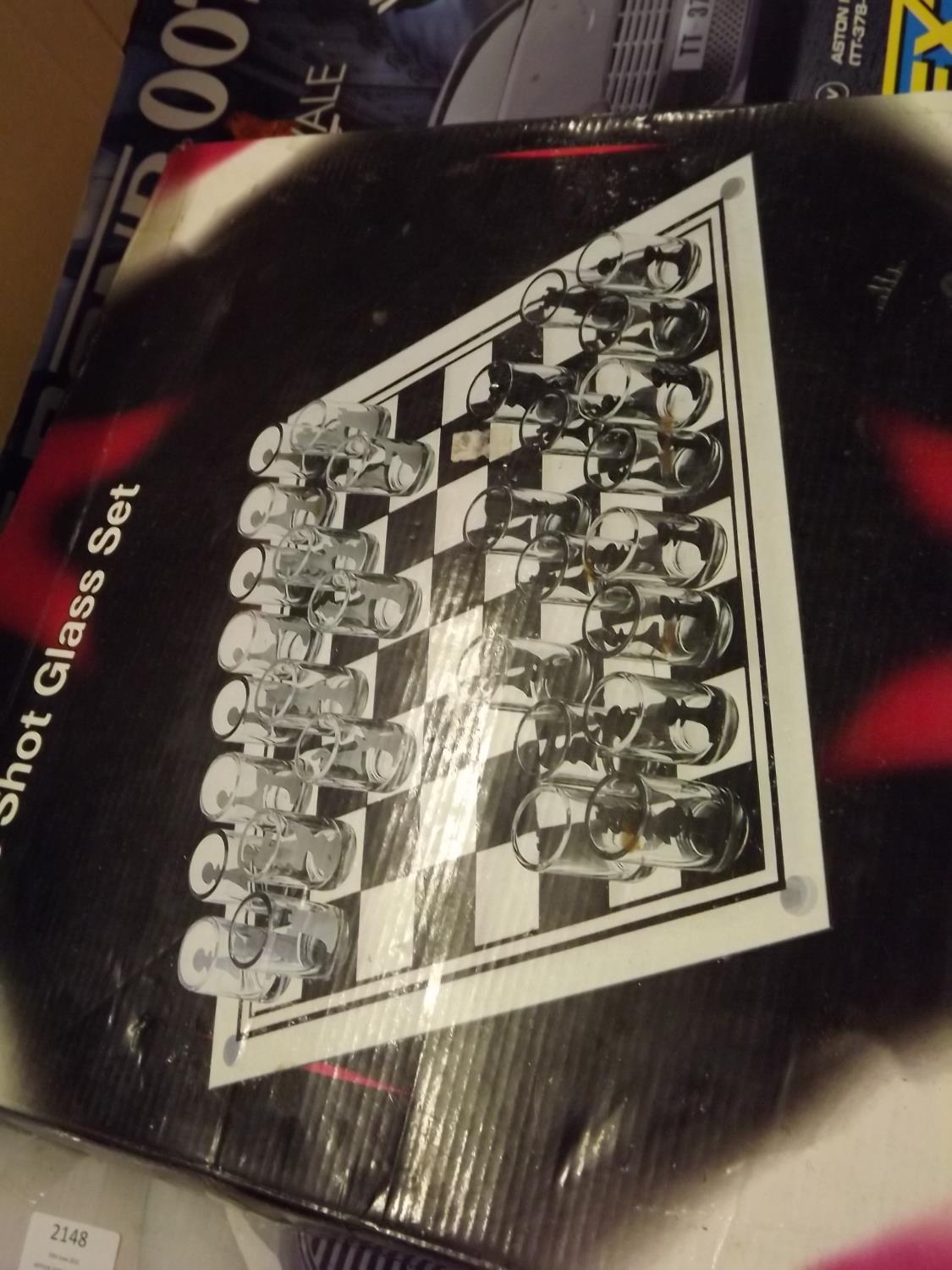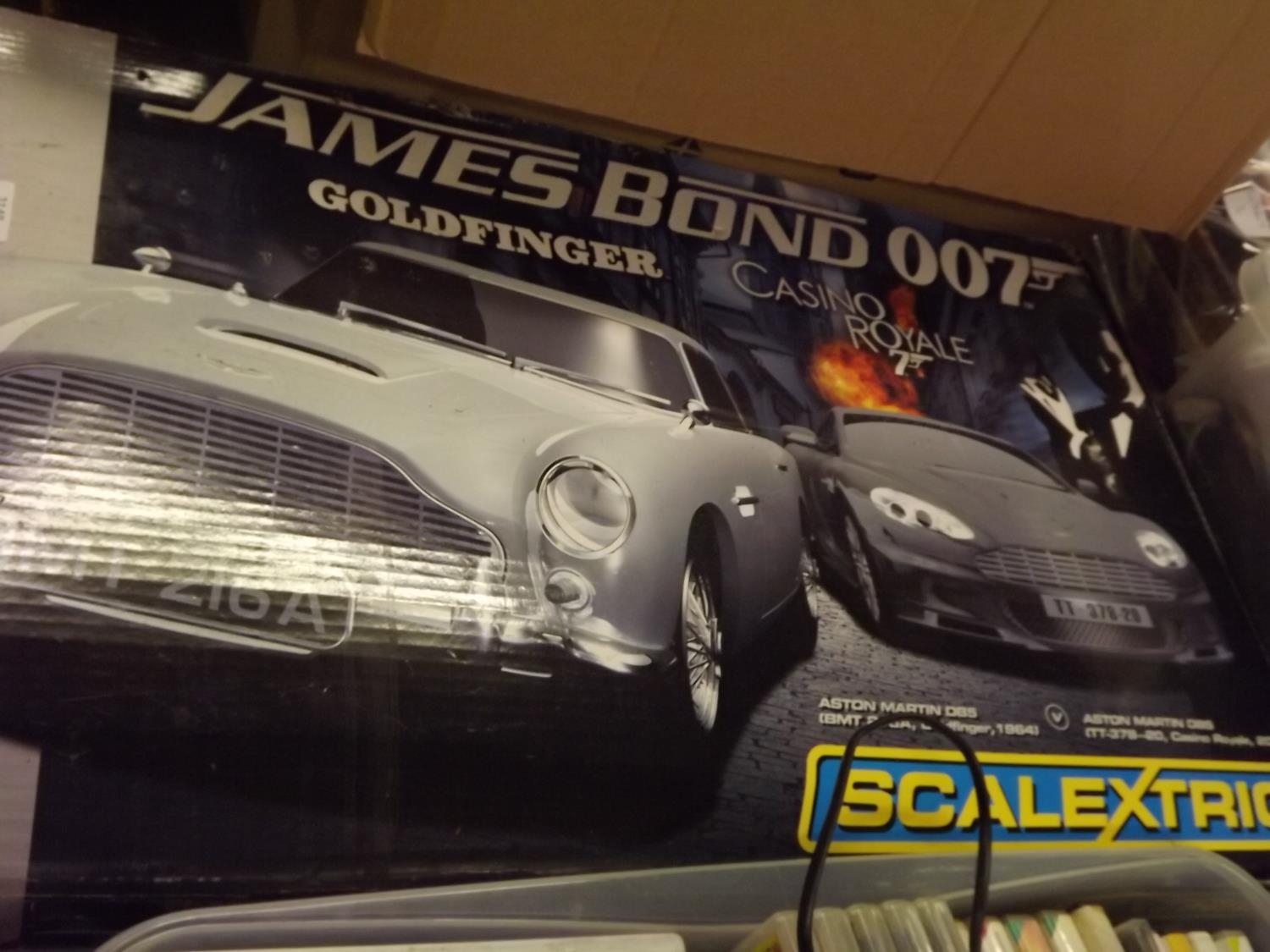 Scalextric 007 set with glass chess set