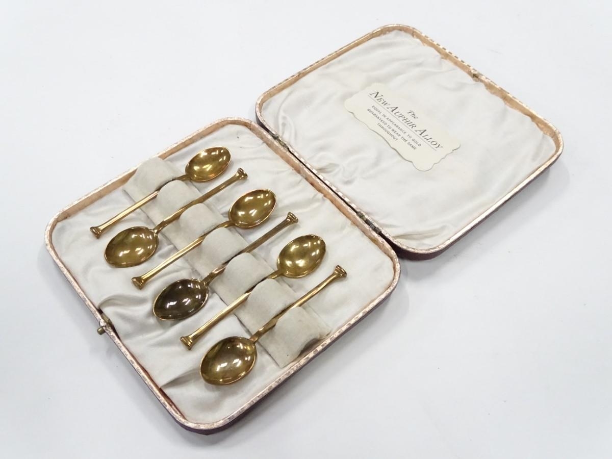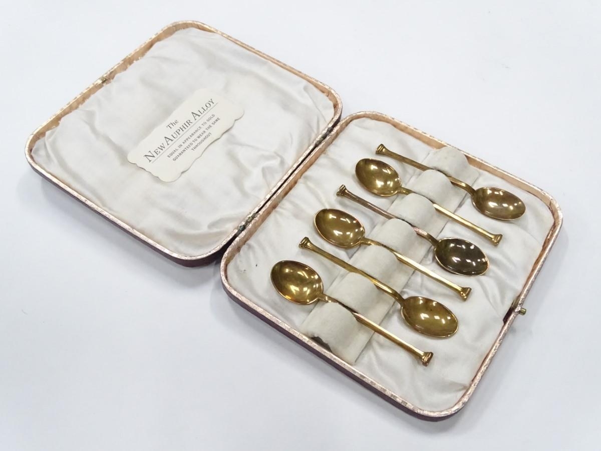 A cased set of 6 auphir alloy coffee spoons