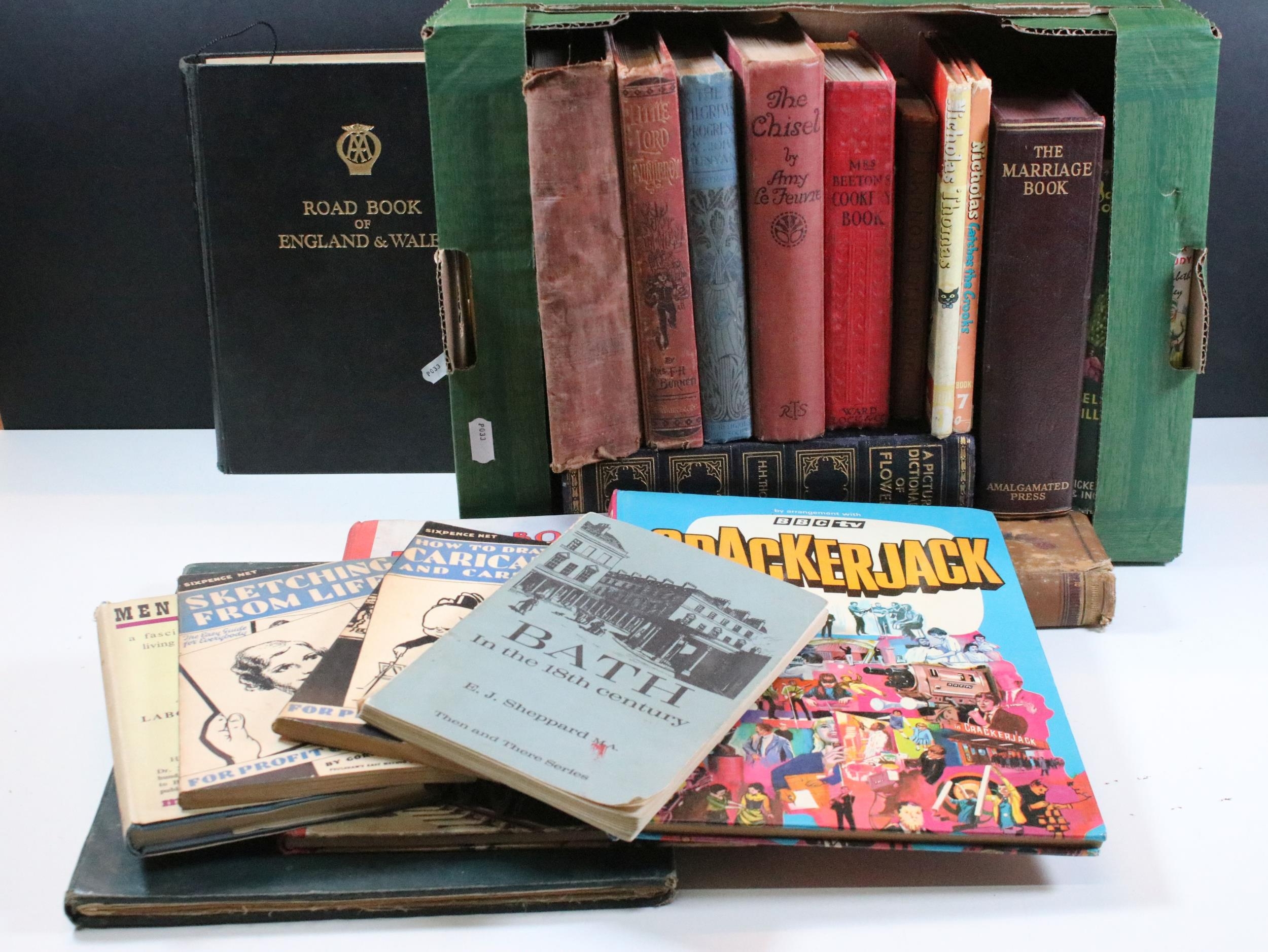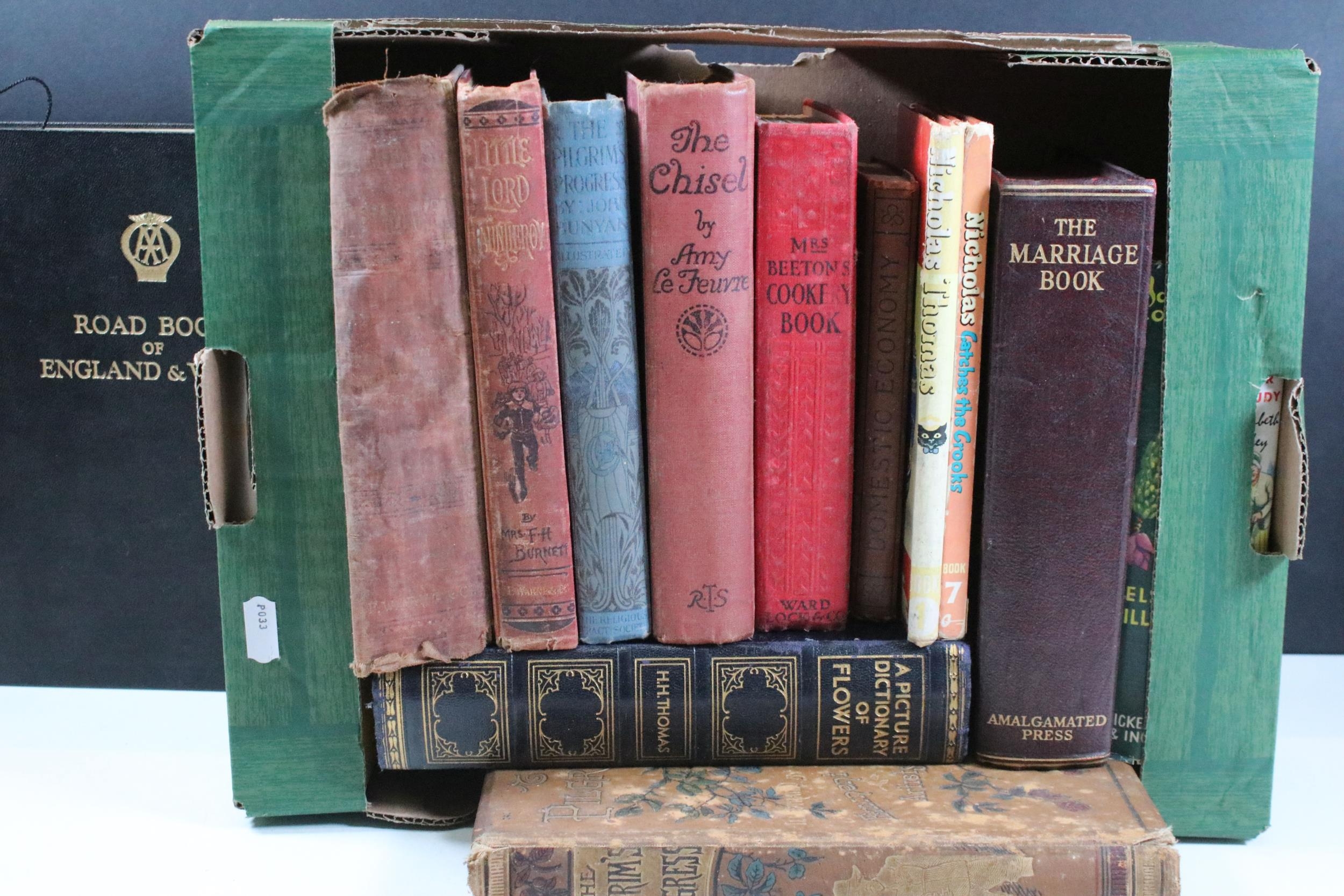 Quantity of Early-Mid 20th Century books to include Mrs Beeton's cookery books, dictionary of flowers, AA road atlas and 2 x children's annuals