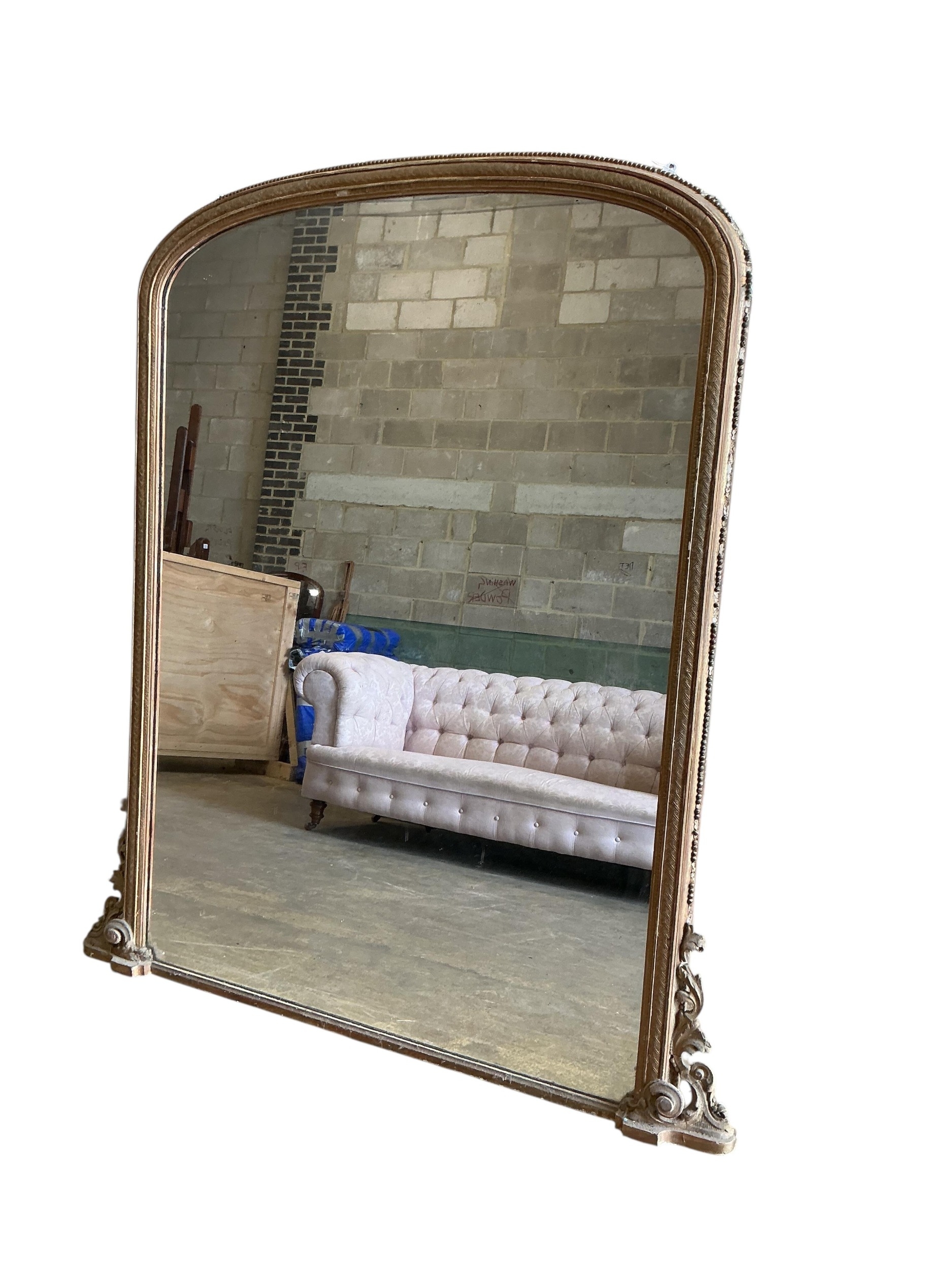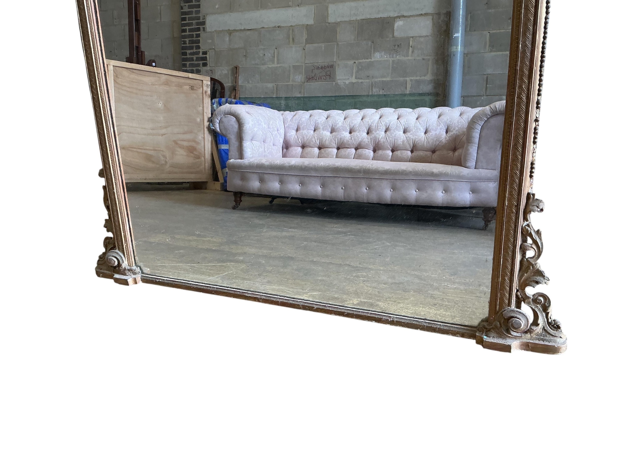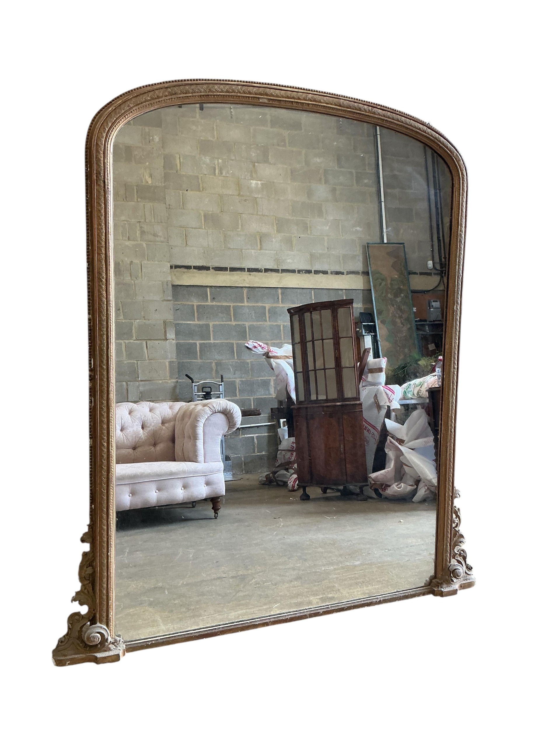 A large Victorian giltwood and composition overmantel mirror, width 160cm, height 184cm