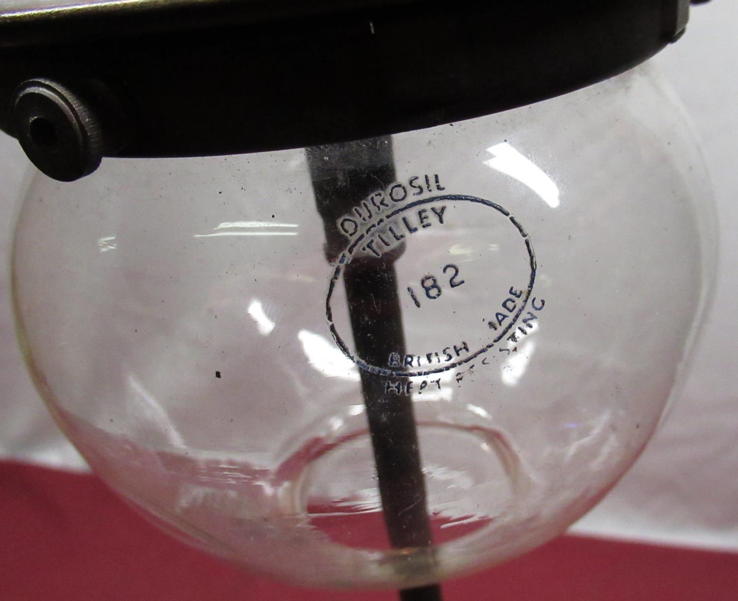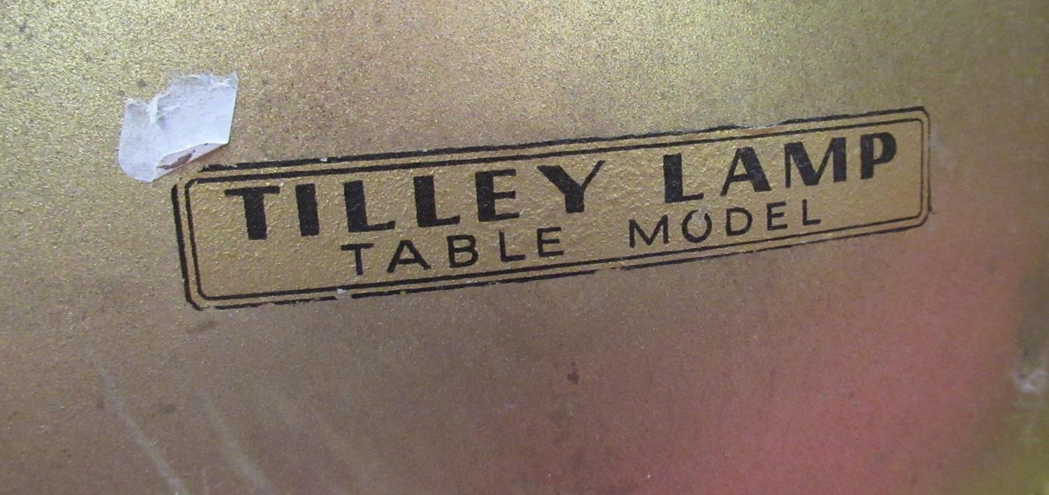 Mid C20th Tilley lamp "Table Model" paraffin lamp with brass gallery and tilley durosil 182 globe H58cm