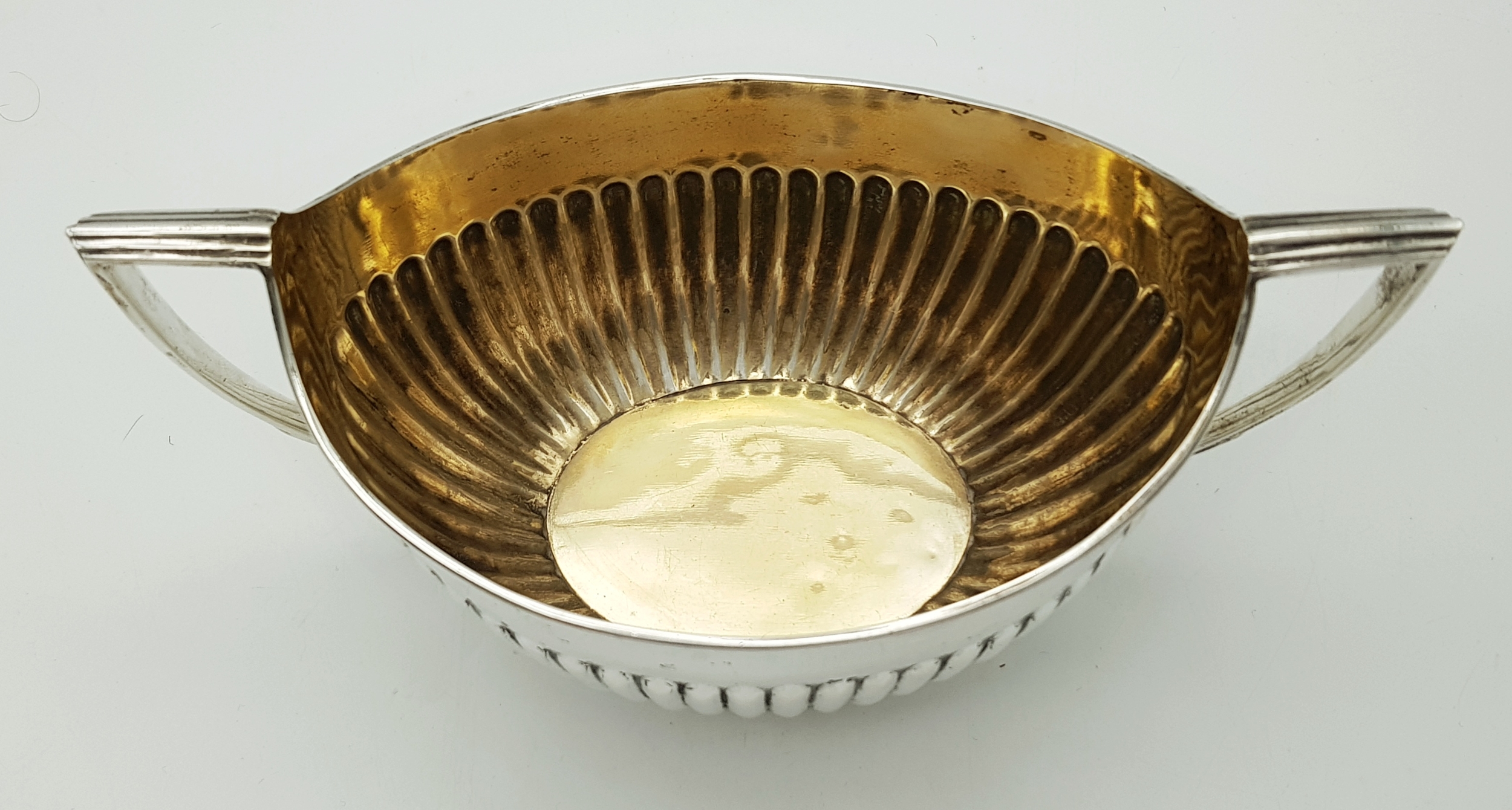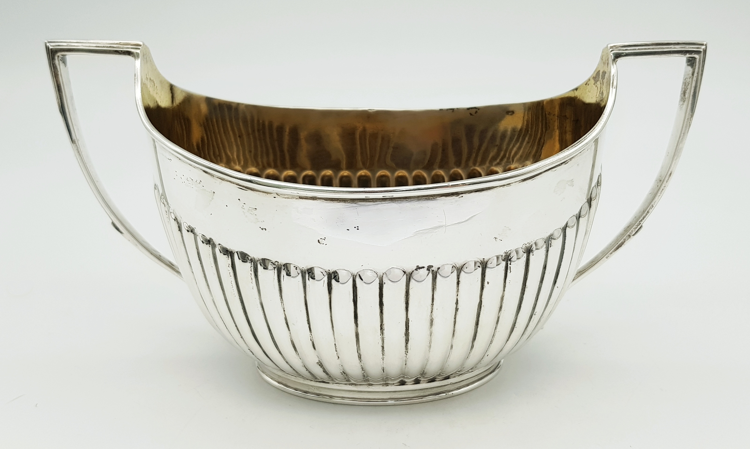 An Antique Sterling Silver Twin Handled Sugar Bowl. Hallmarked London 1894, Total Weight 229.81 grams, Measures Approx. H10cm x L18.2cm x W9.5cm.